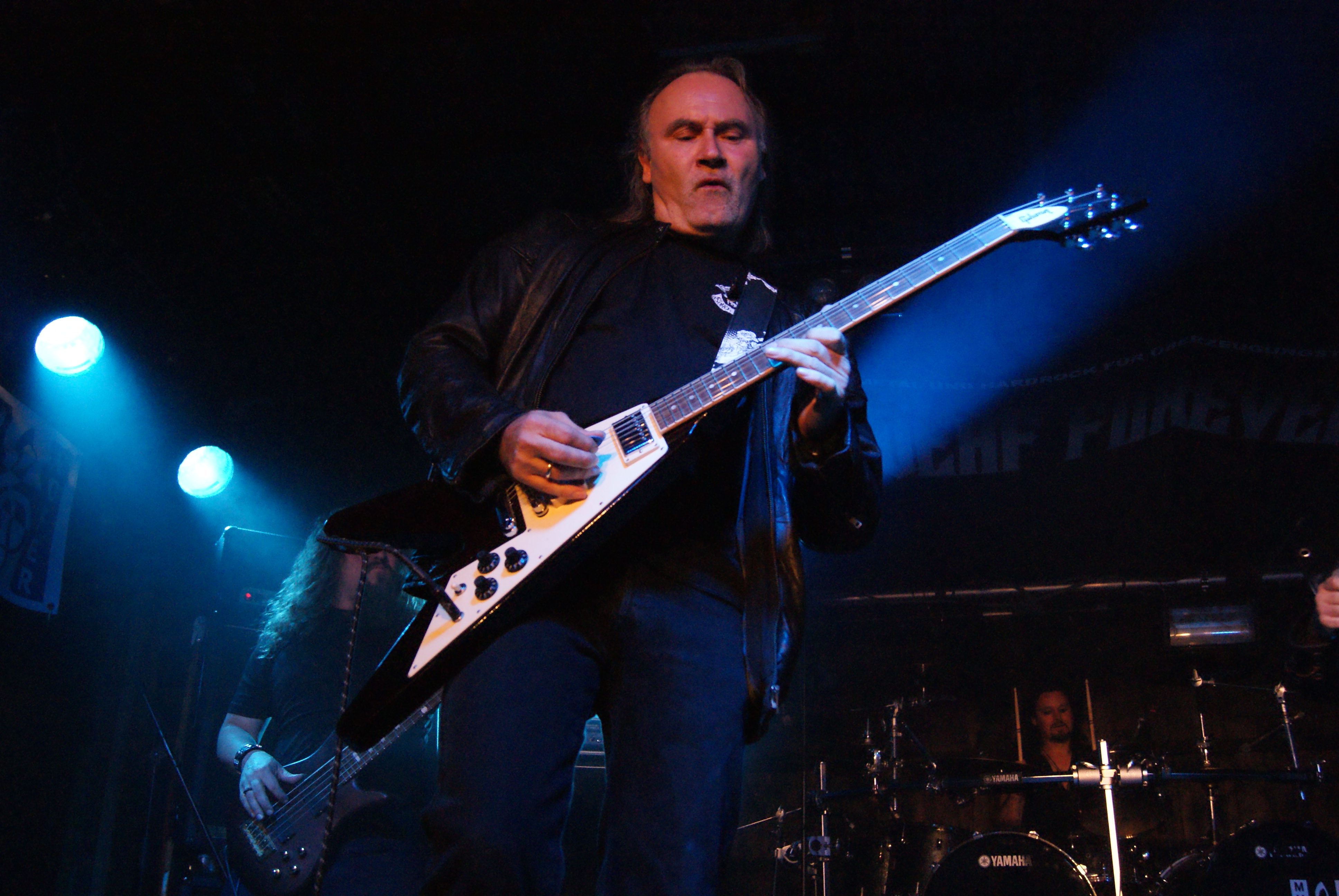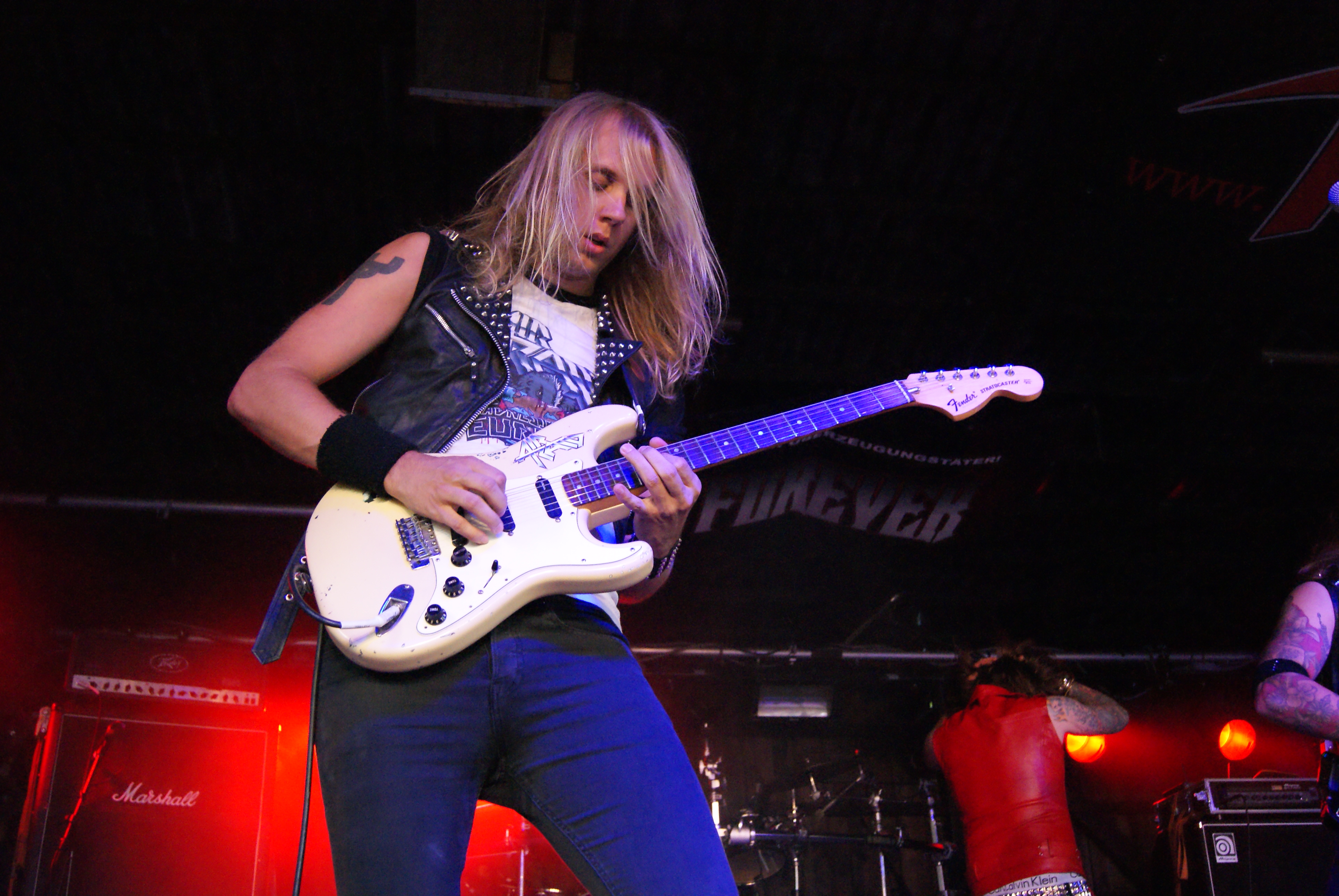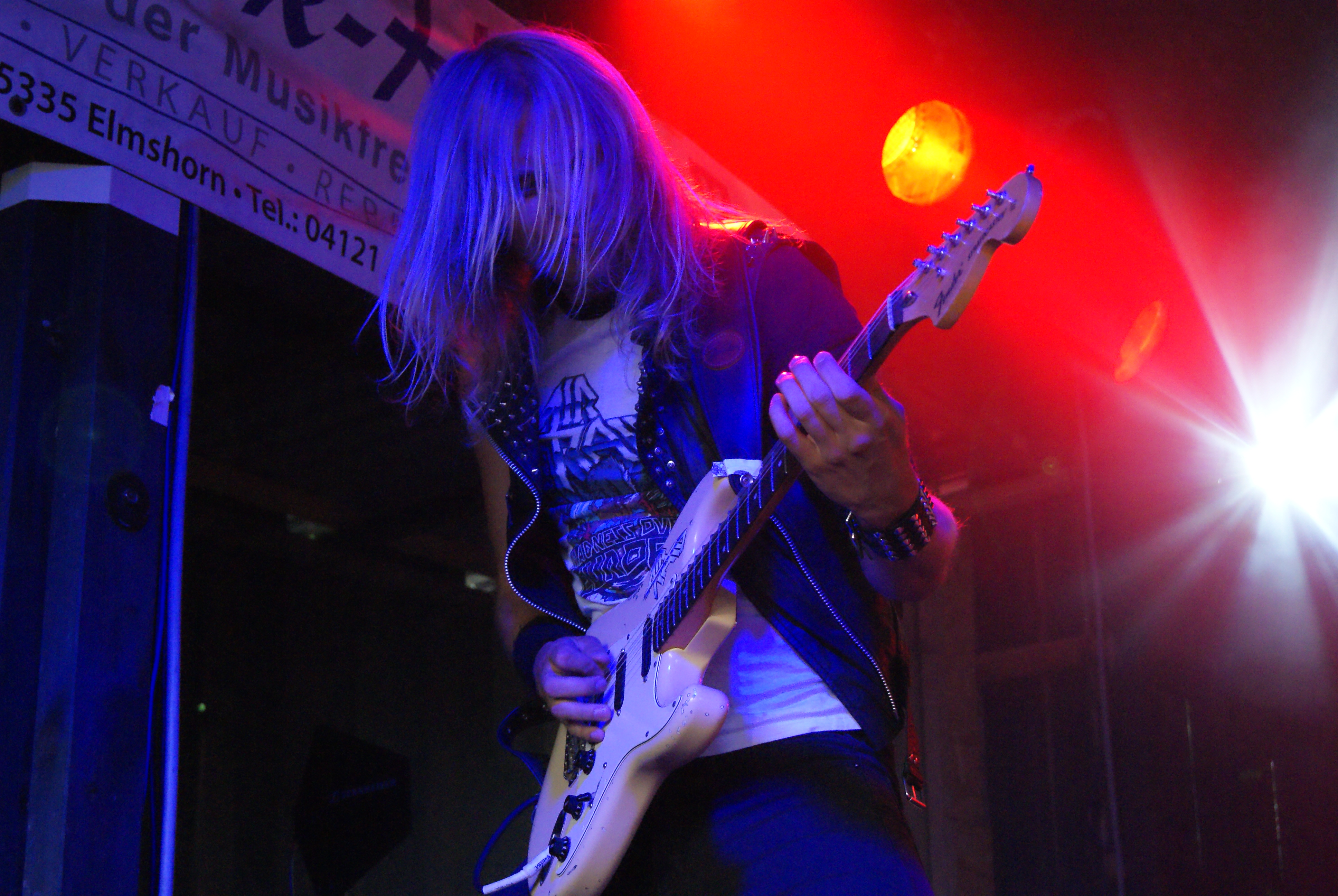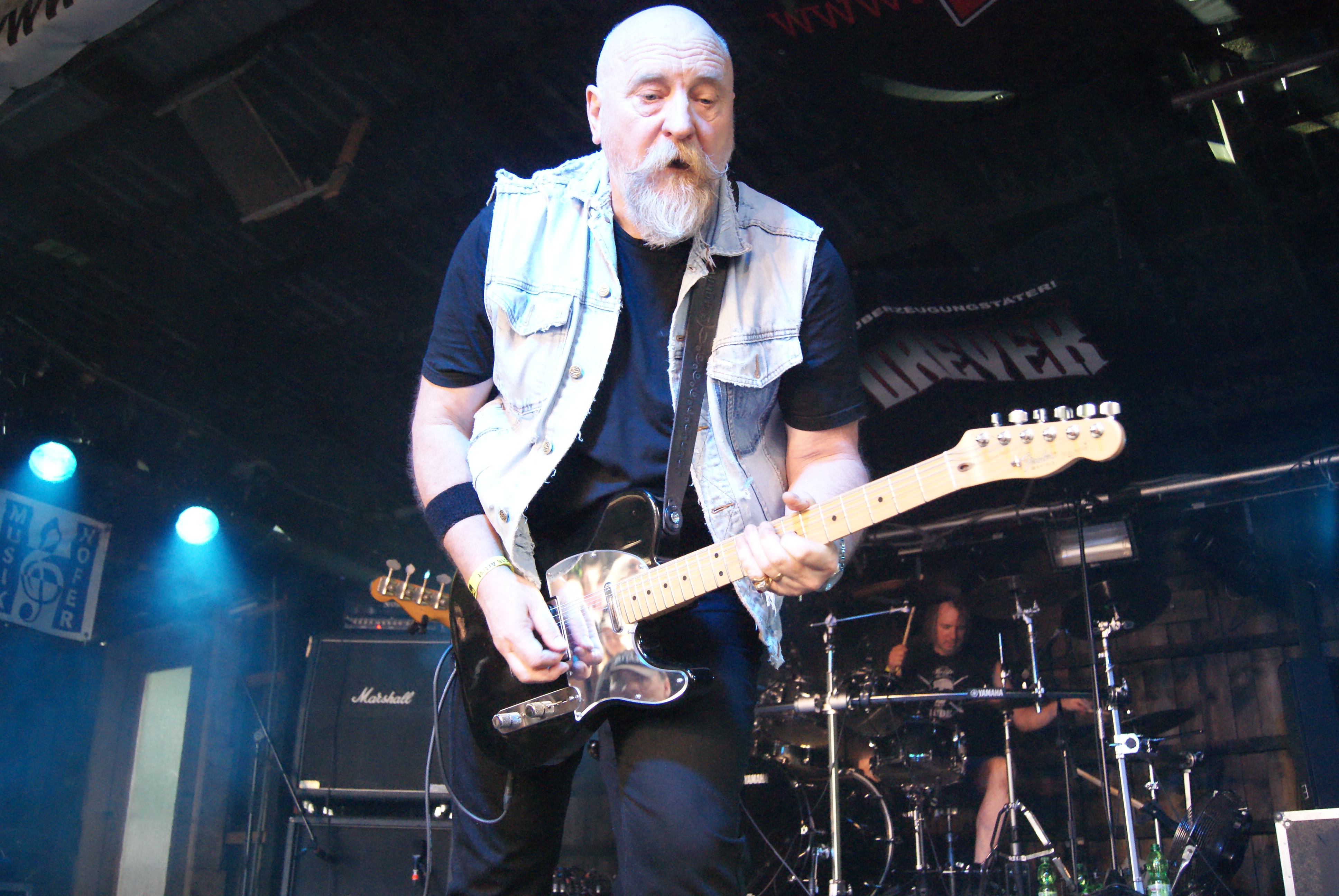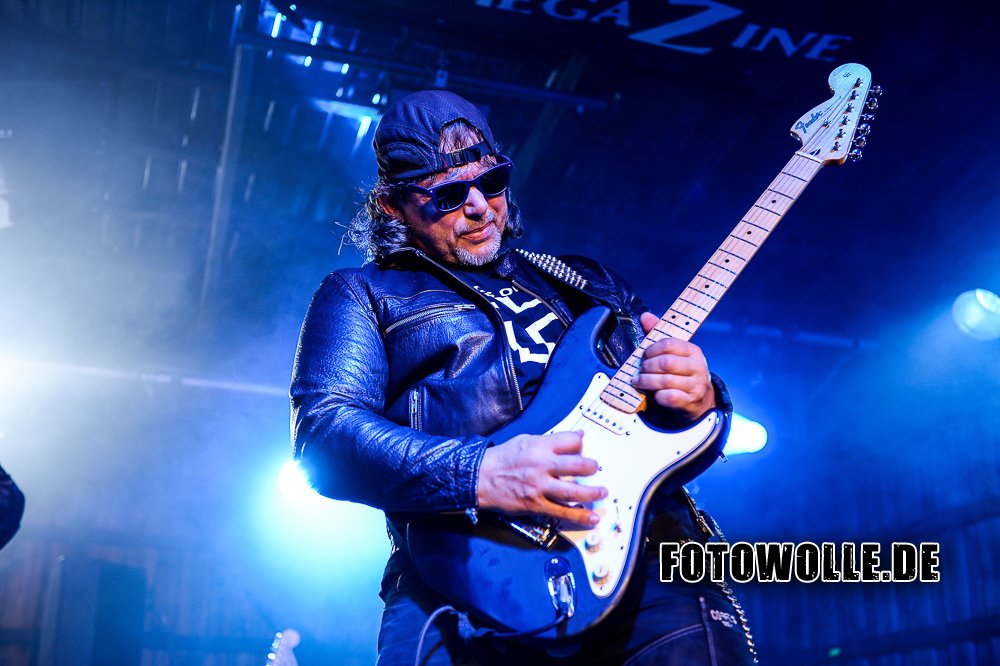 Und so ging es munter weiter: Zuerst mit VARDIS, die tatsächlich noch ein paar Jährchen mehr auf dem Buckel zu haben scheinen als ihre NWoBHM Kollegen des heutigen Tages. Auch wenn Mastermind Steve Zodiac eine runderneuerte Begleitmannschaft im Schlepptau hatte, so bestanden diese augenscheinlich nicht aus Anfängern, sondern hatten auch schon das eine oder andere Jahrzehnt Musikererfahrung. Der Boogie Hard Rock VARDIS‘ war noch nie so ganz mein Ding. War nett anzusehen und wurde auch kompetent dargeboten, nur berühren tut mich das Ganze eher weniger. Alte Songs wie „Move On“ oder „Let Go“ wurden mit neueren Werken wie „Red Eye“ gemixt und der geneigte Laie hörte nicht wirklich einen Unterschied. Alles wirkte wie aus einem Guss und ohne große Brüche. Für Fans sicherlich ein Fest, für mich nette Unterhaltung für zwischendurch.