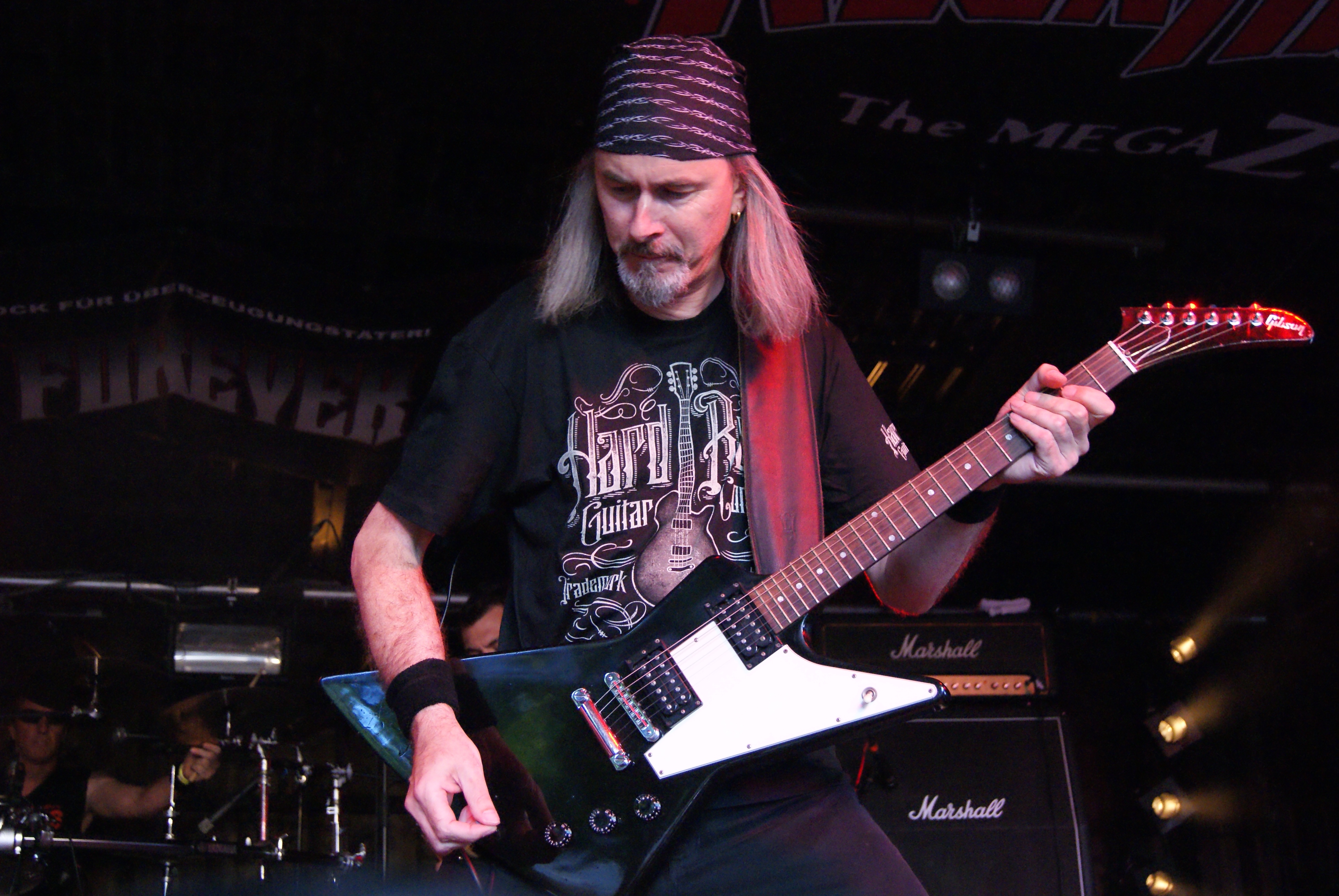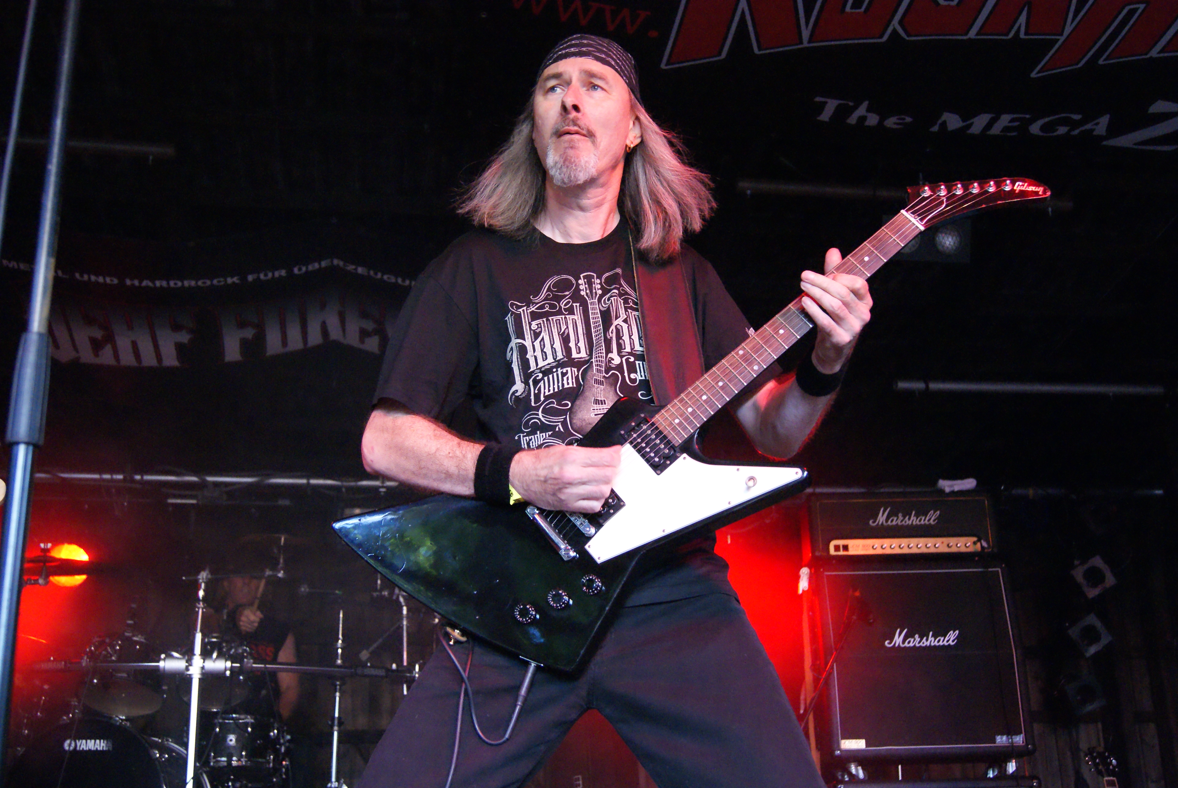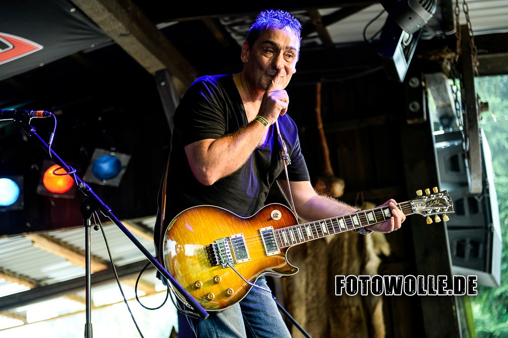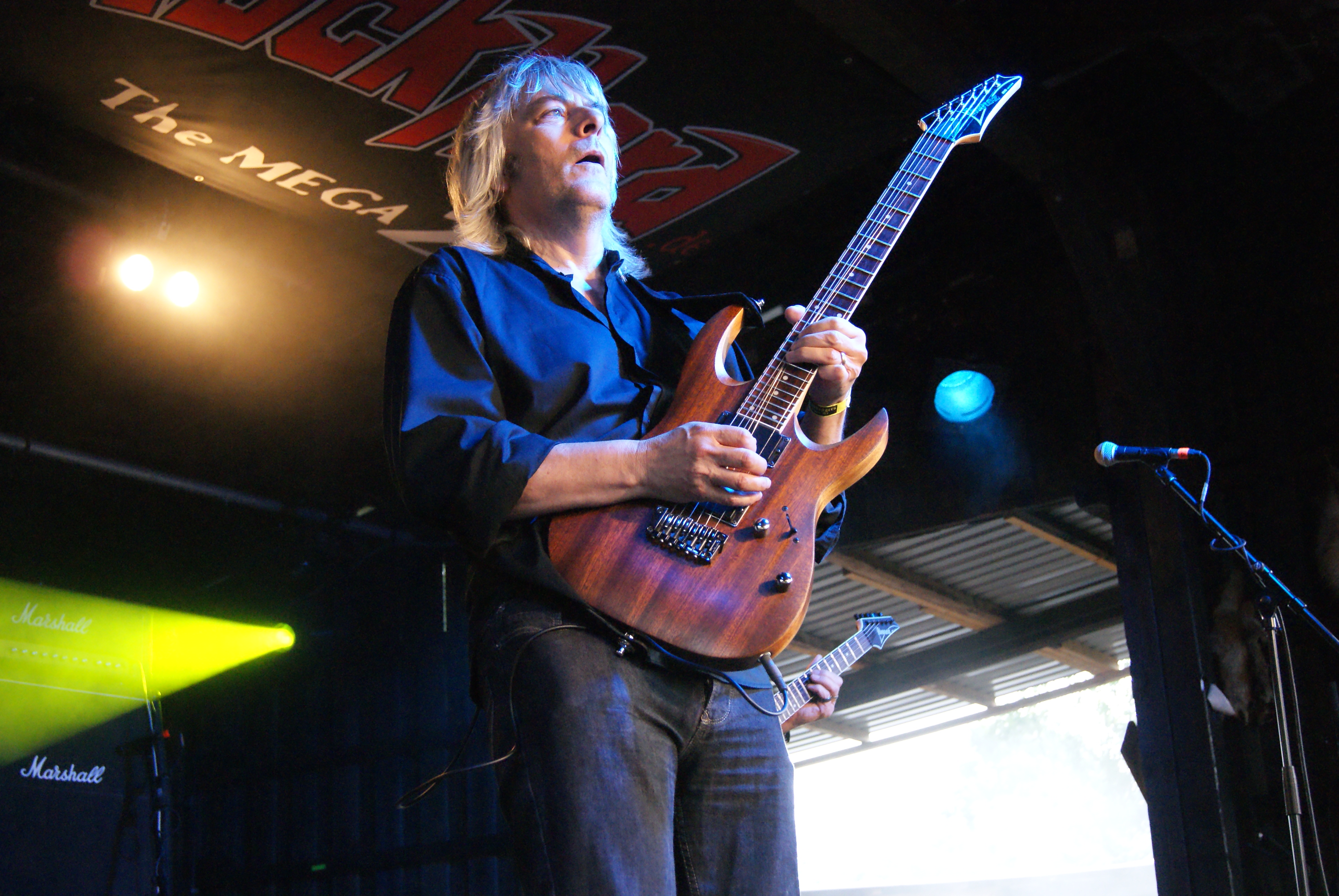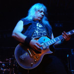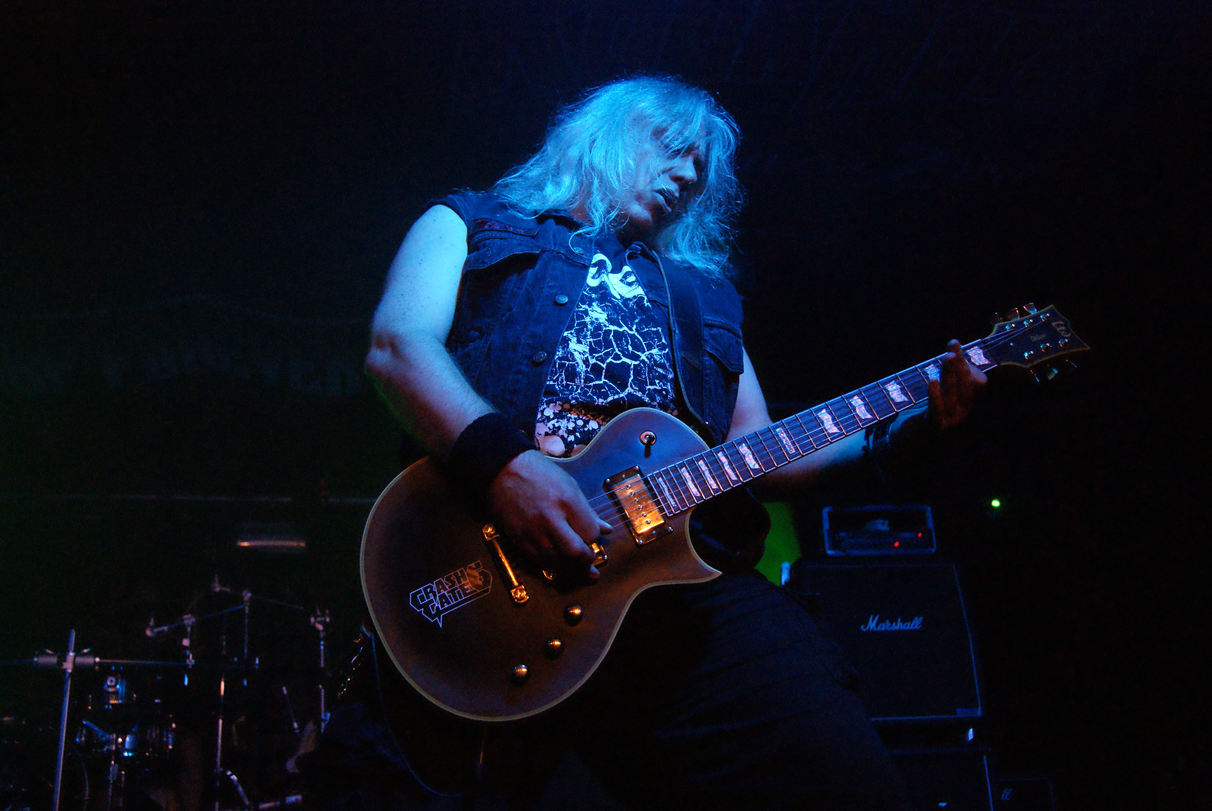 Und so ging es munter weiter: Zuerst mit VARDIS, die tatsächlich noch ein paar Jährchen mehr auf dem Buckel zu haben scheinen als ihre NWoBHM Kollegen des heutigen Tages. Auch wenn Mastermind Steve Zodiac eine runderneuerte Begleitmannschaft im Schlepptau hatte, so bestanden diese augenscheinlich nicht aus Anfängern, sondern hatten auch schon das eine oder andere Jahrzehnt Musikererfahrung. Der Boogie Hard Rock VARDIS‘ war noch nie so ganz mein Ding. War nett anzusehen und wurde auch kompetent dargeboten, nur berühren tut mich das Ganze eher weniger. Alte Songs wie „Move On“ oder „Let Go“ wurden mit neueren Werken wie „Red Eye“ gemixt und der geneigte Laie hörte nicht wirklich einen Unterschied. Alles wirkte wie aus einem Guss und ohne große Brüche. Für Fans sicherlich ein Fest, für mich nette Unterhaltung für zwischendurch.