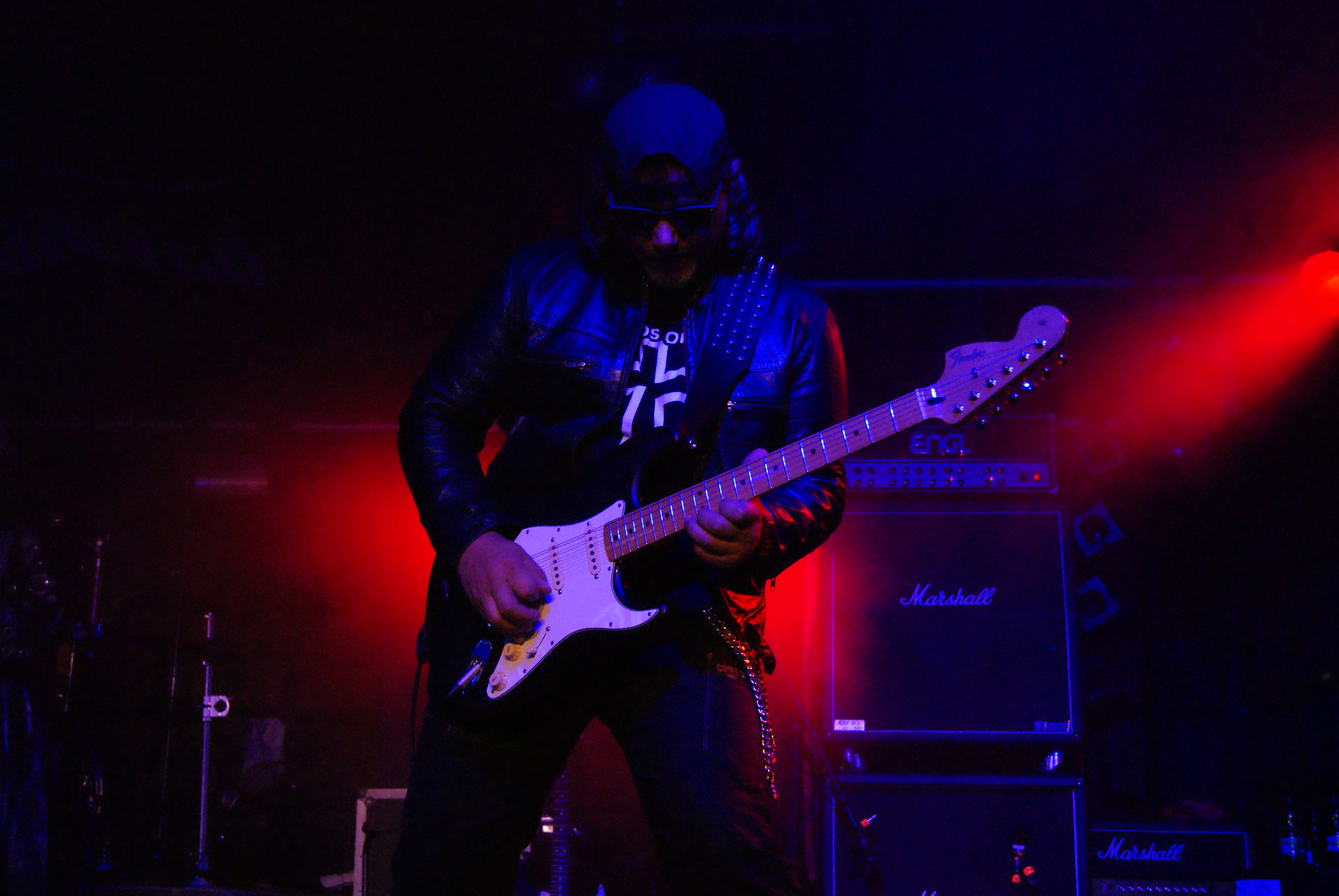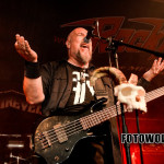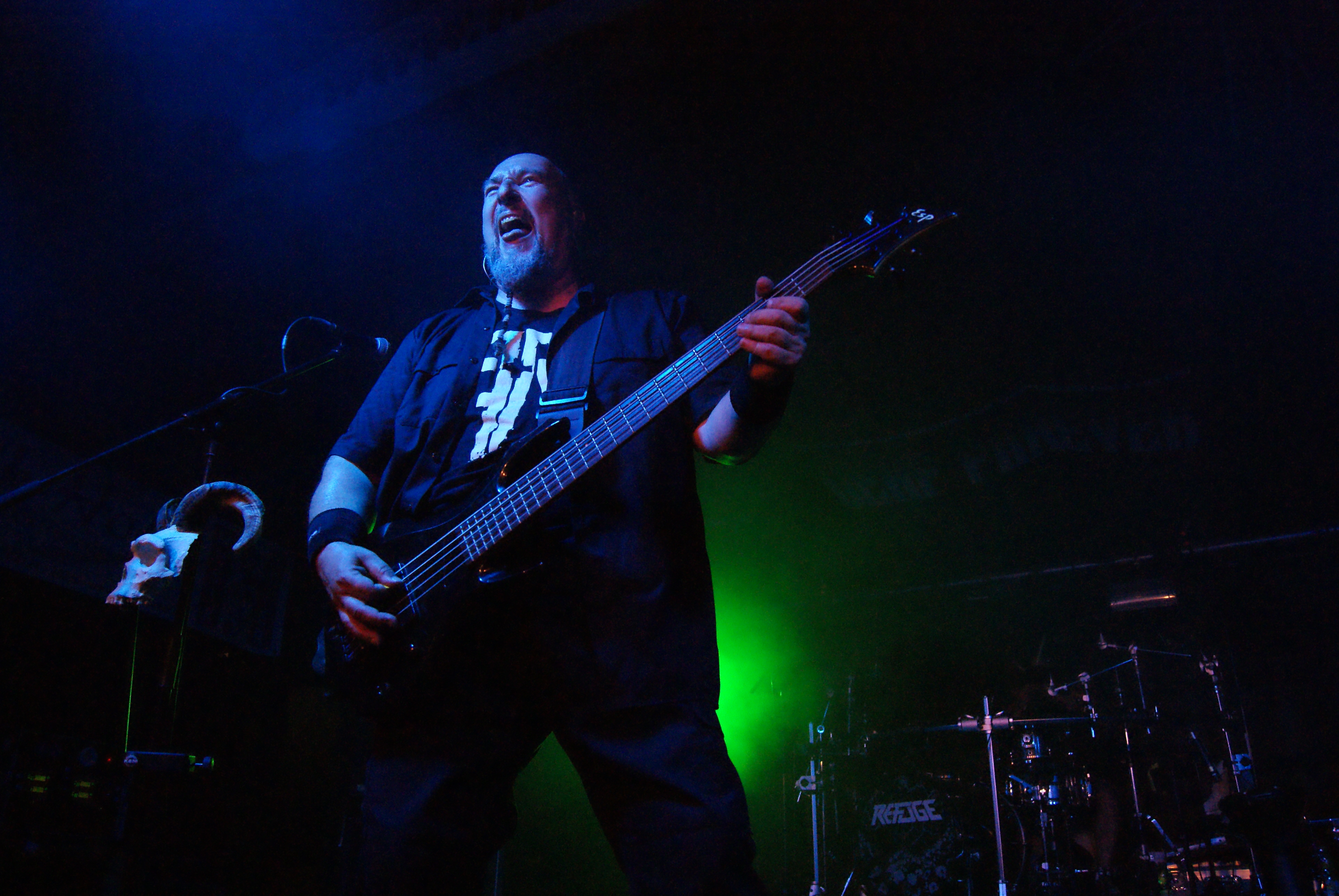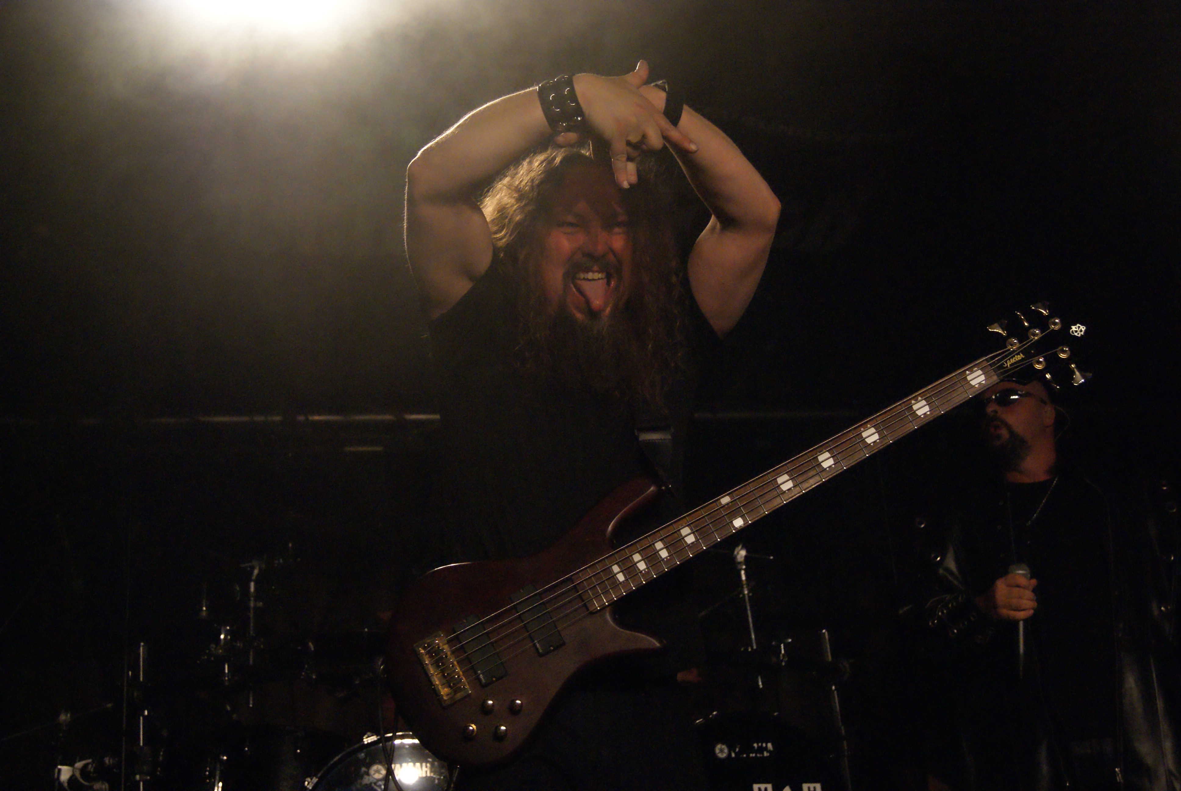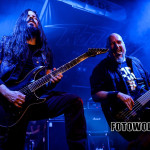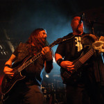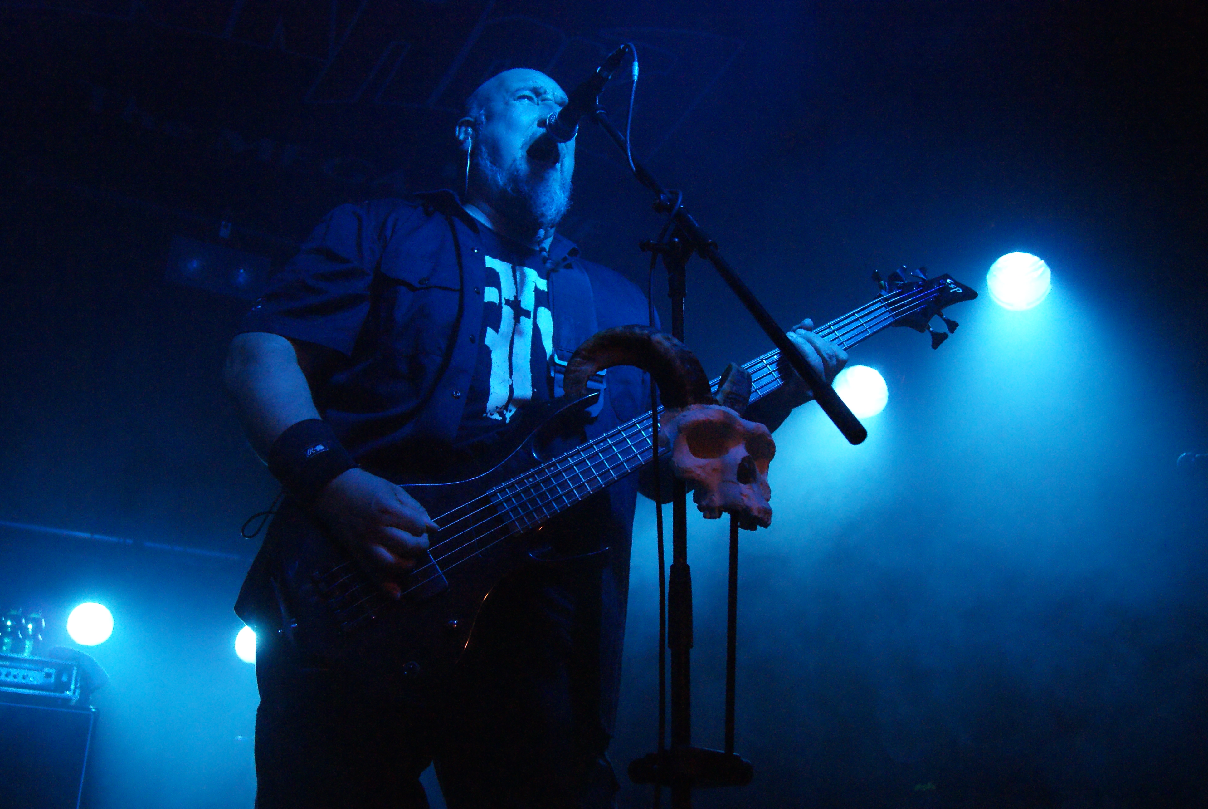 Passend zur einbrechenden Dunkelheit wurde es nun Zeit für das original MERCYFUL FATE Gitarrenduo Michael Denner und Hank Shermann. Gefronted wurde das Ganze von CAGE-Sirene Sean Peck, welcher dieser Tage ein einerseits vielbeschäftigter, aber andererseits auch umstrittener Frontmann ist. Er neigt dazu es mit seinen Screams immer mal wieder zu übertreiben. Und auch heute Abend war es mal wieder hart an der Grenze, auch wenn es natürlich beeindruckend ist, wie hoch der Mann quietschen kann. Albern jedoch war das Getue mit seinem ultrafetten Ledermantel. Obwohl ihm offensichtlich viel zu warm war, zog er das hässliche Ding nicht aus, sondern lüftete es alle 30 Sekunden nur und wirkte damit wie ein alternder Exhibitionist im Offenbacher Stadtpark. Mit „Evil“, „Curse Of The Pharaos“, „Black Funeral“ und „Desecration Of Souls“ kamen zwar auch 4 MERCYFUL FATE Kracher zum Zuge, richtige Begeisterung ließ sich aber nicht ausmachen. Irgendwie hatte man das Gefühl, dass da jeder auf der Bühne sein eigenes Süppchen kochte. Als Einheit waren DENNER / SHERMANN nicht wahrnehmbar. Dazu kamen auch technische Unzulänglichkeiten (der Drummer hatte wohl erst kurz vorher Snowy Shaw ersetzt), sodass Songs teilweise abgebrochen und neu angefangen werden mussten. Gerade Denner wirkte mitunter richtig genervt. Das letzte, was man noch von der Bühne vernahm, war ein „Can’t play with you anymore, guys“. Bin mal gespannt, wie und ob das überhaupt weitergeht. Allerdings macht das in meinen Augen so auch keinen Sinn. Hatte ich mir durchaus mehr von versprochen.