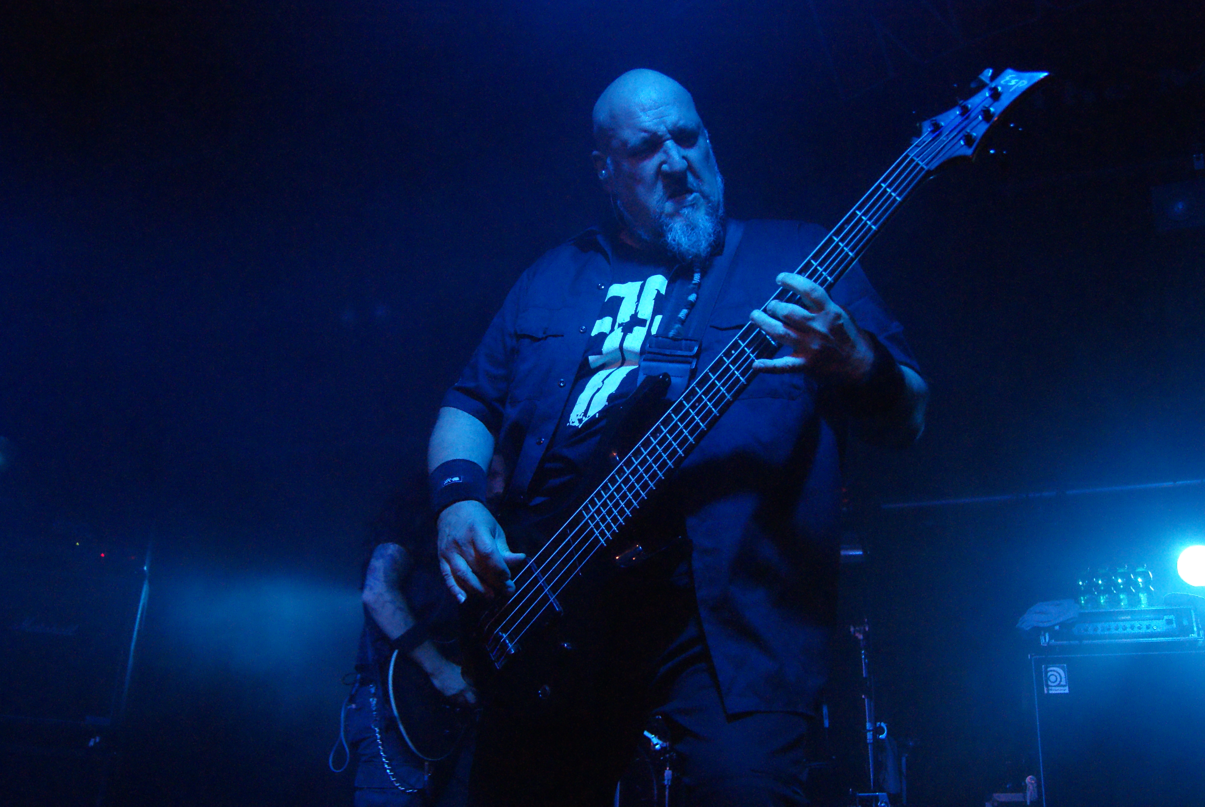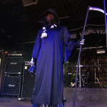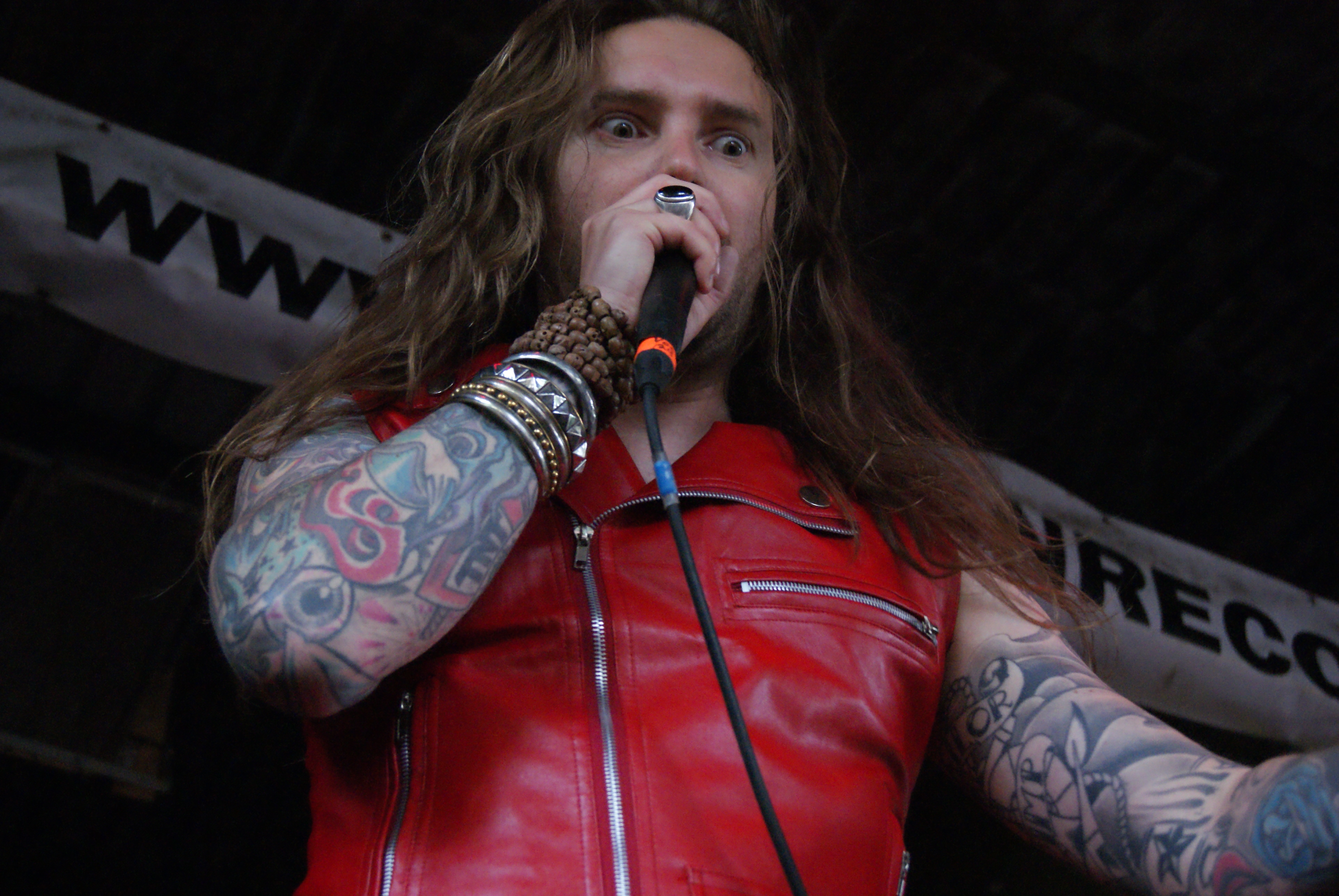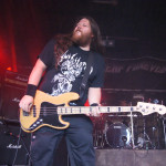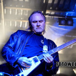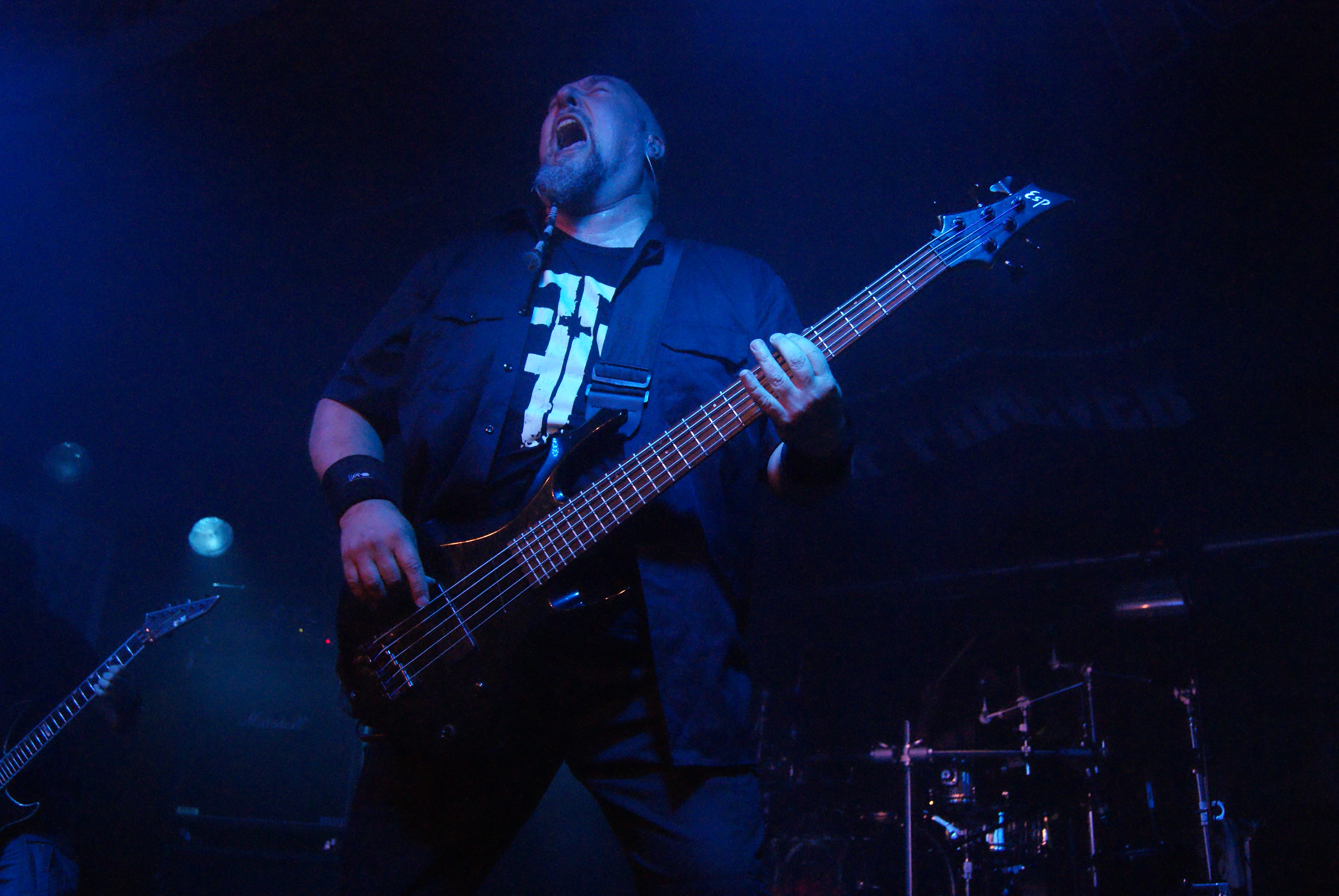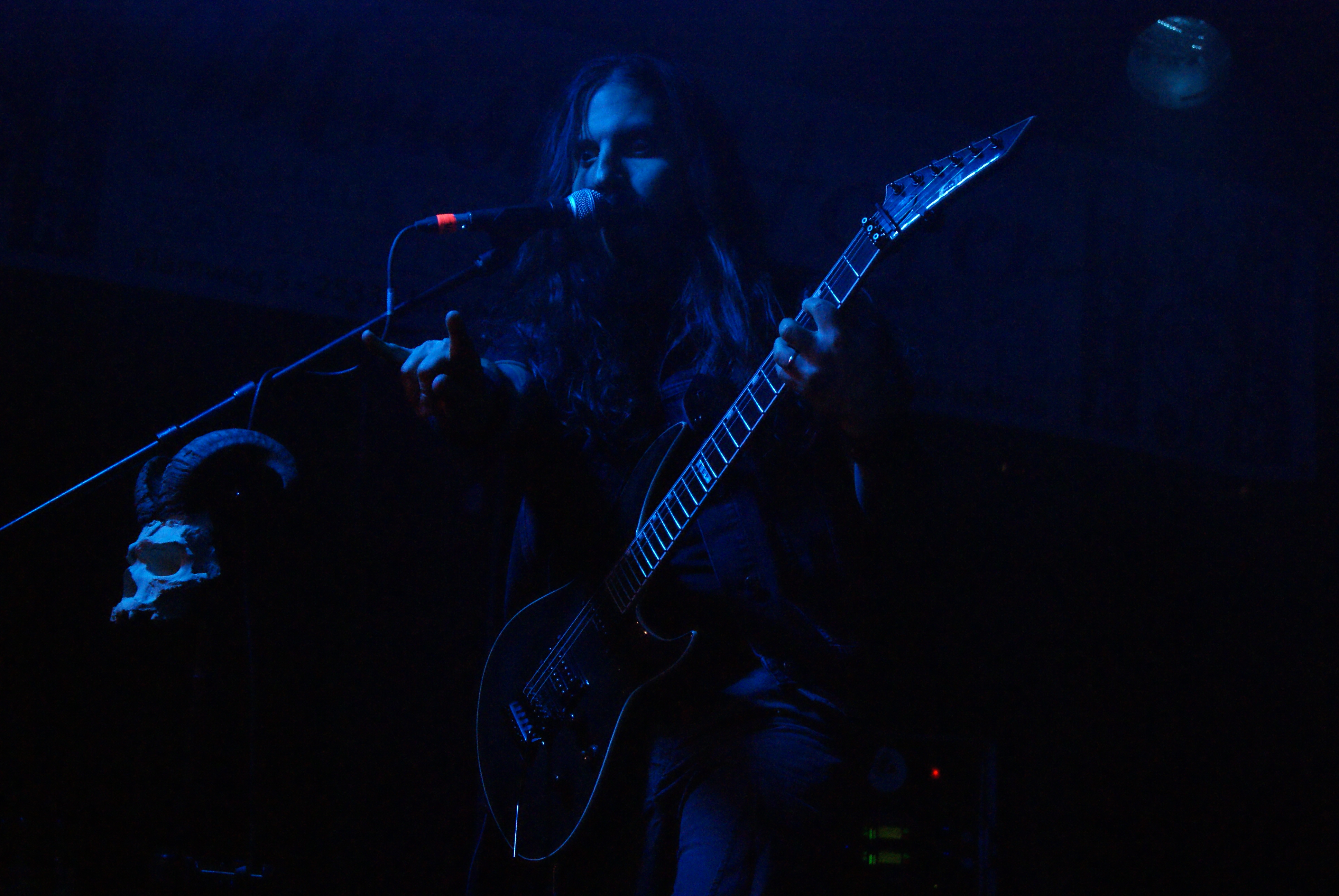 Passend zur einbrechenden Dunkelheit wurde es nun Zeit für das original MERCYFUL FATE Gitarrenduo Michael Denner und Hank Shermann. Gefronted wurde das Ganze von CAGE-Sirene Sean Peck, welcher dieser Tage ein einerseits vielbeschäftigter, aber andererseits auch umstrittener Frontmann ist. Er neigt dazu es mit seinen Screams immer mal wieder zu übertreiben. Und auch heute Abend war es mal wieder hart an der Grenze, auch wenn es natürlich beeindruckend ist, wie hoch der Mann quietschen kann. Albern jedoch war das Getue mit seinem ultrafetten Ledermantel. Obwohl ihm offensichtlich viel zu warm war, zog er das hässliche Ding nicht aus, sondern lüftete es alle 30 Sekunden nur und wirkte damit wie ein alternder Exhibitionist im Offenbacher Stadtpark. Mit „Evil“, „Curse Of The Pharaos“, „Black Funeral“ und „Desecration Of Souls“ kamen zwar auch 4 MERCYFUL FATE Kracher zum Zuge, richtige Begeisterung ließ sich aber nicht ausmachen. Irgendwie hatte man das Gefühl, dass da jeder auf der Bühne sein eigenes Süppchen kochte. Als Einheit waren DENNER / SHERMANN nicht wahrnehmbar. Dazu kamen auch technische Unzulänglichkeiten (der Drummer hatte wohl erst kurz vorher Snowy Shaw ersetzt), sodass Songs teilweise abgebrochen und neu angefangen werden mussten. Gerade Denner wirkte mitunter richtig genervt. Das letzte, was man noch von der Bühne vernahm, war ein „Can’t play with you anymore, guys“. Bin mal gespannt, wie und ob das überhaupt weitergeht. Allerdings macht das in meinen Augen so auch keinen Sinn. Hatte ich mir durchaus mehr von versprochen.
