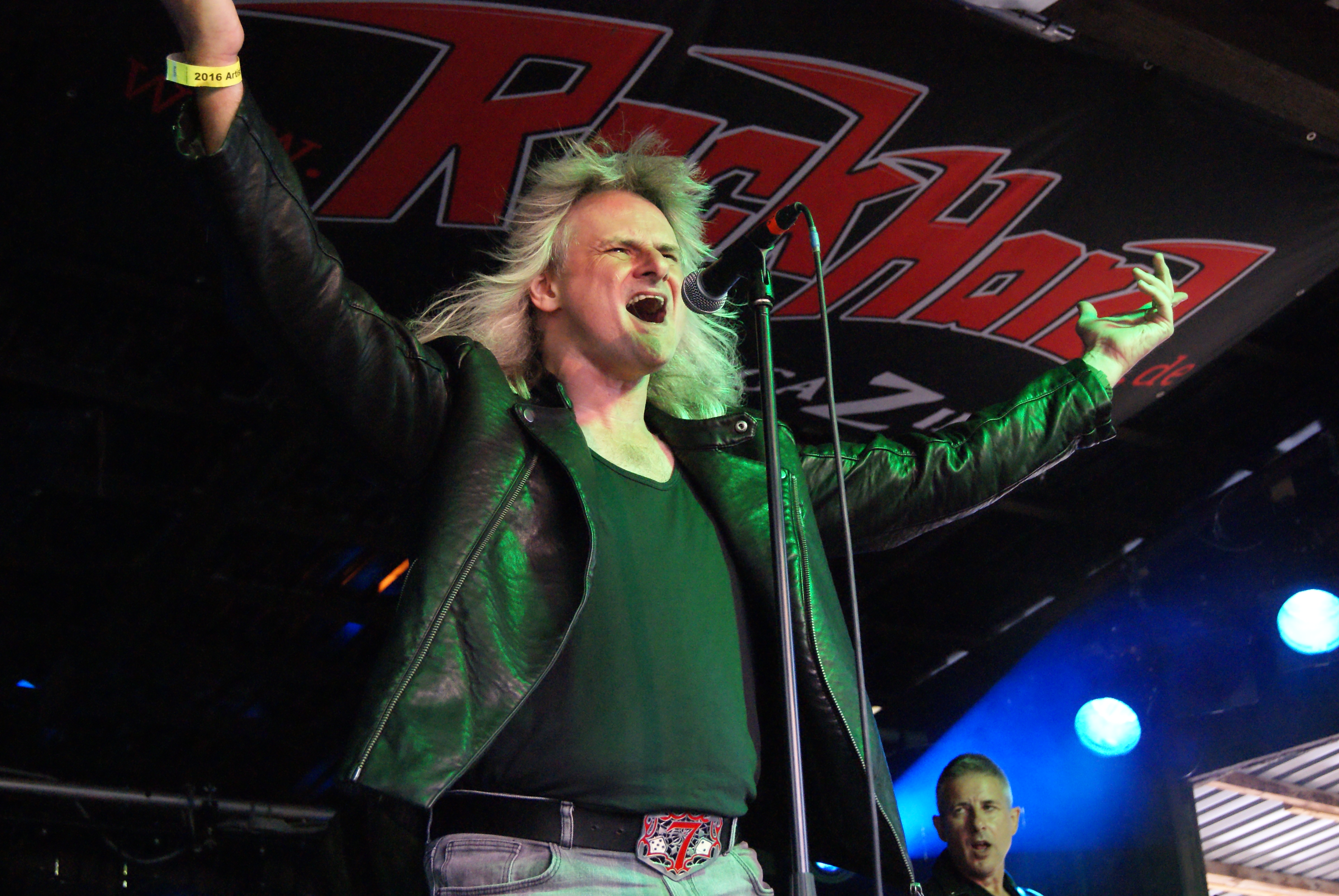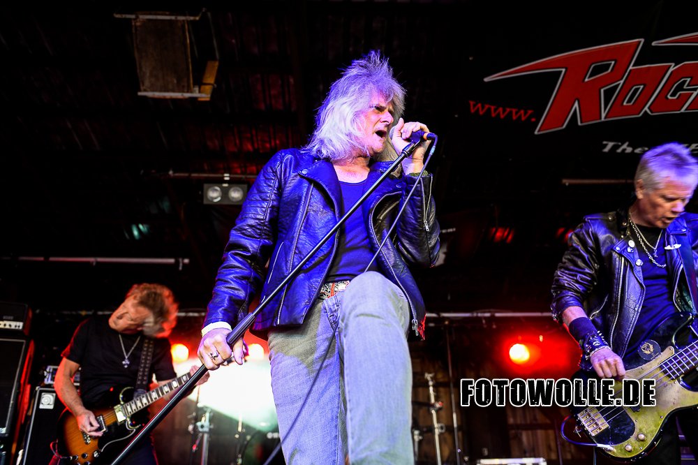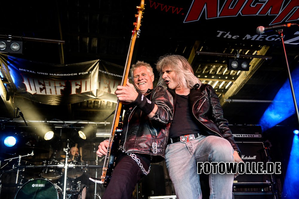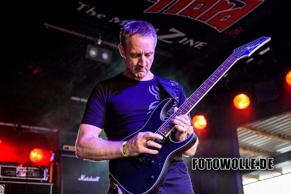 Für mich startete der Samstag mit einer weiteren NWoBHM-Veteranen Kapelle. SALEM. Das besondere an SALEM ist, dass hier nicht 1-2 Originalmitglieder mit diversen neuen Nasen auflaufen, wie es bei vielen anderen UK-Reunions der Fall ist, sondern alle heute auf der Bühne befindlichen Musiker auch schon in den frühen 80ern zusammen unterwegs waren. SALEMs Sangesmeister sieht zwar aus wie Drumlegende Tommy Aldridge, kann vermutlich aber besser singen und hat seinen Platz am Mikro somit zu Recht. SALEM sind für eine Band, deren erste Gehversuche aus dem Jahre 1981 datieren, erfreulich agil und haben augenscheinlich Lust am rocken. Zumindest sind sie nach OSTROGOTH schon die zweite Band des Festivals, die einen Titel namens „Rock Fever“ im Programm haben. Und da dieses wohl immer noch in ihnen wütet, kann man ihnen eine starke Leistung attestieren.