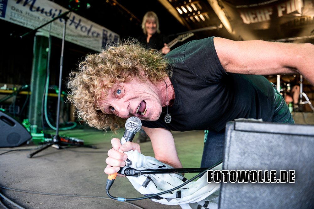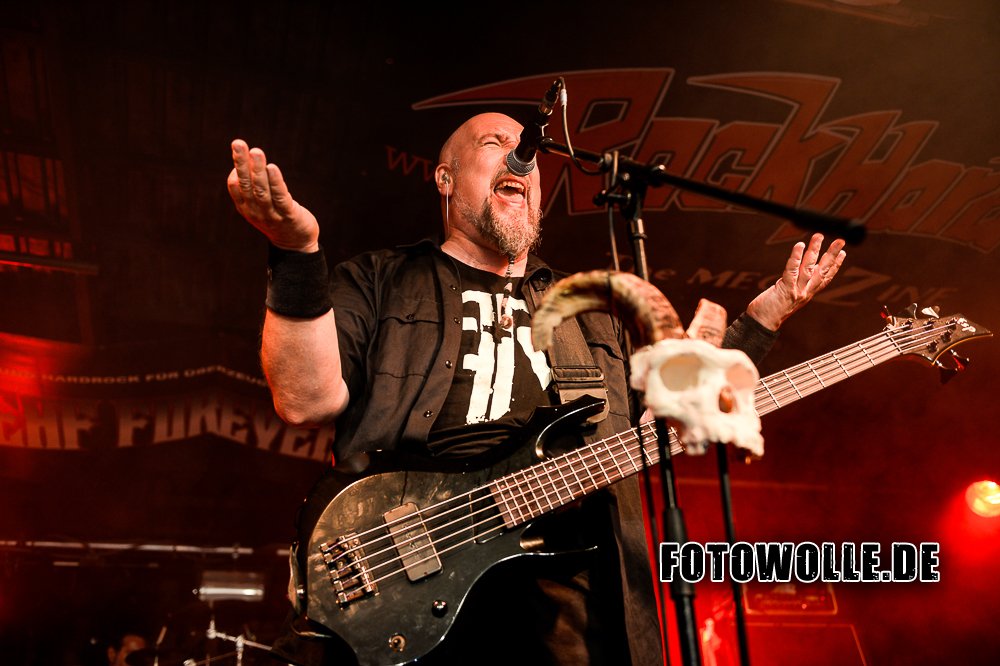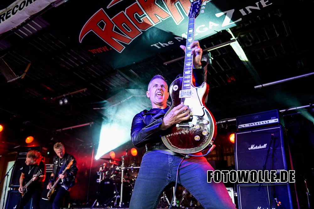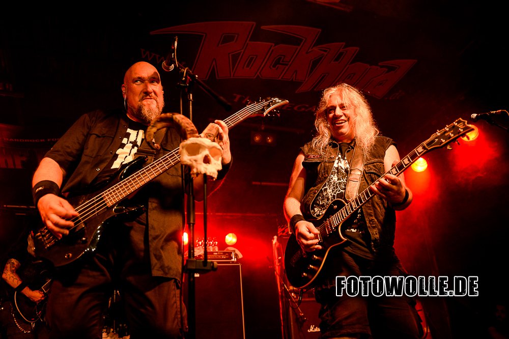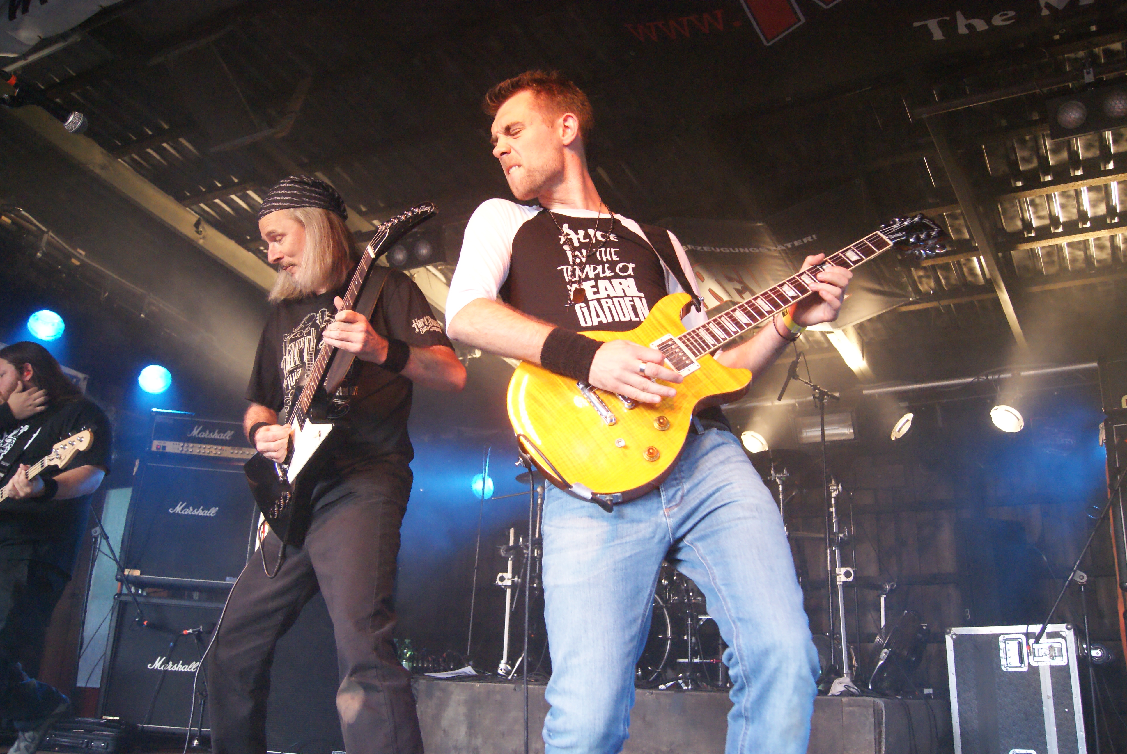 Für mich startete der Samstag mit einer weiteren NWoBHM-Veteranen Kapelle. SALEM. Das besondere an SALEM ist, dass hier nicht 1-2 Originalmitglieder mit diversen neuen Nasen auflaufen, wie es bei vielen anderen UK-Reunions der Fall ist, sondern alle heute auf der Bühne befindlichen Musiker auch schon in den frühen 80ern zusammen unterwegs waren. SALEMs Sangesmeister sieht zwar aus wie Drumlegende Tommy Aldridge, kann vermutlich aber besser singen und hat seinen Platz am Mikro somit zu Recht. SALEM sind für eine Band, deren erste Gehversuche aus dem Jahre 1981 datieren, erfreulich agil und haben augenscheinlich Lust am rocken. Zumindest sind sie nach OSTROGOTH schon die zweite Band des Festivals, die einen Titel namens „Rock Fever“ im Programm haben. Und da dieses wohl immer noch in ihnen wütet, kann man ihnen eine starke Leistung attestieren.