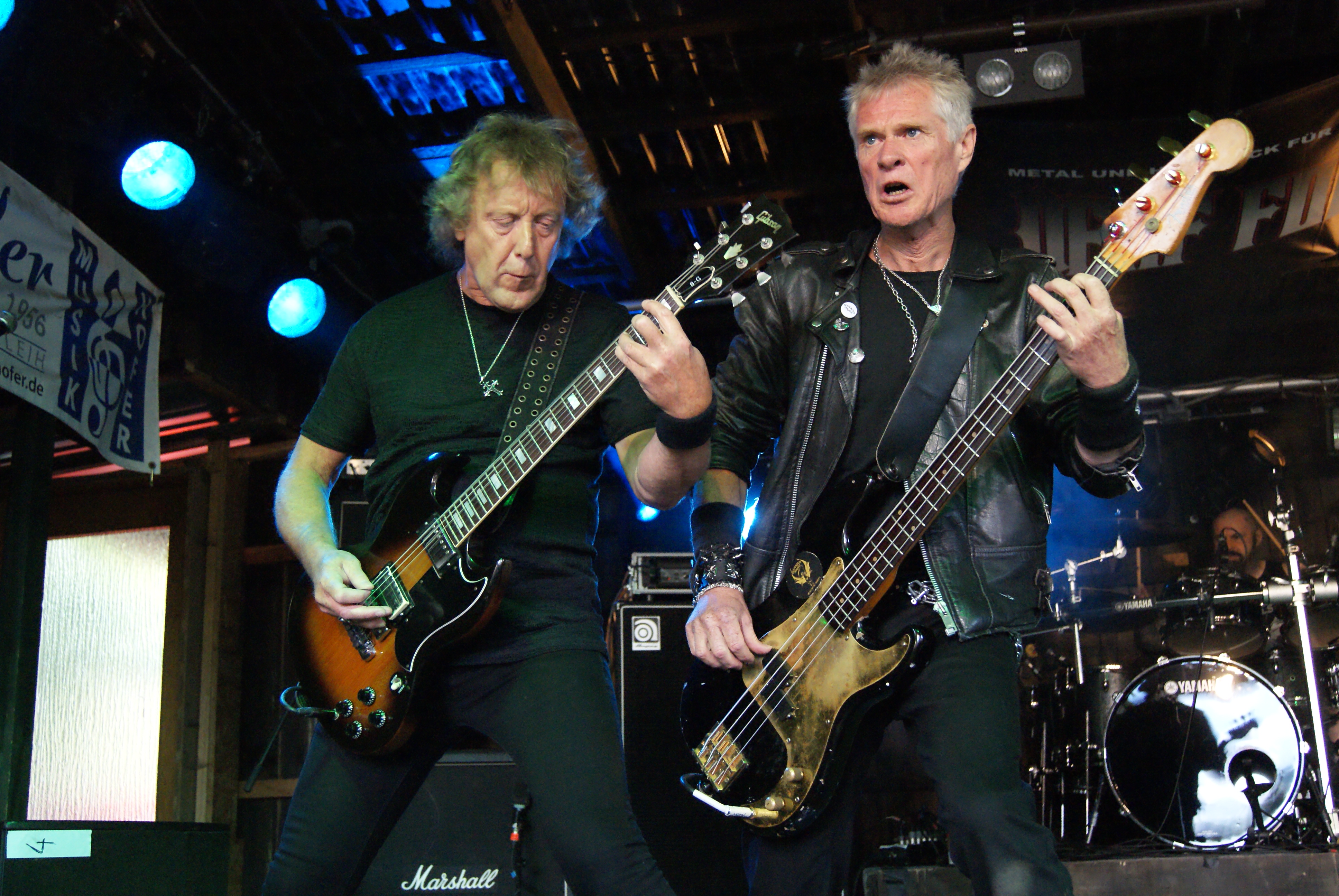 Und als letzte NWoBHM-Band des Tages durften mal wieder OD-SAXON ran. Sänger Bri Shaugnessy fragte auch sogleich was man denn ohne sie letztes Jahr hier gemacht hätte. Auch wenn den Herren um die Original SAXON Recken Steve Dawson (Bass) und Graham Oliver (Gitarre) etwas die Aura der „großen“ SAXON abgeht, so haben sie doch einen großen Vorteil gegenüber den vielen anderen NWoBHM Bands, die dieses Wochenende auftraten: Hits, Hits, Hits!!! „Heavy Metal Thunder“, „Rock ‘N Roll Gypsy“, „Strong Arm Of The Law“, „20.000 Feet”, „Crusader”, „Wheels Of Steel”, „Princess Of The Night” usw. Das war ein Feuerwerk. Und Brande-Hörnerkirchen war mehr als gewillt da mitzumachen und mitzufeiern. Dies wiederum übertrug sich auch auf die Band und besonders Oliver war sehr agil. Natürlich kann man sich die Frage stellen, ob es wirklich zwei Bands braucht, die ein und dieselben Songs spielen, aber um ehrlich zu sein war das an diesem Abend komplett wurscht, da alle ausrasteten und einen mordsmäßigen Spaß hatten. Meine Person eingeschlossen. Damit erklärt sich auch die eben gestellte Frage. Außerdem haben es OD-SAXON geschafft, dass ich doch noch einen versöhnlichen Abschluss mit der NWoBHM an diesem Wochenende machen konnte.