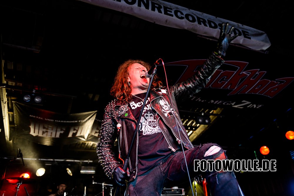 Und dann TRESPASS. Eine weitere NWoBHM Band wo mir nur der Name, nicht jedoch die Songs im Vorfeld bekannt waren und ich muss gestehen, dass es mir so langsam etwas viel der Inselmucke wurde. Natürlich passt das zum Motto und hat auch vielen gefallen, da ich aber noch nie so der absolute UK Freak war, kam ich eben etwas an meine Kapazitätsgrenzen. Objektiv haben aber auch TRESPASS einen guten bis sehr guten Auftritt hingelegt, der mich allerdings nicht so in Verzückung versetzt hatte, dass ich gleich zum Merchstand rennen musste um mir die Alben zuzulegen. Und normalerweise passiert mir das zum Leidwesen meiner Barschaft sonst relativ oft.