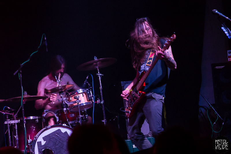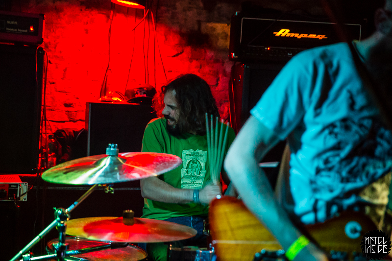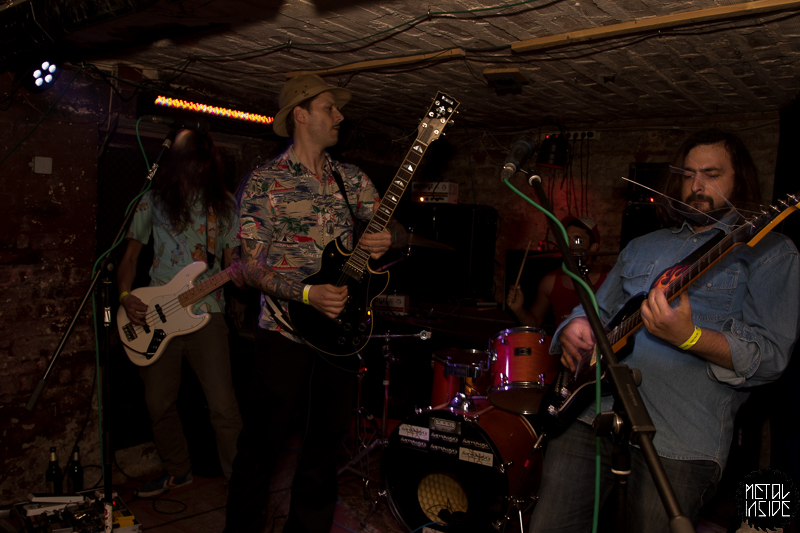 Im Tiefgrund überzeugt SHAUN schon beim Soundcheck. Die Ansage "Willkommen beim Konterbiertrinken mit Shaun" eröffnete dann eine tolle Instrumental-Stoner-Session. Es folgte die COSMIC COMBO mit verspieltem Stonerrock und Hammond-Orgel-Sound. Im Theatersaal spielte sodann BALG auf. Viele Effekte, satter, bassiger Sound mit weiblicher Klarstimme, die die Texte nur so dahinrotzte. Schwere Kost mit Gänsehautgarantie! Zurück im Tiefengrund zockte uns KALAMAHARA einen funky Stoner vor, der auch mich vom Hocker riss. Das Tiefengrund war am Samstag so voll, dass man sich kaum noch bewegen, geschweige denn atmen konnte. OUZO BAZOOKA folgten im Theatersaal mit 60er Desertrock mit Orient-Einflüssen. Die Israelis aus Tel AVIV schauen wir uns dann am Montag gleich nochmal in der Astrastube in Hamburg an. THIEVES BY THE CODE konnten sich nicht so richtig für eine Musikrichtung entscheiden und so begann es mit Hammond-Orgel-60s-Rock'n'Roll, der plötzlich Punkrock wurde und dann in die Wüste zurückkehrte. Weiter zu der Berliner Band NEUME. Das Trio macht scheppernden Noise-Rock mit Hang zu ausgedehnten Improvisationen. Sehen konnte ich sie leider nicht, da ich nicht bis in Sichtweite herankam. MOTOROWLs Shouter growlte zu sehr ruhigem, psychedelischem Sound. Die Hammon-Orgel rundete das ganze ab. Dann das Finale: THE MACHINE holten mit ihrem Heavy-Stoner-Psych-Kraut-Sound nochmal alles aus dem Publikum und uns heraus, bevor wir uns dann ein Taxi nahmen und zum Hotel fuhren.