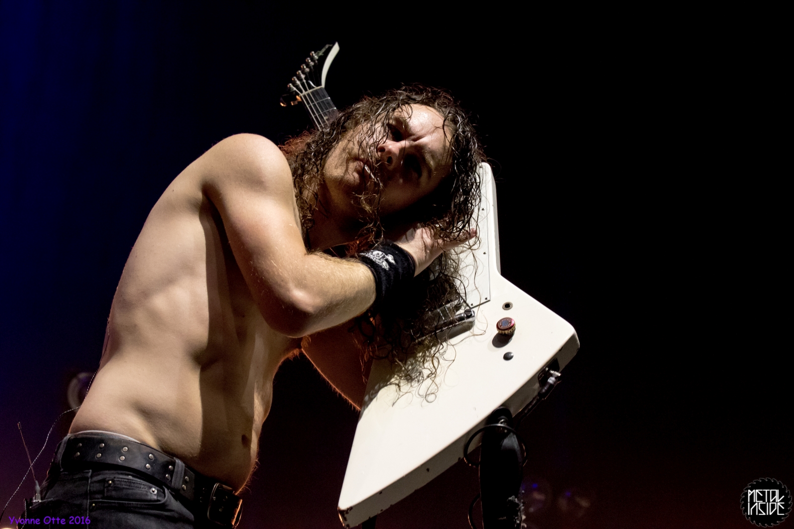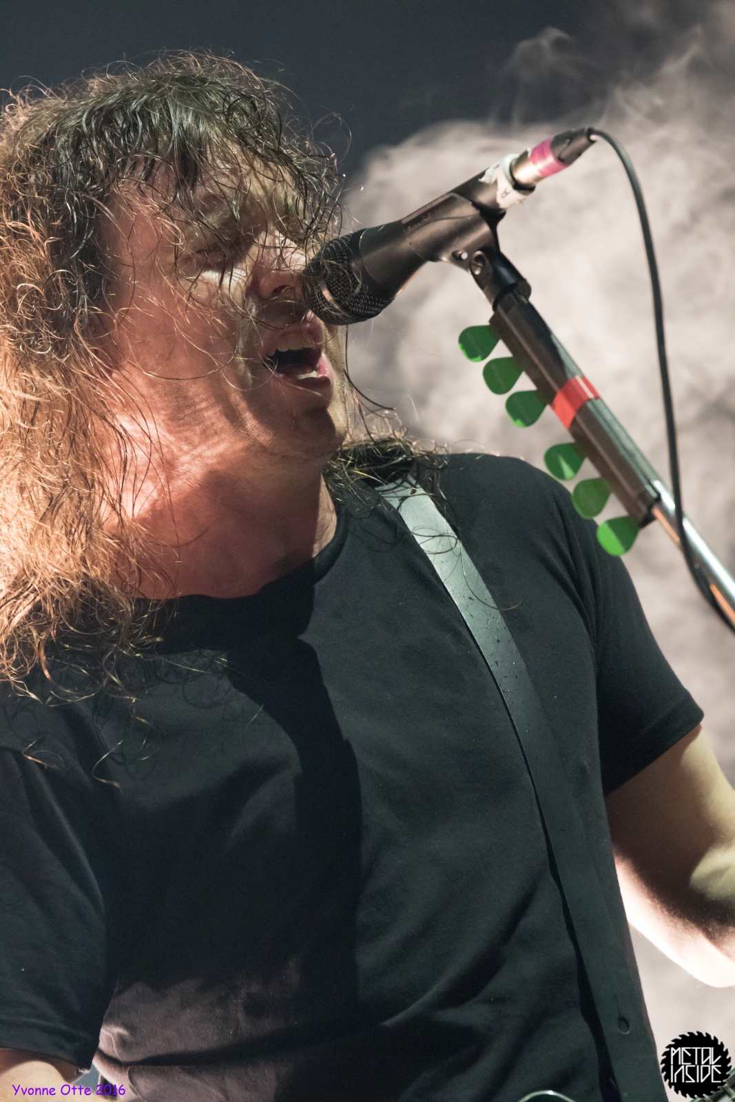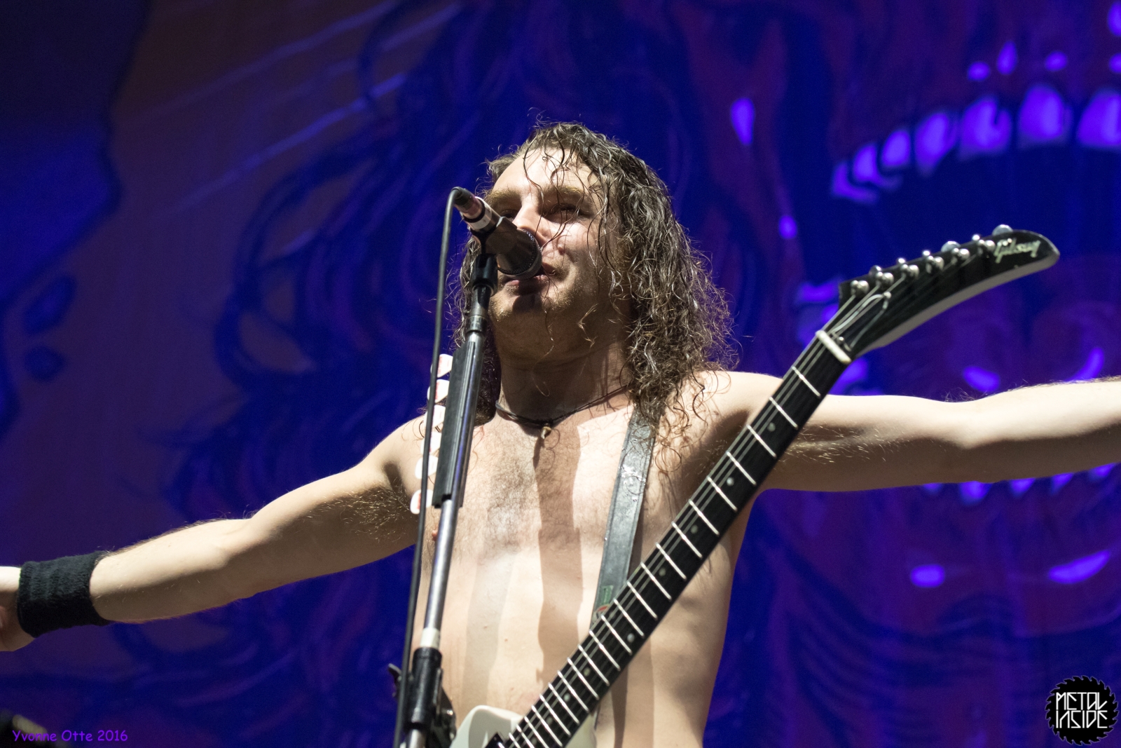 Auffällig war, dass der überwiegende Teil der Songs aus den letzten beiden Alben stammen. Der Rest war zwar gut gemischt, aber wahrscheinlich hat den alteingesessenen Fans doch die gewisse Härte der älteren Songs gefehlt. Vielleicht hätte das auch dafür gesorgt, dass etwas mehr Bewegung auf der Bühne stattgefunden hätte. Kramt man in den Erinnerungen 3 Jahre zurück, erinnert man sich an Shows von VOLBEAT, wo Sänger Michael nach der Hälfte des Konzertes nicht wie aus dem Ei gepellt aussah und wirklich alles bei den Shows gegeben hat. In Oberhausen wurde zwar hin und wieder das Mikrofon gewechselt, es gab fünf Standorte, aber mehr Action gab es eigentlich nicht. Schön war allerdings am Ende beim letzten Song, als die Anwesenden Kinder auf die Bühne durften. Für viele sicherlich ein Highlight des Lebens. Sympathisch wie VOLBEAT sind, wurden natürlich noch Fotos für die Erinnerung geschossen. Wirklich sehr schön anzusehen und ein kleines Highlight des Abends.