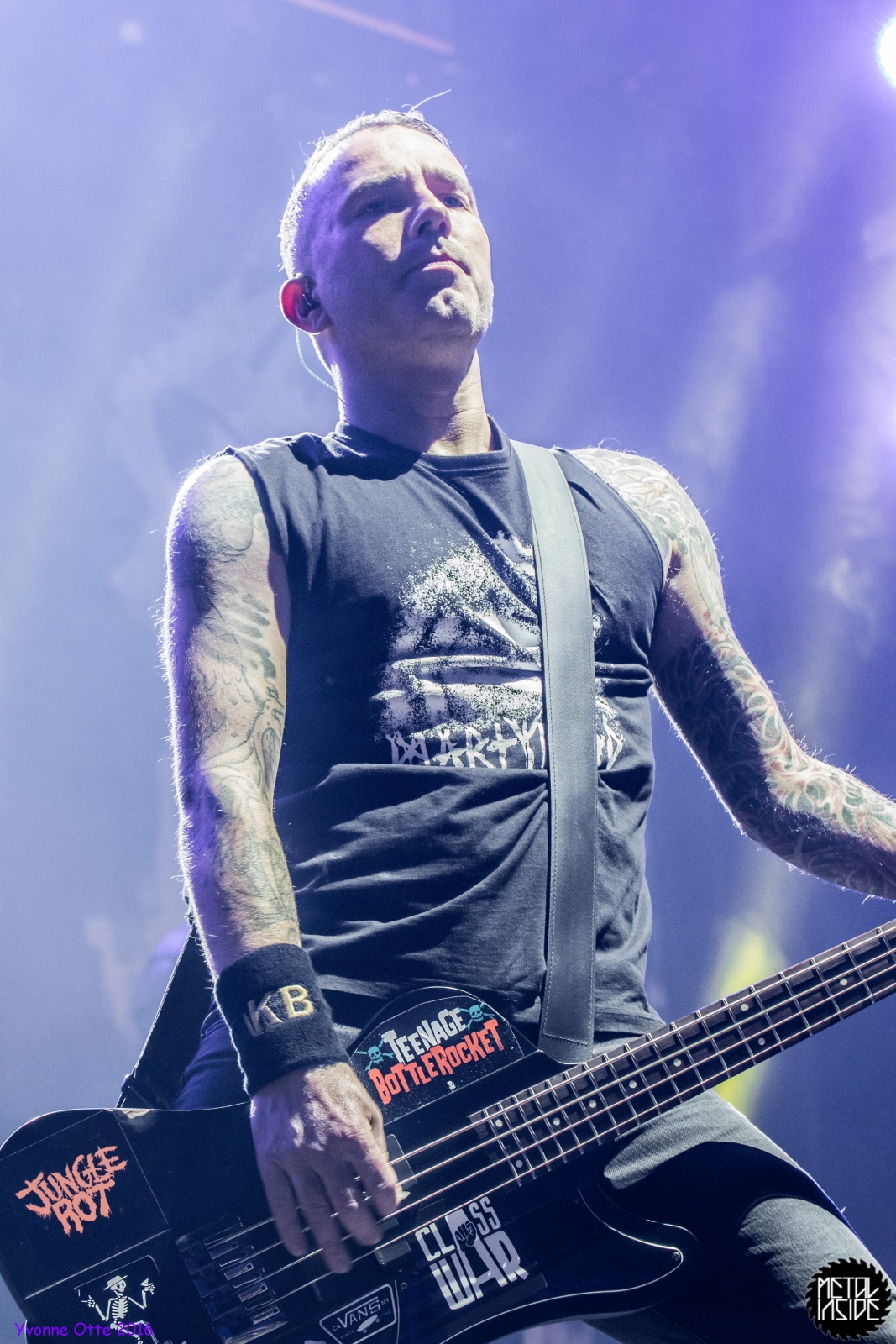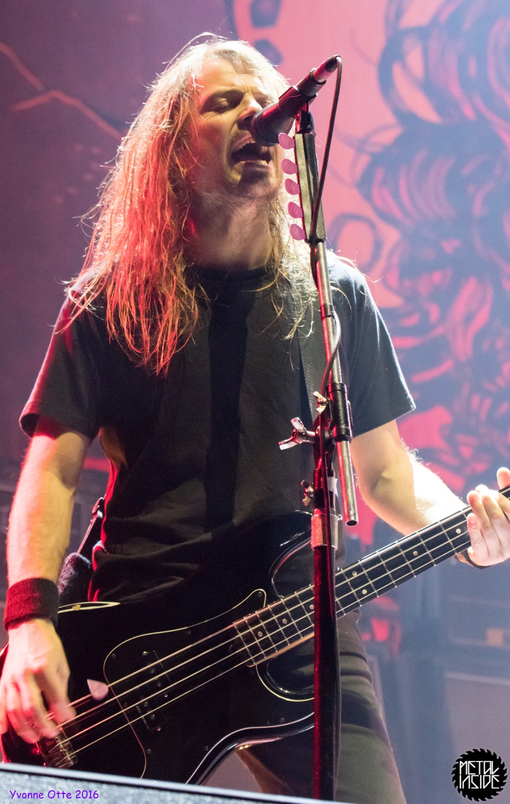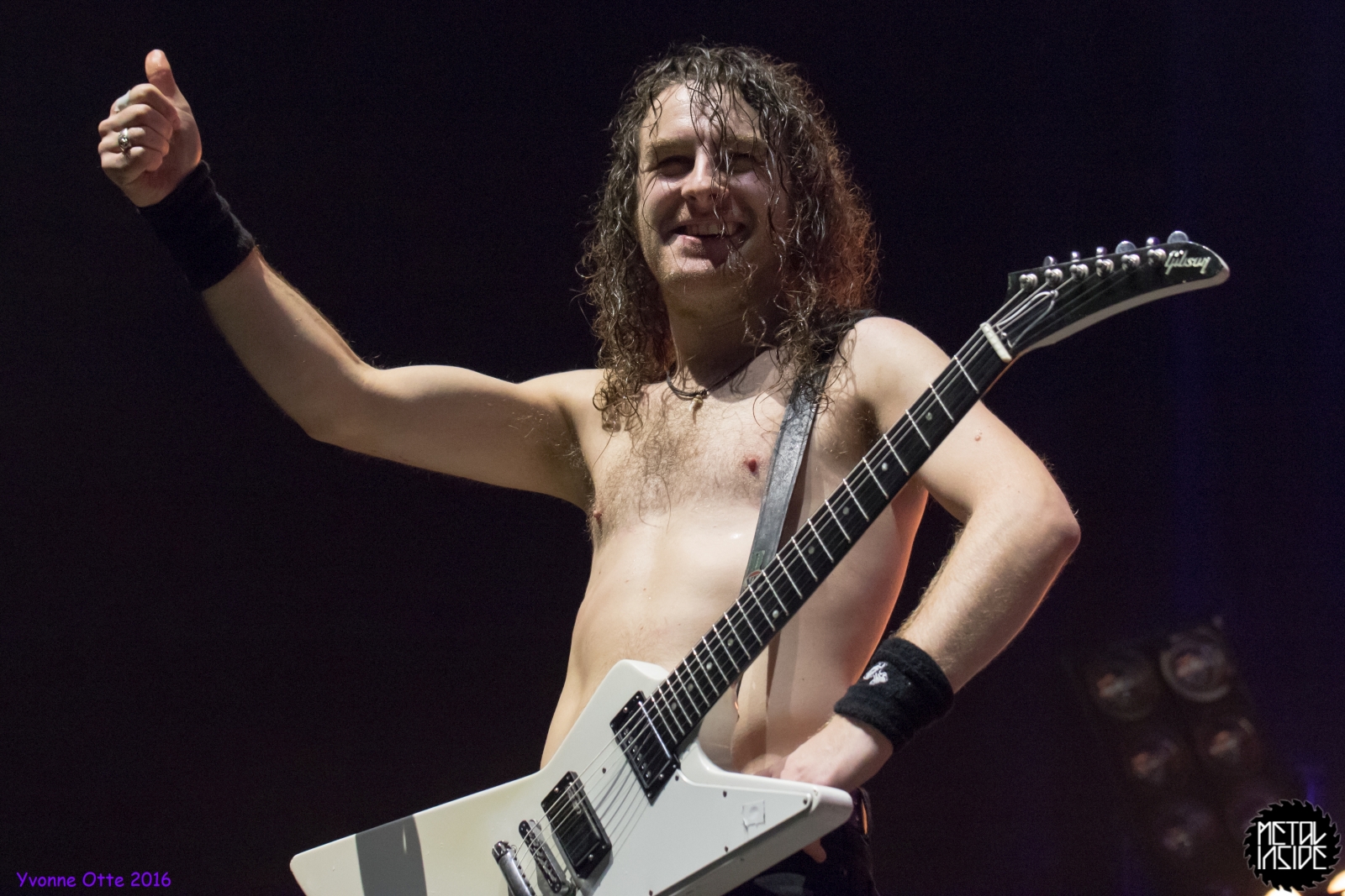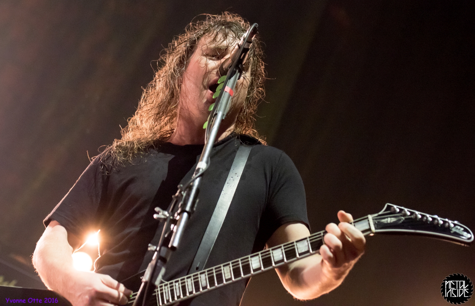 Auffällig war, dass der überwiegende Teil der Songs aus den letzten beiden Alben stammen. Der Rest war zwar gut gemischt, aber wahrscheinlich hat den alteingesessenen Fans doch die gewisse Härte der älteren Songs gefehlt. Vielleicht hätte das auch dafür gesorgt, dass etwas mehr Bewegung auf der Bühne stattgefunden hätte. Kramt man in den Erinnerungen 3 Jahre zurück, erinnert man sich an Shows von VOLBEAT, wo Sänger Michael nach der Hälfte des Konzertes nicht wie aus dem Ei gepellt aussah und wirklich alles bei den Shows gegeben hat. In Oberhausen wurde zwar hin und wieder das Mikrofon gewechselt, es gab fünf Standorte, aber mehr Action gab es eigentlich nicht. Schön war allerdings am Ende beim letzten Song, als die Anwesenden Kinder auf die Bühne durften. Für viele sicherlich ein Highlight des Lebens. Sympathisch wie VOLBEAT sind, wurden natürlich noch Fotos für die Erinnerung geschossen. Wirklich sehr schön anzusehen und ein kleines Highlight des Abends.