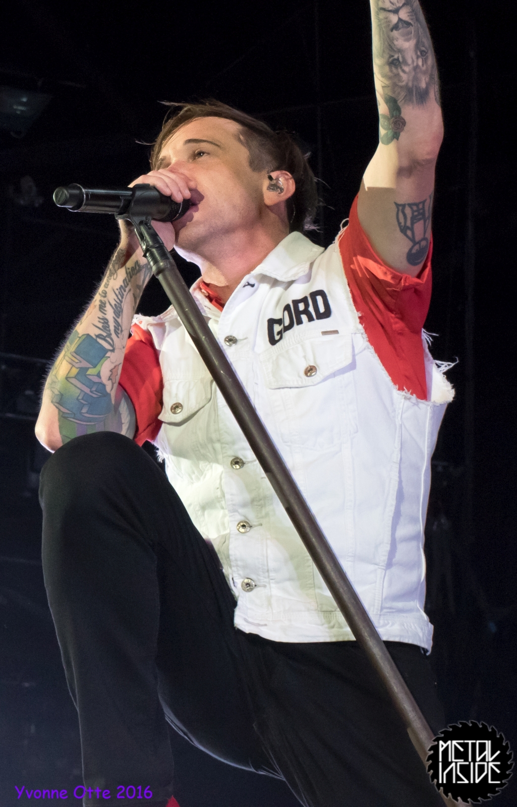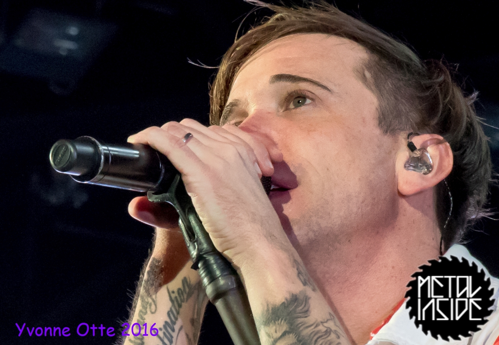 Es folgte ein Blitzumbau und gegen 22 Uhr durften BILLY TALENT endlich auf die Bühne. Vom ersten bis zum letzten Ton herrschte eine fantastische Stimmung, die selbst die Band manchmal sprachlos gemacht hatte. Immer wieder „Billy Talent“-Chöre, die sich zwischen den Songs entwickelt hatten und eine sichtlich gut gelaunte Band, die richtig Bock hatte dieses Konzert zu spielen. Von der Stimmung her war es auch egal, ob ein alter Song gespielt wurde oder ein Neuer –alles kam gut an und wurde gefeiert. Die Songauswahl war gut gemischt durch alle Alben. 21. Songs wurden gespielt, davon kamen sechs vom neuen Album. Radiohits wie „Surrender“ oder „Fallen Leaves“ durften natürlich auch nicht fehlen. Selten auch einen Sänger gesehen, der so viel Spaß und so viel gelächelt hatte. Zwischen den Songs hat Benjamin meist kleine Ansagen gemacht: so wurde einmal an SCOTT WEILAND gedacht, dessen erster Todestag am Konzertabend war. Außerdem wurde erklärt, warum Schlagzeuger Aaron derzeit von Jordan Hastings (ALEXISONFIRE) vertreten wird. Grund dafür ist die MS-Erkrankung von Aaron, die es derzeit nicht zulässt, dass er auf Tour geht. Benjamin sagte auch, dass von jedem verkauftem Ticket ein Euro an Aarons MS-Stiftung gespendet werden. Bei einer ausverkauften Halle wie die Mitsubishi Electric Halle kommen da gut über7.000 Euro zusammen. Nimmt man dann die gesamte Tour, so kommt da doch eine beachtliche Summe zusammen. Gute Sache! Der Euro tut nicht weh, auch wenn die Tickets dadurch eventuell einen Euro mehr kosten. Die Menge macht es und mit so Summen kann die Stiftung schon sehr viel machen.