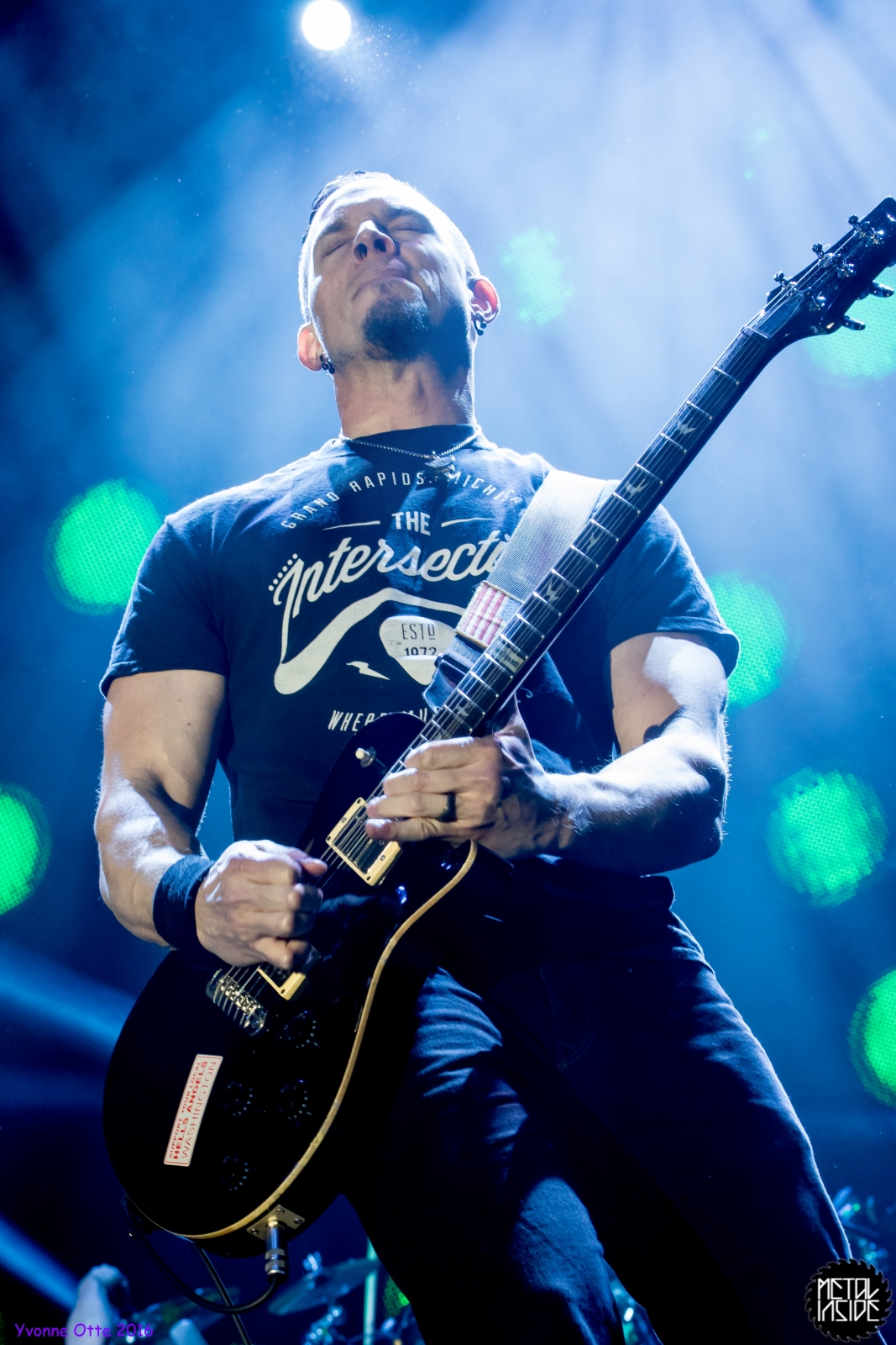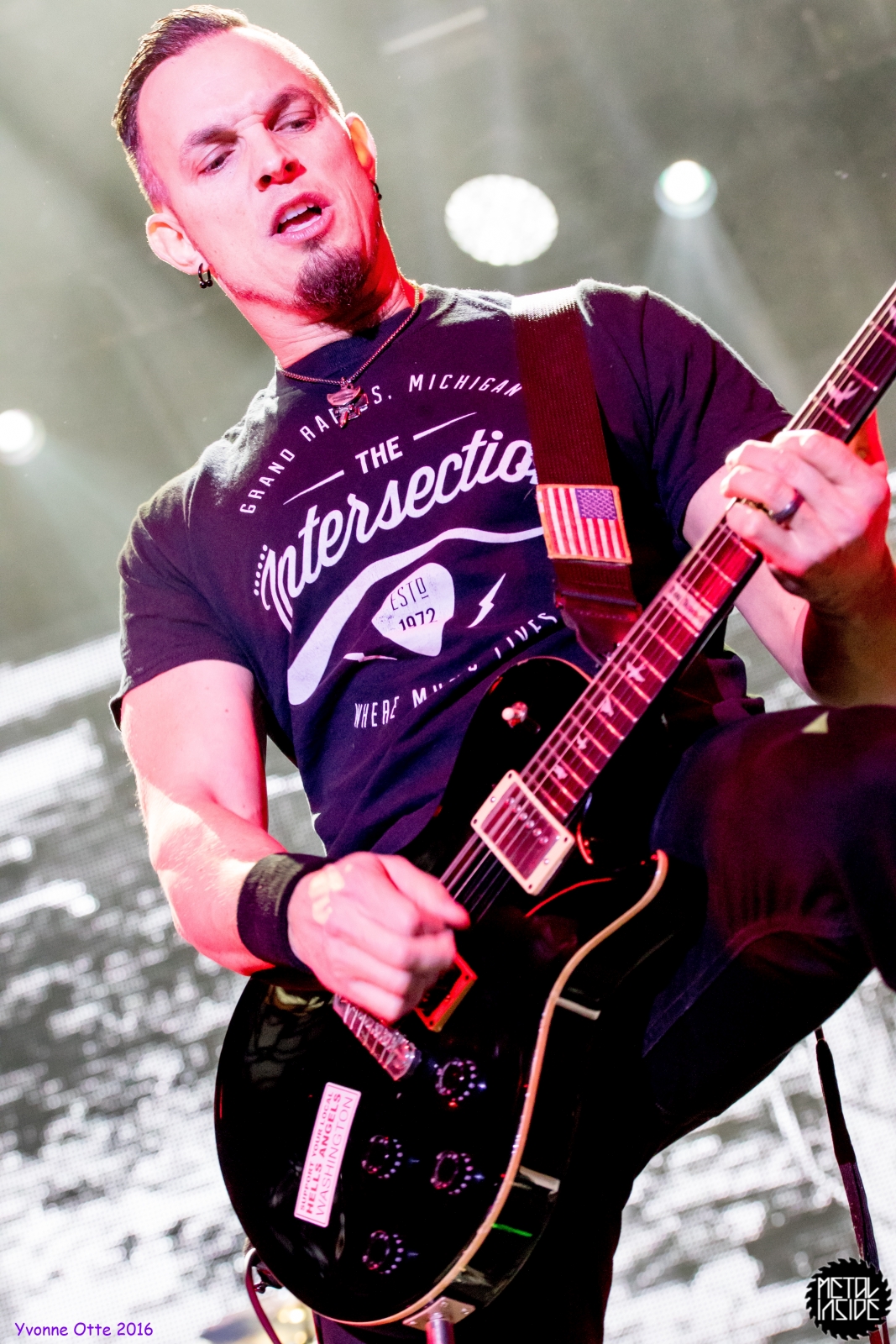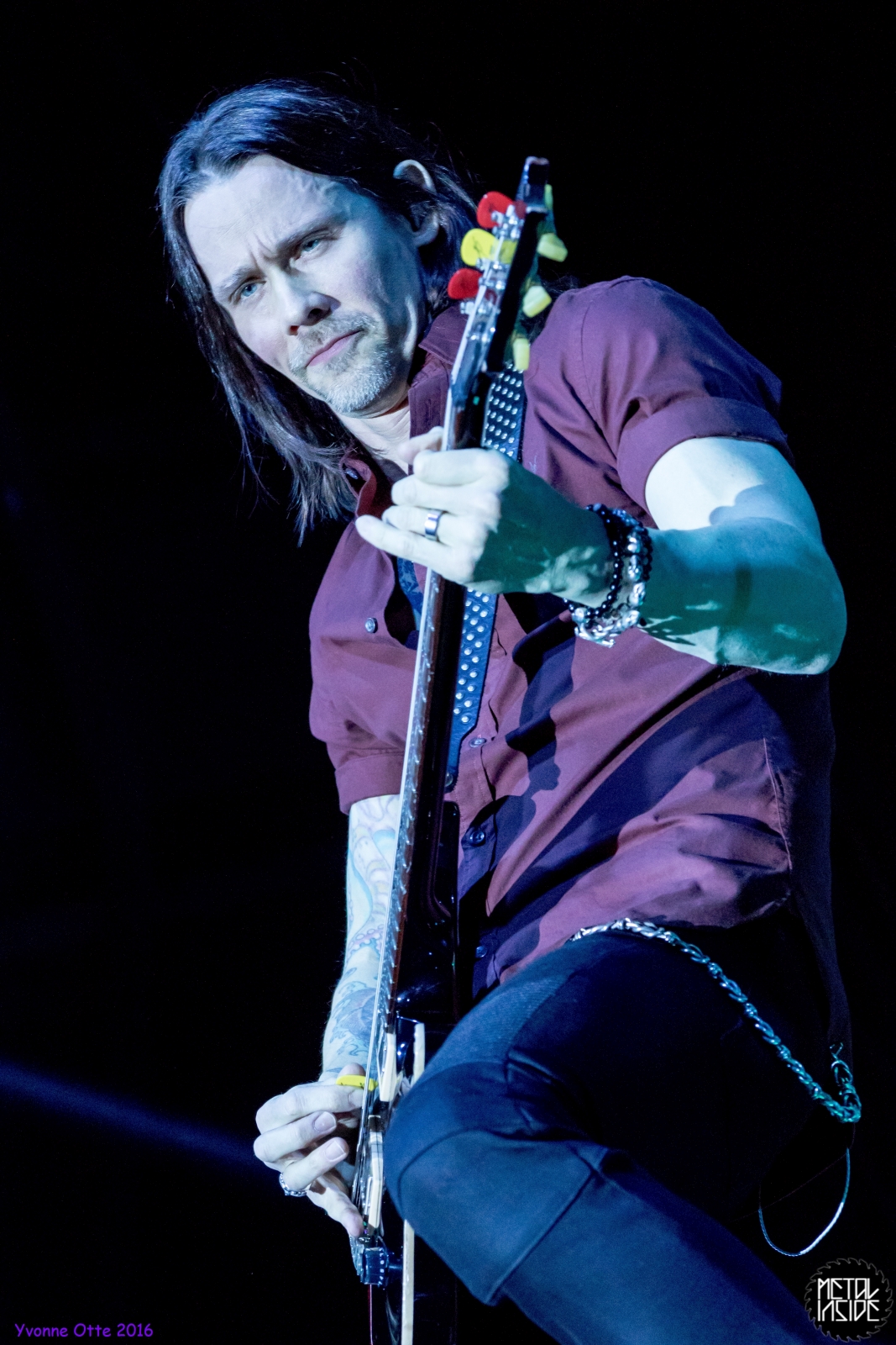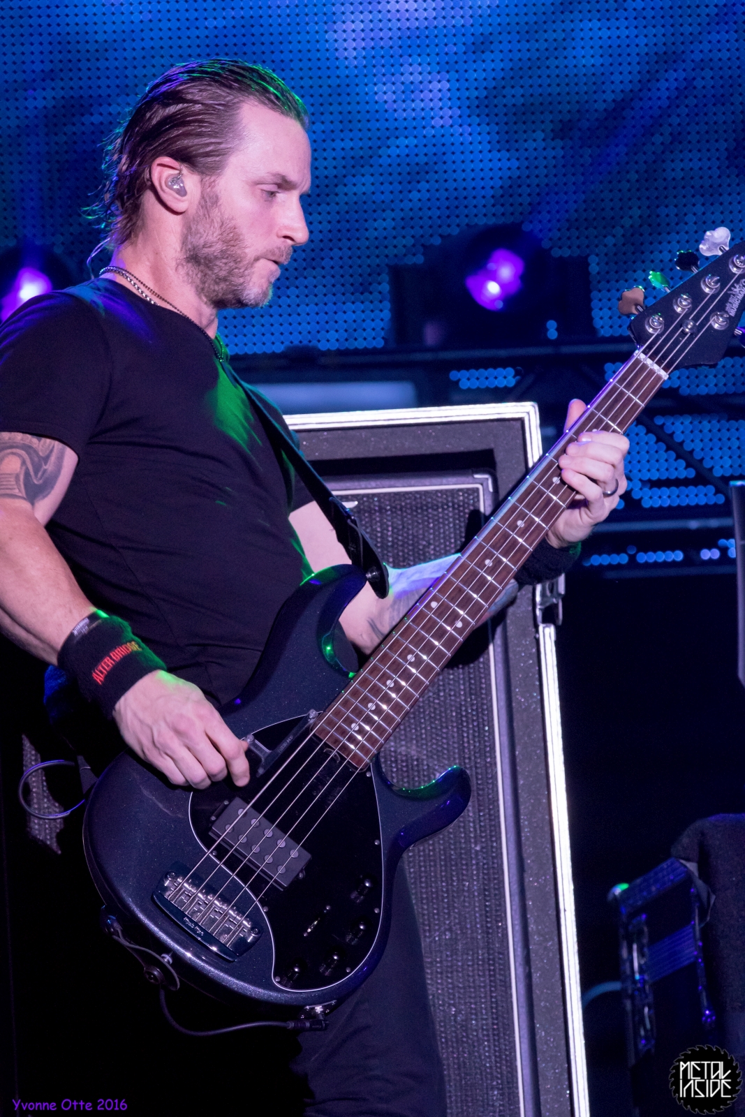 Recht spät am Abend, gegen 21 Uhr 30 durften ALTER BRIDGE endlich auf die Bühne. Das Palladium war zwar nicht restlos ausverkauft, aber wirklich viel Platz zum Stehen hatte man trotzdem nicht. ALTER BRIDGE brauchte nicht viel machen, schon die bloße Anwesenheit auf der Bühne brachte die Menge zum ausrasten. Mit „Writing On The Wall“ vom neuen Album „The Last Hero“ sollte der Abend starten und allen einen unvergessliches Konzert bescheren. Die Songauswahl war gut getroffen. Es wurden von allen Alben Songs gespielt, wobei dasNeue natürlich im Fokus stand. Hits wie „Metalingus“ oder „ Addicted To Pain“ sollten aber auch nicht fehlen. Trotz der Power der Band hat es sich ALTER BRIDGE nicht nehmen lassen „Watch Over You“ akustisch zu spielen: Nur Myles und seine Gitarre! Der Applaus danach war gigantisch. Die kleine technische Panne mitten im Konzert hat der Band, die wohl zum Perfektionismus neigt, wohl mehr gestört als dem Publikum. Das Publikum nahm es mit Humor und das macht ein Livekonzert eben auch aus. Relativ schnell wurde das Brummen behoben und es konnte weiter gehen. Der Stimmung hat es nicht geschadet. Viel geredet wurde nicht. ALTER BRIDGE spielen eben lieber Musik anstatt zu reden. Ist auch gut so, denn so ging das Konzert leicht über 2 Stunden und es wurden 18 Songs gespielt. 18 Songs sieht auf dem ersten Blick vielleicht wenig aus, aber man muss hierbei bedenken, dass so Songs wie „Blackbird“ in der Livefassung acht Minuten geht und kaum in Lied unter vier Minuten dabei war. Generell kann man auch nicht sagen, dass es von den Reaktionen des Publikums keinen großen Unterschied gemacht hat, ob nun etwas Altes oder Neues gespielt wurde. Die Fans lieben einfach alle Songs, egal ob neu oder alt. Beim Rausgehen konnte man hören, wie begeistert das Publikum die Halle verlassen hat.