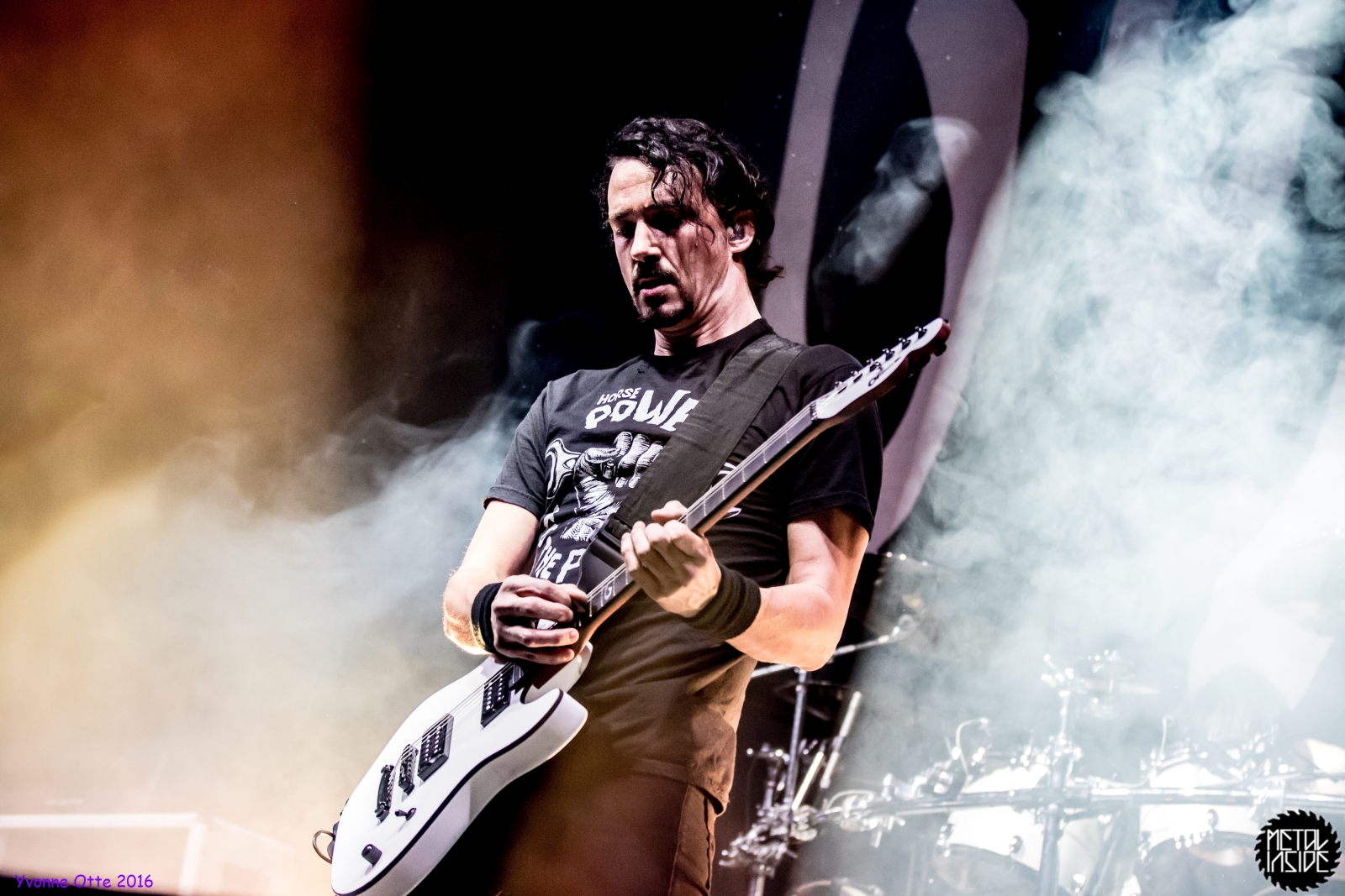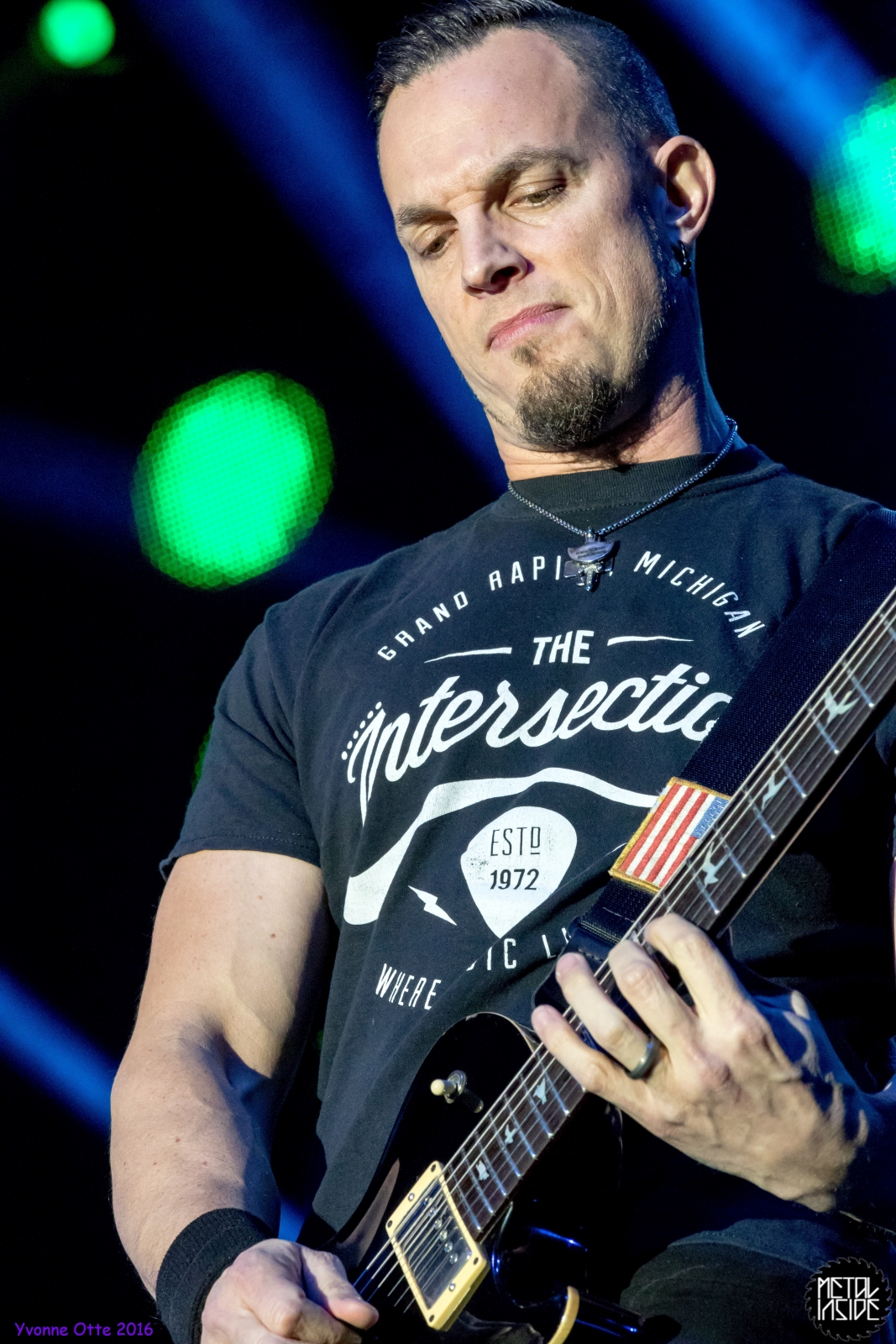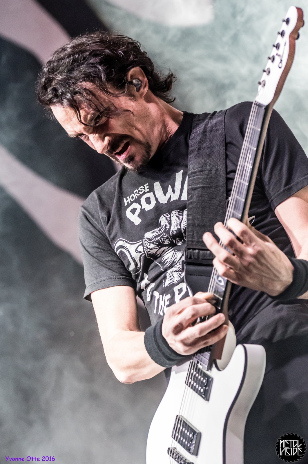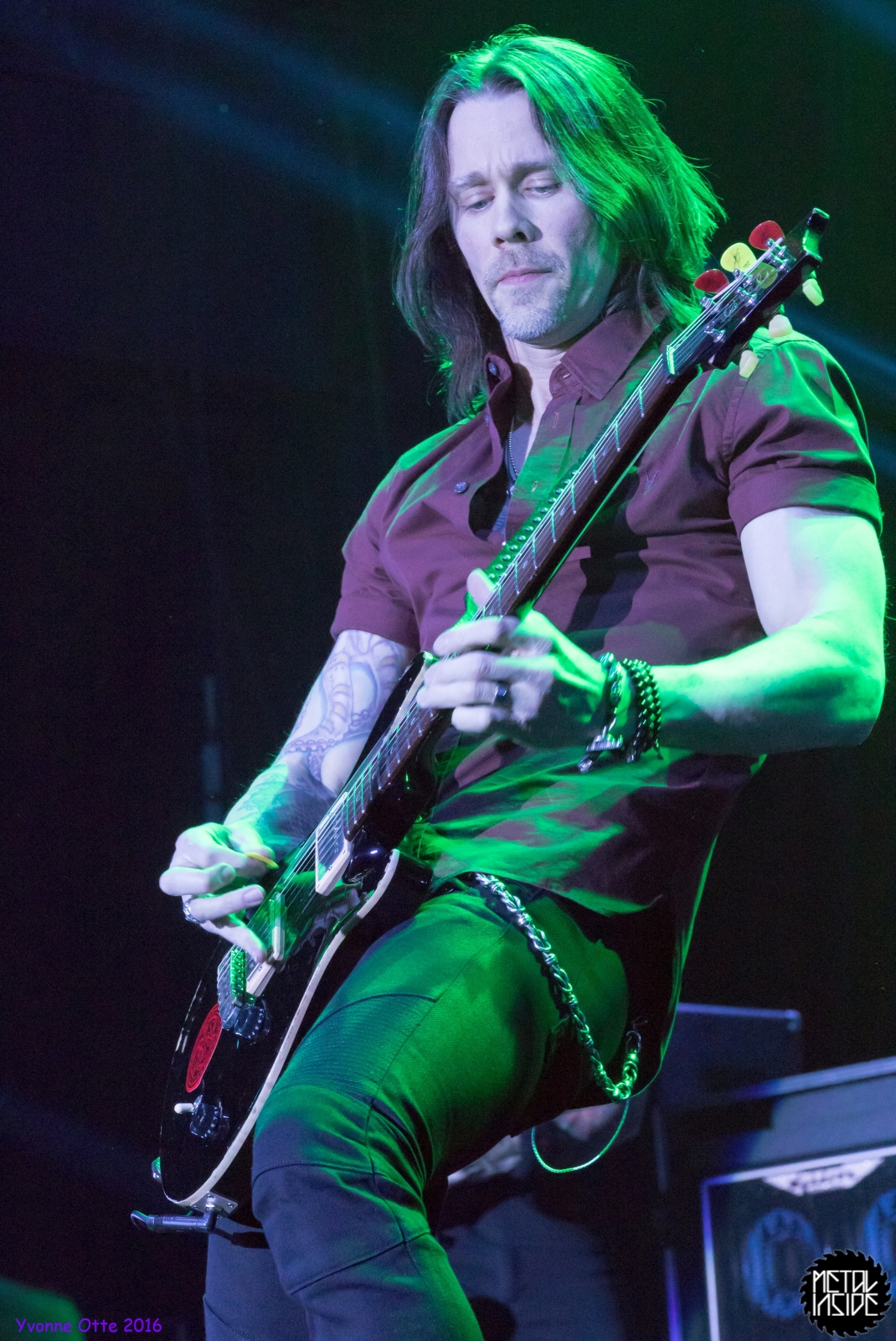 Recht spät am Abend, gegen 21 Uhr 30 durften ALTER BRIDGE endlich auf die Bühne. Das Palladium war zwar nicht restlos ausverkauft, aber wirklich viel Platz zum Stehen hatte man trotzdem nicht. ALTER BRIDGE brauchte nicht viel machen, schon die bloße Anwesenheit auf der Bühne brachte die Menge zum ausrasten. Mit „Writing On The Wall“ vom neuen Album „The Last Hero“ sollte der Abend starten und allen einen unvergessliches Konzert bescheren. Die Songauswahl war gut getroffen. Es wurden von allen Alben Songs gespielt, wobei dasNeue natürlich im Fokus stand. Hits wie „Metalingus“ oder „ Addicted To Pain“ sollten aber auch nicht fehlen. Trotz der Power der Band hat es sich ALTER BRIDGE nicht nehmen lassen „Watch Over You“ akustisch zu spielen: Nur Myles und seine Gitarre! Der Applaus danach war gigantisch. Die kleine technische Panne mitten im Konzert hat der Band, die wohl zum Perfektionismus neigt, wohl mehr gestört als dem Publikum. Das Publikum nahm es mit Humor und das macht ein Livekonzert eben auch aus. Relativ schnell wurde das Brummen behoben und es konnte weiter gehen. Der Stimmung hat es nicht geschadet. Viel geredet wurde nicht. ALTER BRIDGE spielen eben lieber Musik anstatt zu reden. Ist auch gut so, denn so ging das Konzert leicht über 2 Stunden und es wurden 18 Songs gespielt. 18 Songs sieht auf dem ersten Blick vielleicht wenig aus, aber man muss hierbei bedenken, dass so Songs wie „Blackbird“ in der Livefassung acht Minuten geht und kaum in Lied unter vier Minuten dabei war. Generell kann man auch nicht sagen, dass es von den Reaktionen des Publikums keinen großen Unterschied gemacht hat, ob nun etwas Altes oder Neues gespielt wurde. Die Fans lieben einfach alle Songs, egal ob neu oder alt. Beim Rausgehen konnte man hören, wie begeistert das Publikum die Halle verlassen hat.