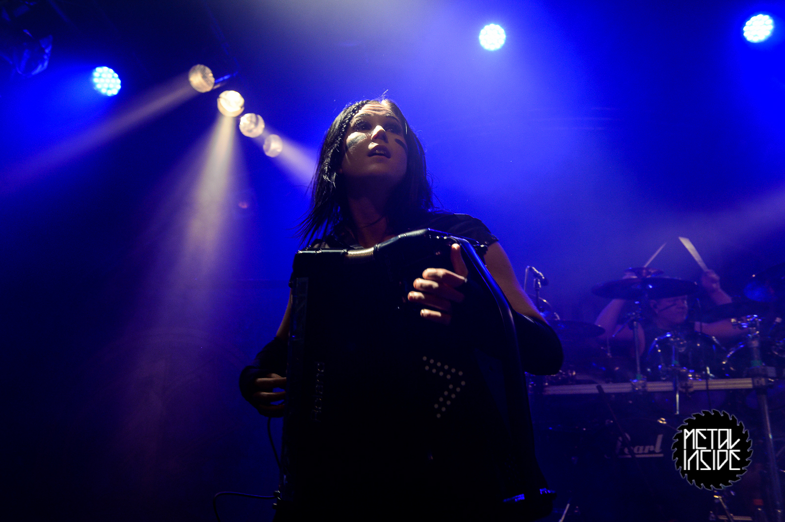 Dann ging es nach einer längeren Umbaupause mit ENSIFERUM weiter. Es ging nach dem Intro mit "From Afar" und einemLichtgewitter los. Ich habe diese Band schon sehr oft gesehen und jedes Mal bin ich von der Bühnenshow beeindruckt - egal ob auf den großen Bühnen oder den kleinen. ENSIFERUM zeigen warum sie schon so lange zu einer angesagten band gehören, sie boten eine starke Bühnenshow und spielten eine abwechslungsreiche Setlist. Die letzten drei Songs wurden dann zu einem wahren Sturm und es wurde den jetzt richtig mitgehenden Fans keine Atempause mehr gegönnt.