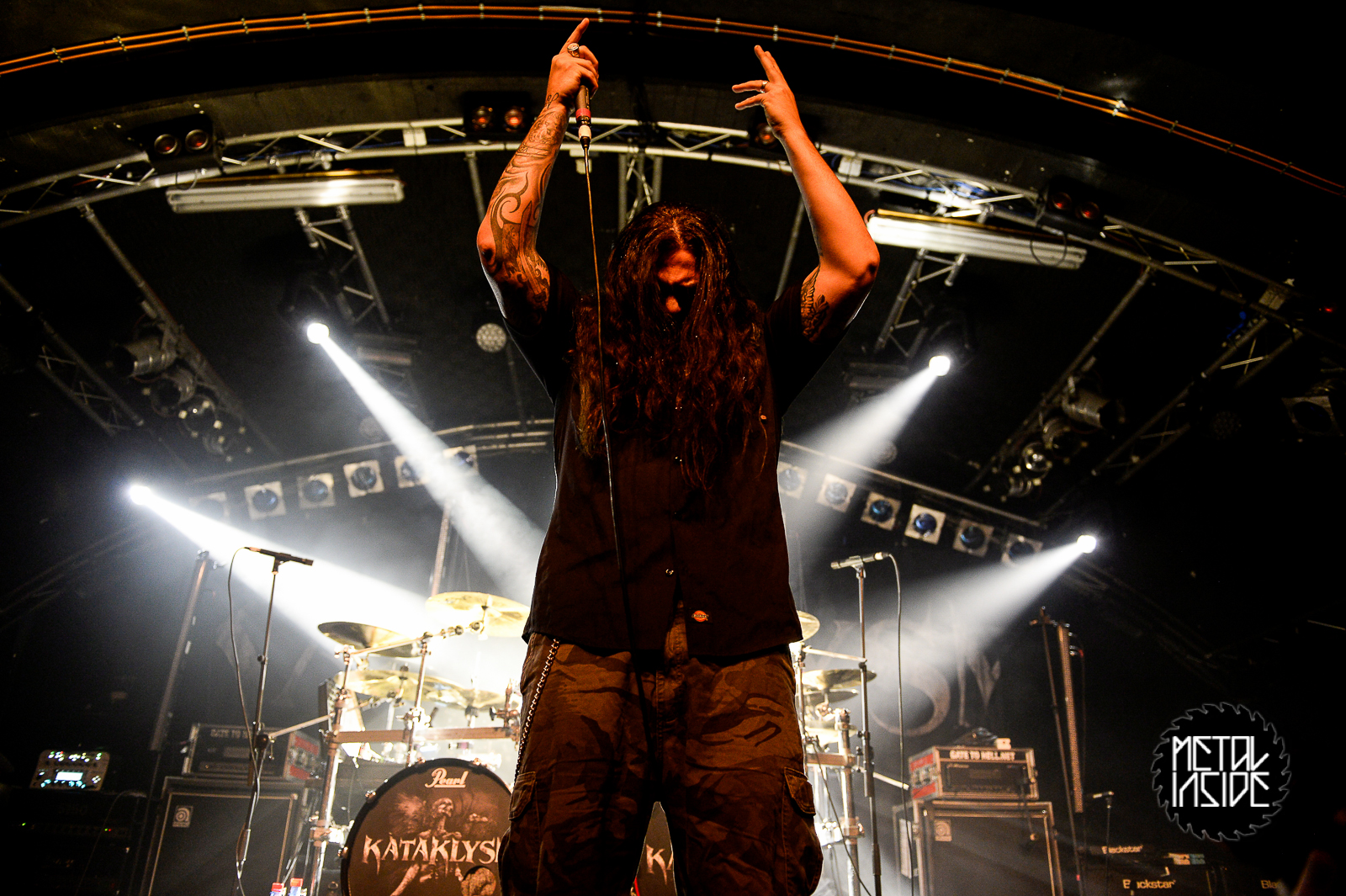 Nach einer kurzen Umbaupause ging es dann mit KATAKLYSM weiter...Die Bühne war wie schon bei UNEARTH nur zur Häfte nutzbar, weil eben auch schon das Drumkit der nachfolgenden Band mit aufgebaut war. So hatten die Jungs um Sänger Maurizio Iacono nicht so viel Platz, weil sie auch noch eigene Bühnenpodeste mit aufgebaut hatten. Ihren Sound kann mann wirklich als „Northern Hyperblast“ bezeichnen. Eine schöne Show wurde geboten und die Fans machten ordentlich mit. KATAKLYSM spielten etwas länger und boten mit "Blood in Heaven" meinen Lieblingssong.