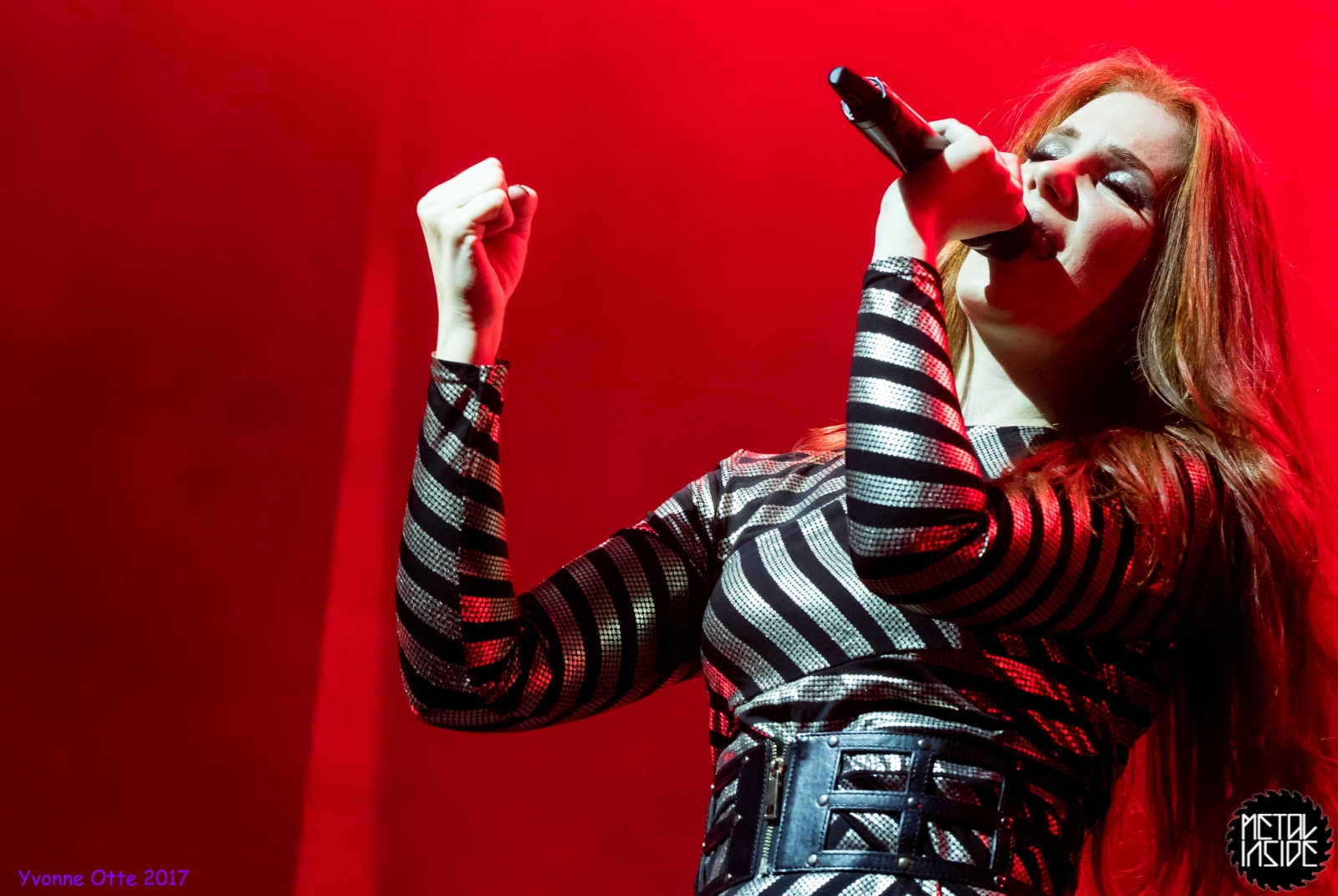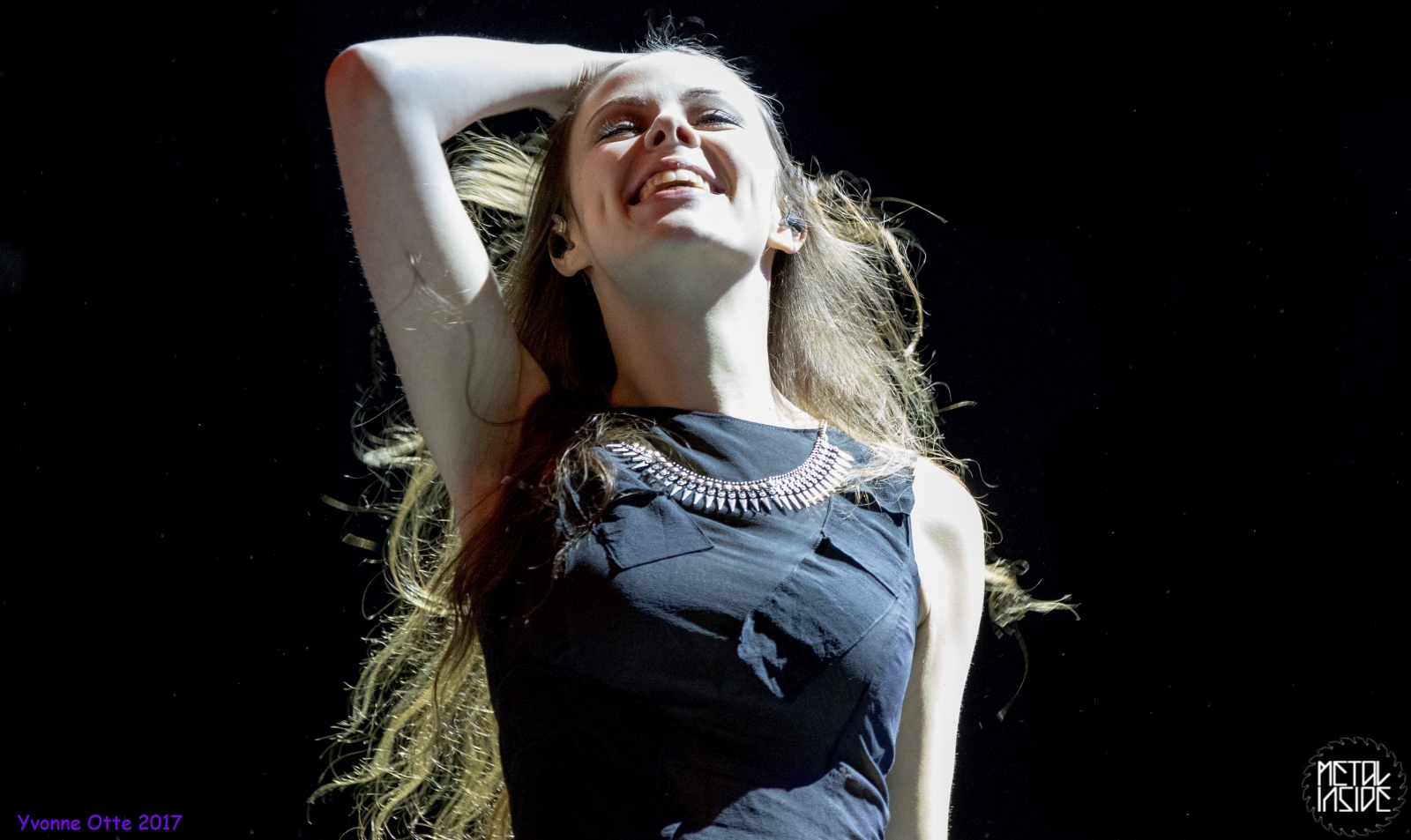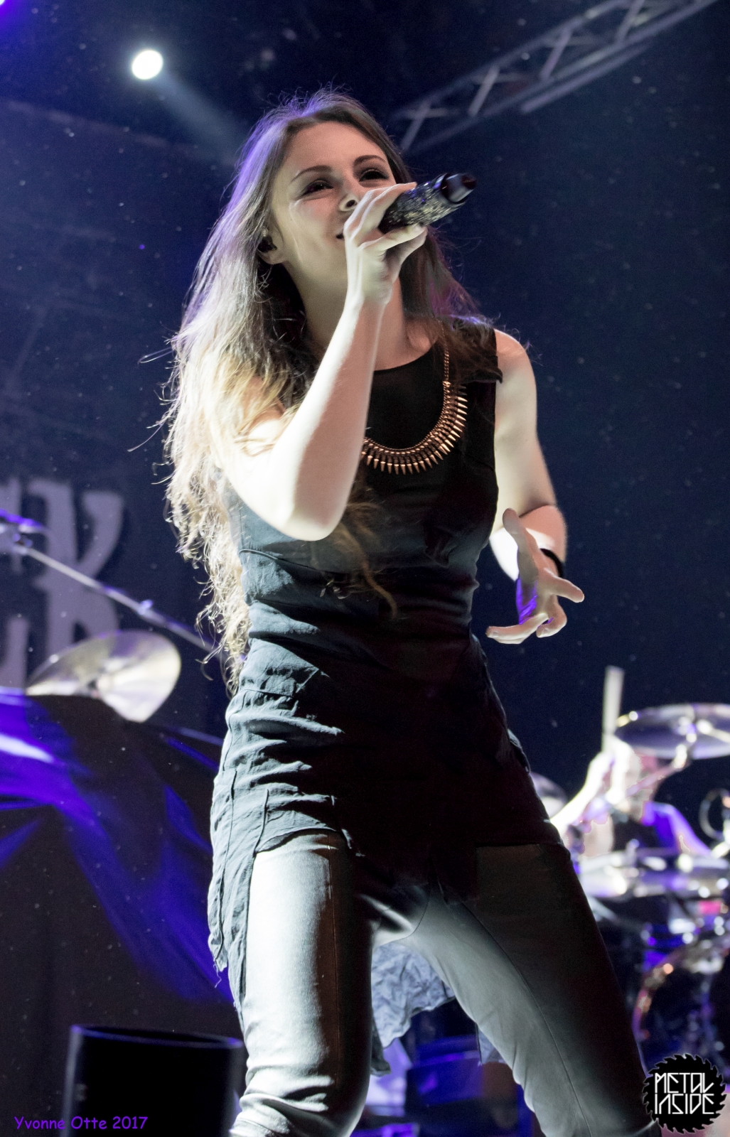 Nun ja, man mag über BEYOND THE BLACK nun denken, was man will. Man darf sich beim Konzert auch eine eigene Meinung bilden. Die erst 2014 gegründete Band um Frontfrau Jennifer Haben hat nun ihr zweites Album veröffentlicht und zeigen nun, dass sie auch live eine gute Figur machen. Das Palladium war bereits zu BEYOND THE BLACK ordentlich befüllt, was natürlich für Vorbands immer schöner ist als vor nur wenigen Menschen zu spielen. Von Anfang an war die Stimmung gut und das Publikum hat sich positiv auf die Band eingelassen. Man merkt der charismatischen Sängerin an, dass sie Spaß auf der Bühne hat und diese positive Energie geht aufs Publikum über. Es wurden auch ein paar neue Songs in der 30 Minütigen Spielzeit gespielt und insgesamt kann man sagen, die Band kam sehr gut an und man merkte auch überhaupt nicht, dass, bis auf Sängerin Jennifer Haben, alle Mitglieder erst neu zur Band gestoßen sind. Großartiger Beginn für ein noch großartigerer Abend.