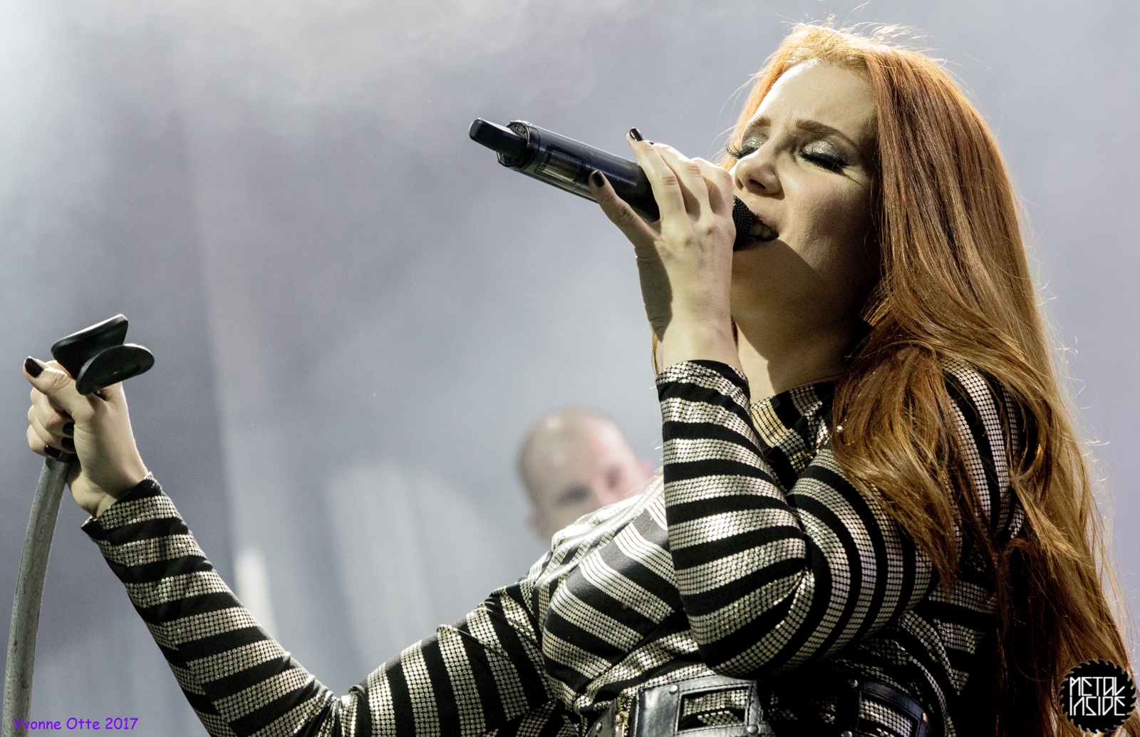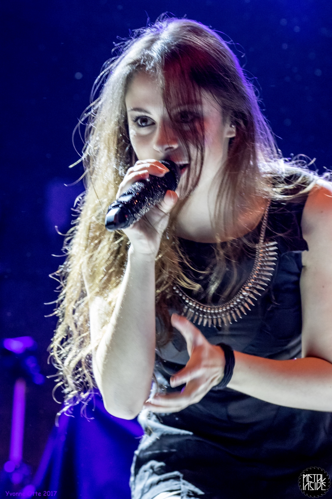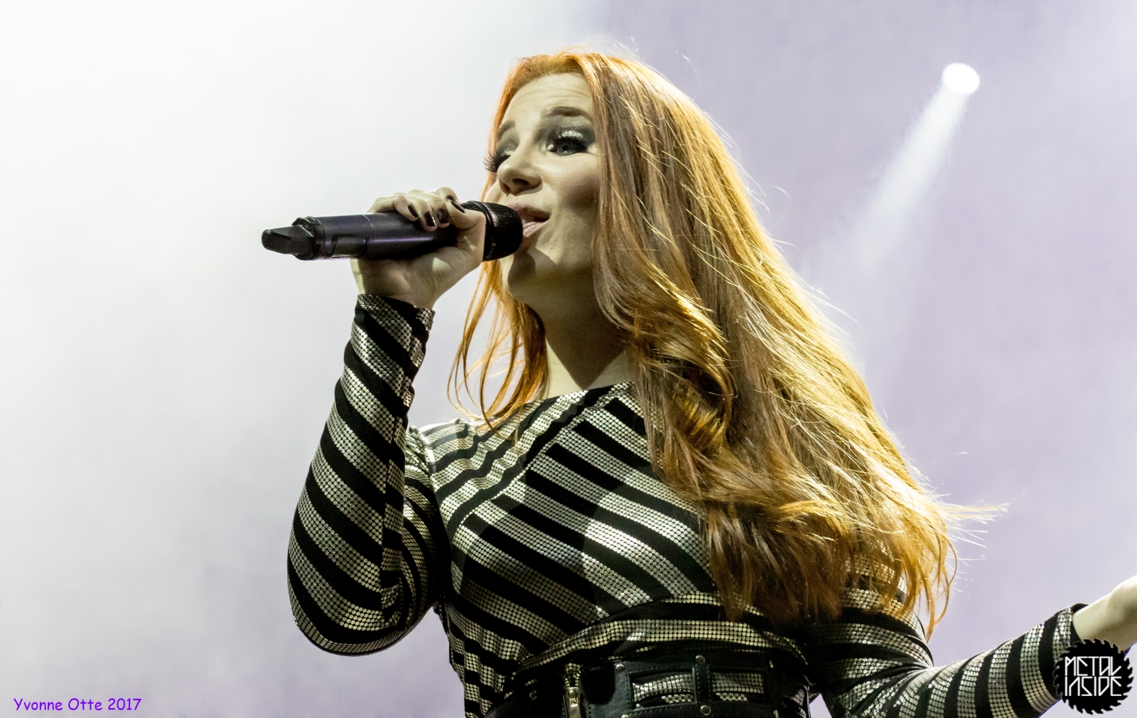 Nun ja, man mag über BEYOND THE BLACK nun denken, was man will. Man darf sich beim Konzert auch eine eigene Meinung bilden. Die erst 2014 gegründete Band um Frontfrau Jennifer Haben hat nun ihr zweites Album veröffentlicht und zeigen nun, dass sie auch live eine gute Figur machen. Das Palladium war bereits zu BEYOND THE BLACK ordentlich befüllt, was natürlich für Vorbands immer schöner ist als vor nur wenigen Menschen zu spielen. Von Anfang an war die Stimmung gut und das Publikum hat sich positiv auf die Band eingelassen. Man merkt der charismatischen Sängerin an, dass sie Spaß auf der Bühne hat und diese positive Energie geht aufs Publikum über. Es wurden auch ein paar neue Songs in der 30 Minütigen Spielzeit gespielt und insgesamt kann man sagen, die Band kam sehr gut an und man merkte auch überhaupt nicht, dass, bis auf Sängerin Jennifer Haben, alle Mitglieder erst neu zur Band gestoßen sind. Großartiger Beginn für ein noch großartigerer Abend.