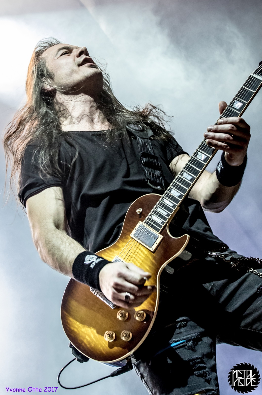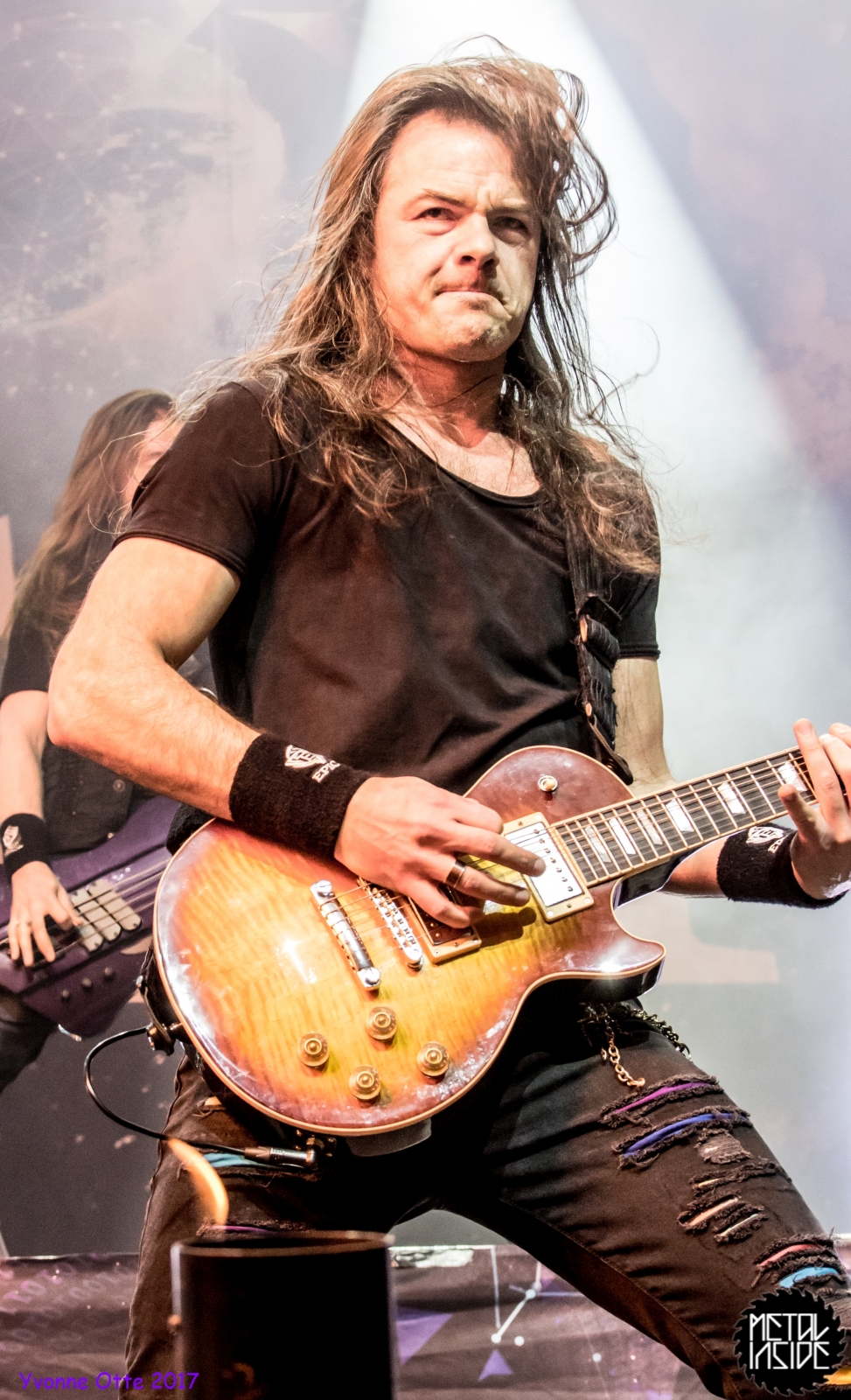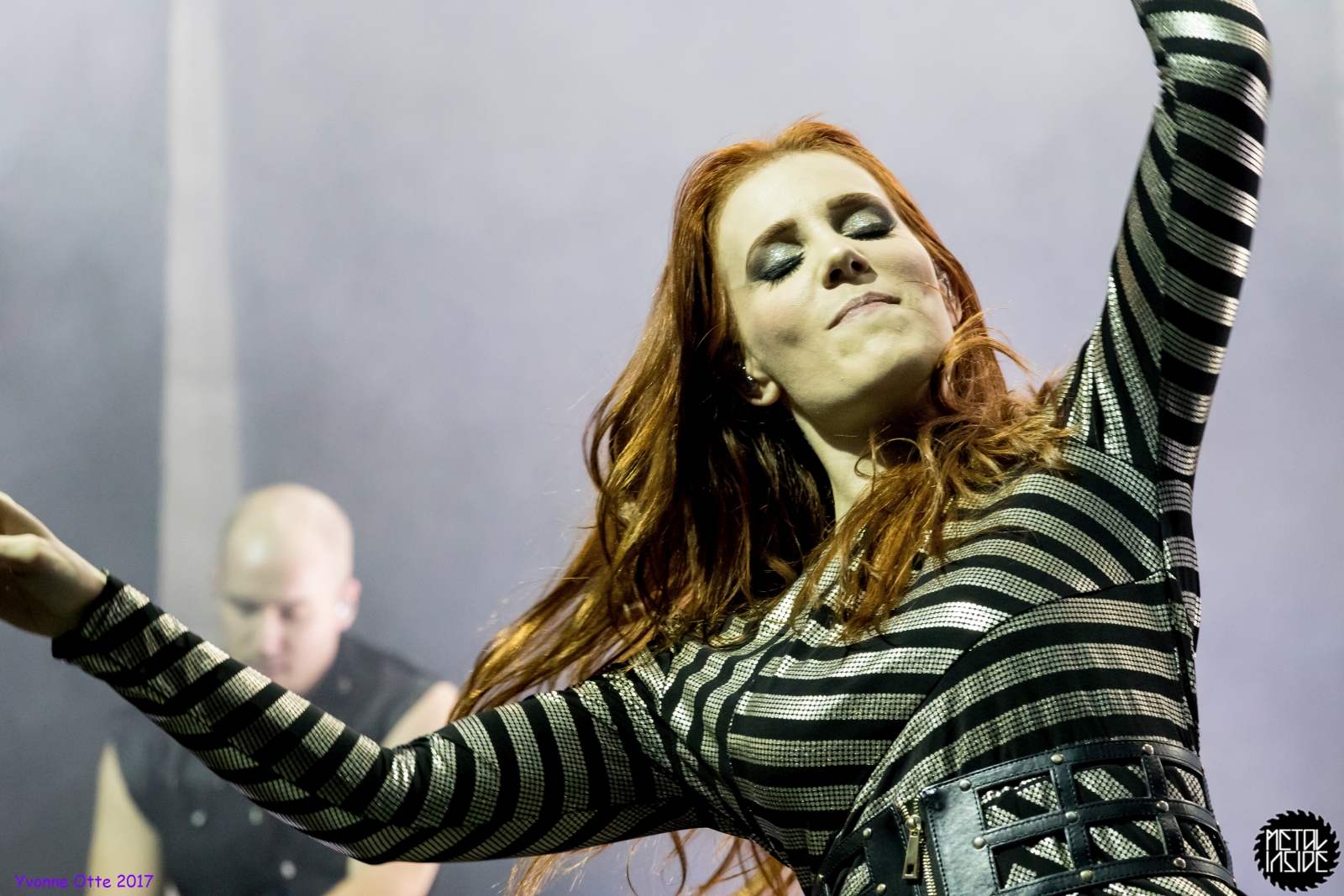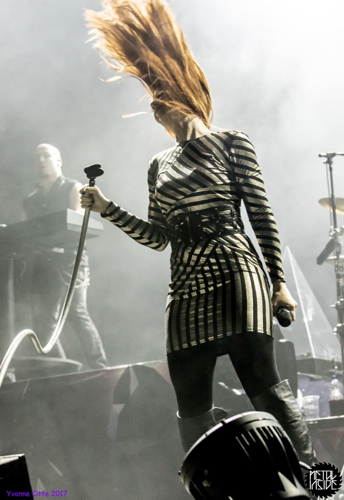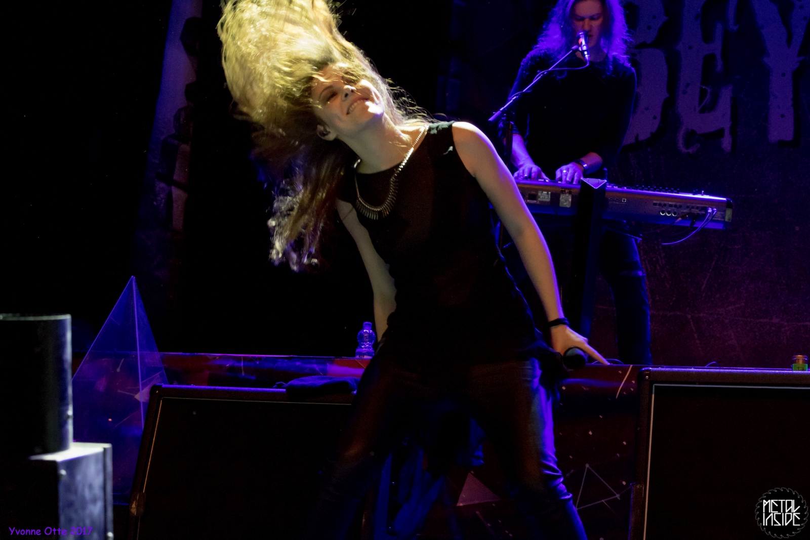 Kurzer Umbau und dann sollte EPICA ihr gut einstündiges Konzert beginnen. Der Name ist Programm, es wurde episch und sehr heiß! An Pyro-Effekten wurde an diesem Abend nicht gespart. Als Simone die Bühne betreten hat, gab es auch für die Fans kein Halten mehr. Sie Stimmung war vorher bei BEYOND THE BLACK schon ausgesprochen gut, wurde aber bei EPICA nochmal um ein vielfaches gesteigert. Die meisten Ansagen von Simone waren auf Deutsch. Auch wenn Englisch sicherlich kein Problem gewesen wäre, so fühlt man sich in der eigenen Sprache nochmal etwas persönlicher angesprochen. Nicht nur das Publikum hatte jede Menge Spaß, sondern auch EPICA auf der Bühne. Echter Hingucker war, neben Simone natürlich, der Keyboarder Coen, dessen Keyboard auf einer Art Skateboard aufgebaut wurde, womit er hin und her fahren konnte und sichtlich Spaß dabei hatte. Man musste Schmunzeln, ob er nicht ausversehen einen der anderen Bandmitglieder umfahren wird, weil er schon eine ordentliche Geschwindigkeit drauf hatte. Sehr Unterhaltsam anzusehen. Eine Band wie EPICA braucht guten Sound, sonst geht die Musik unter. Der Sound im Palladium war an diesem Abend ausgesprochen gut und so kam Simones Gesang richtig gut zur Geltung. Typisches Problem bei EPICA ist leider immer noch, dass Simone sich einen Großteil des Konzertes im hinteren Bereich der Bühne aufhält und von da singt. Das ist wirklich sehr schade, weil die Fans sie doch gerne etwas näher hätten. Die Stimmung war zwar trotzdem wirklich gut, aber vermutlich könnte man sie noch etwas steigern, wenn Simone den Kontakt vorne etwas mehr suchen würde. Nichtsdestotrotz ein wirklich tolles Konzert, was leider viel zu schnell vorbei ging.