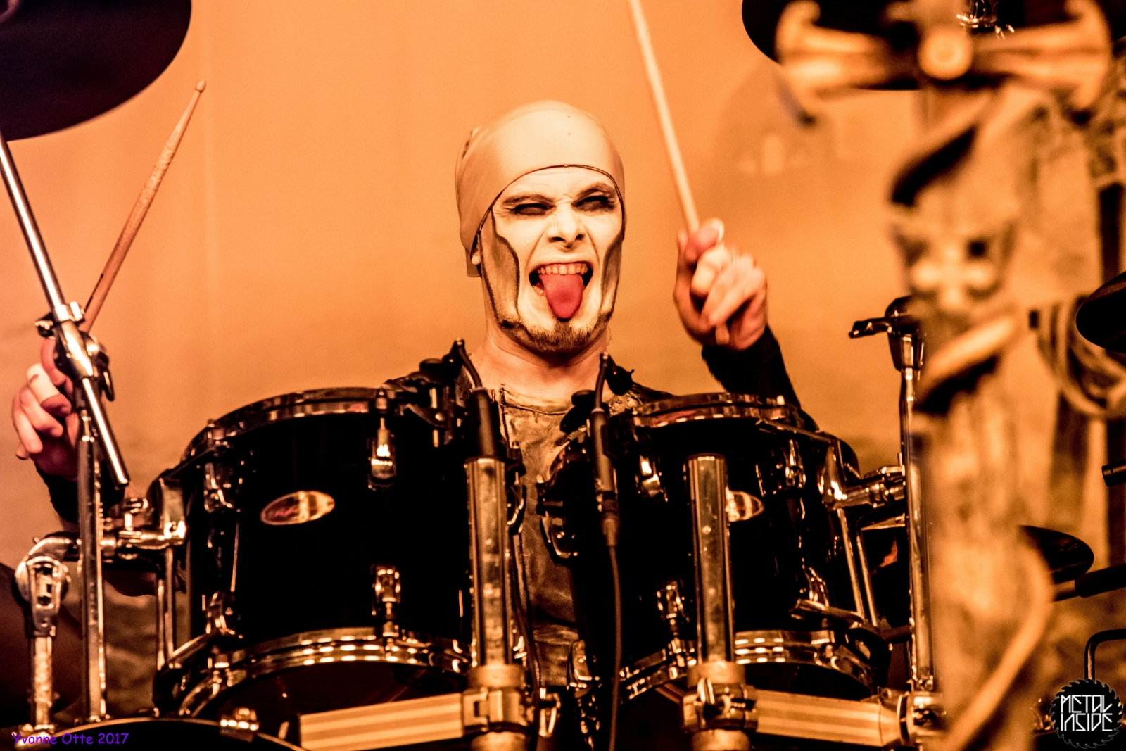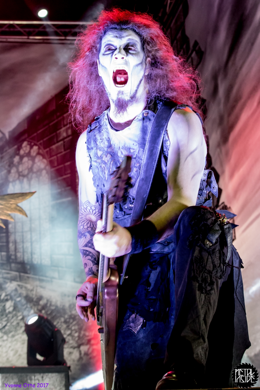 Diese Band wirkt schon sehr extrem mit ihrem Erscheinungsbild. In Kombination mit dem Bühnenbild weiß man gar nicht, wo man zuerst hingucken soll. Den Augen wird einiges geboten. Zum Bühnenbild, mit Musikern, kommt eine dazu hervorragend abgestimmte Lichtshow mit Pyro-Effekten. Das ist schon Wahnsinn.