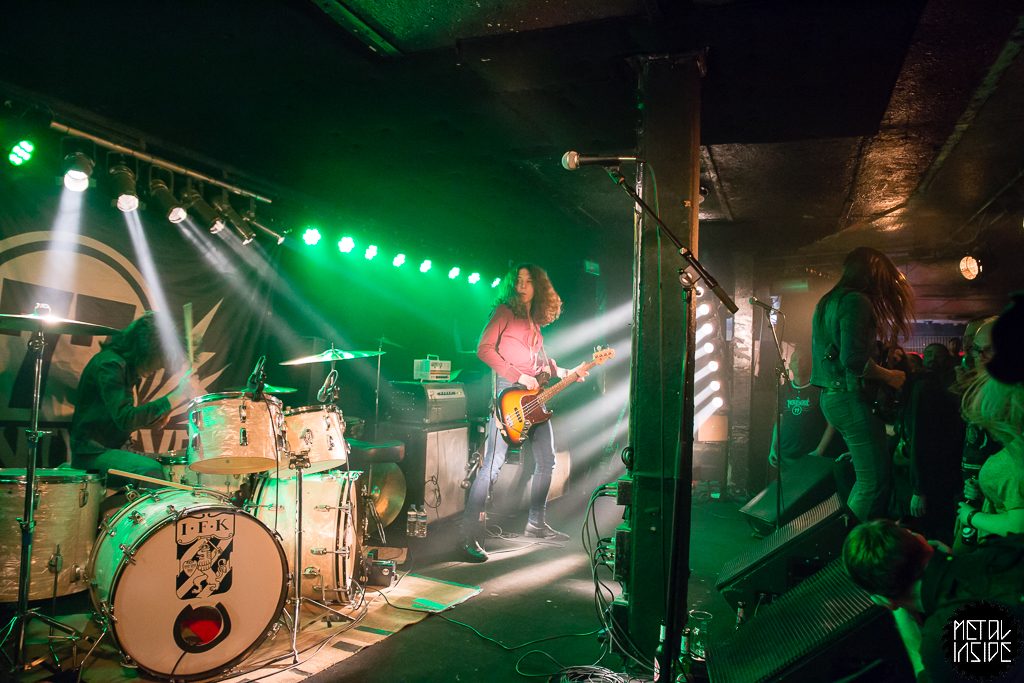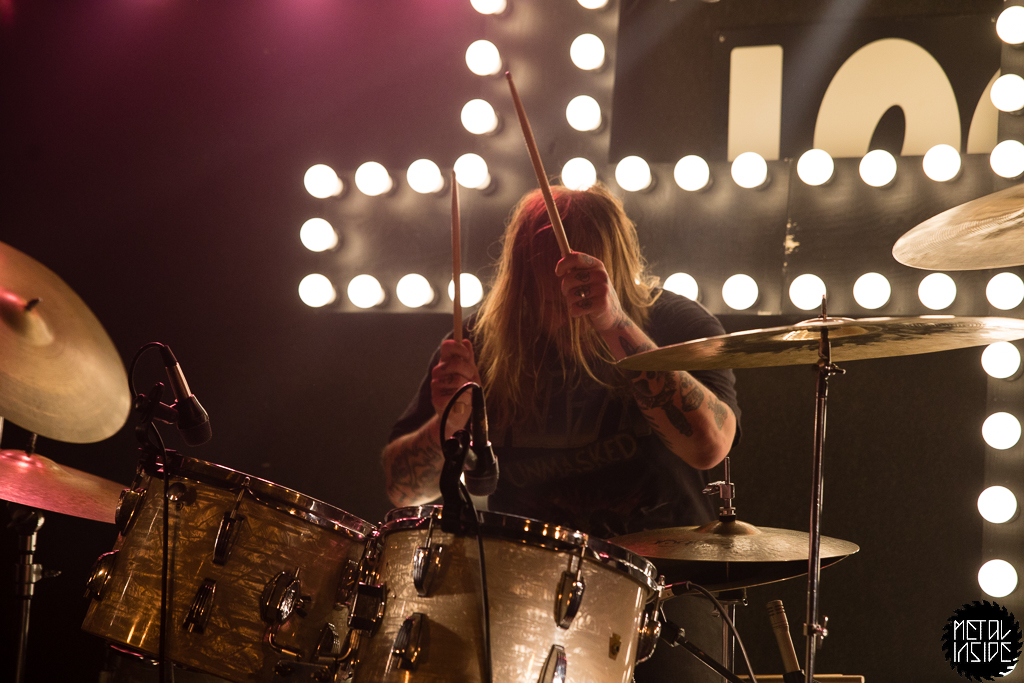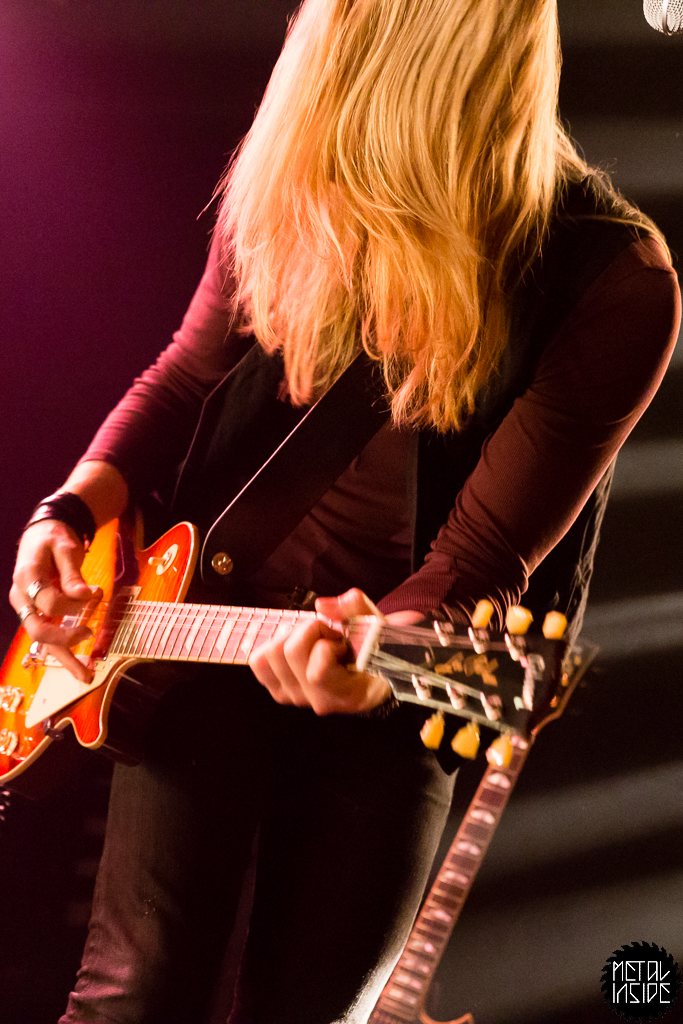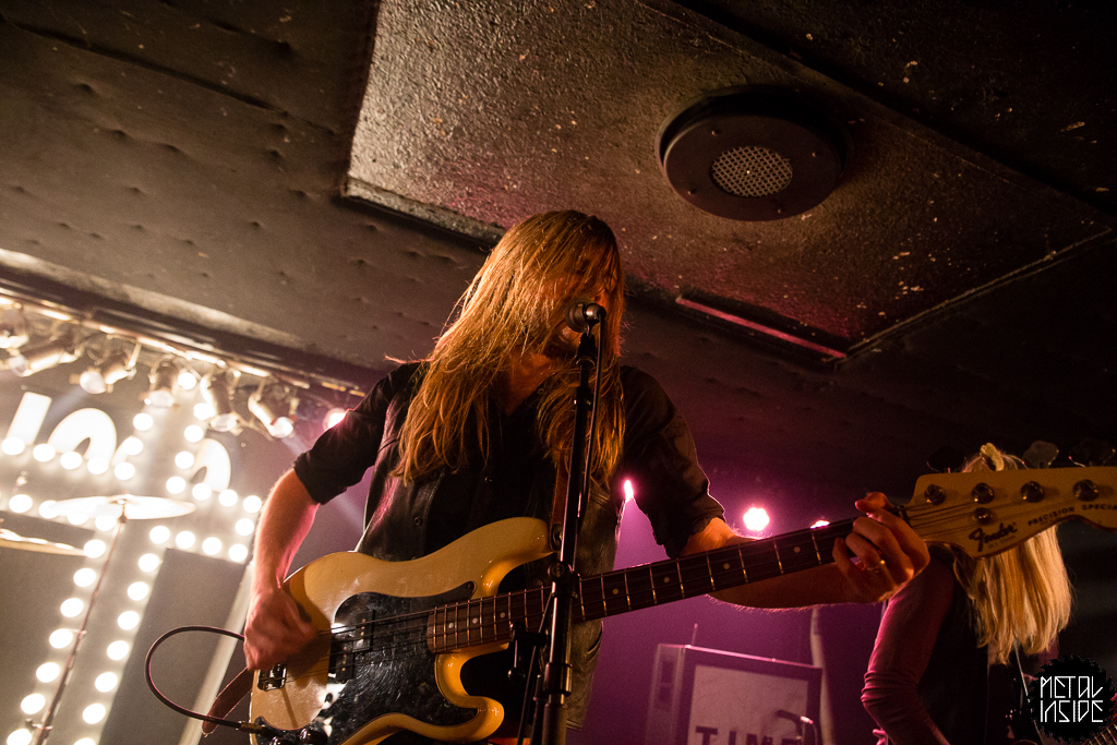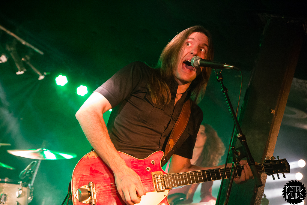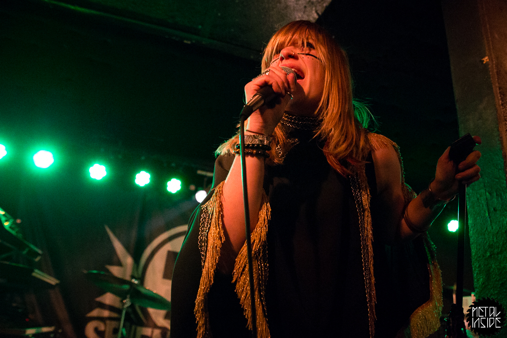 Zuerst spielten Black Mirrors. Die Belgier haben ihre frisch veröffentliche Debut EP Funky Queen im Gepäck. Marcella Di Troia verspricht mit indianischer Kriegsbemalung schon vor dem Song, den Laden mit ihrer Powershow gnadenlos auseinanderzunehmen. Und dieses Versprechen halten Black Mirrors auch ein bis der letzte Ton verklungen und der letzte Zuschauer davon überzeugt ist, dass hier absolute Vollblutmusiker am Werk sind. Wir werden mit Sicherheit noch von ihnen hören.