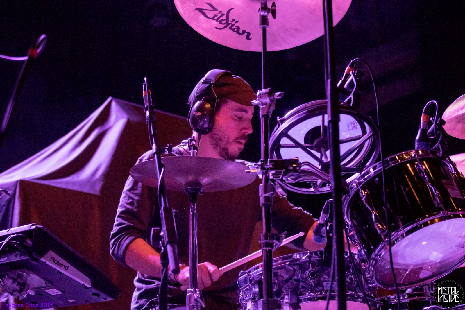 Bei ZOMBI lassen sich die Einflüsse von KRAFTWERK und TANGERINE DREAM nicht verleugnen. Psychodelische Melodien, die alle gut in Soundtracks passen würden. Auf der Bühne stehen nur ein Schlagzeug und ein Pult fürs Keyboard. Musikalisch schon sehr spezielle Musik, was man auch am Publikum erkennen konnte. Eher verhaltend wurde zugehört. Ist vielleicht aber auch nicht die Musik zum Party feiern. Der glasklare Sound im E-Werk hat die Musik jedoch nochmal um einiges aufgewertet. Natürlich ist es Geschmackssache, ob man so psychedelische, elektronische Musik mag oder nicht, aber dadurch, dass der Sound an diesem Abend wirklich hervorragend war, konnte man die Zeit bis GHOST mit ZOMBI wirklich gut aushalten. Da auch GHOST teilweise elektronische Elemente in den Liedern hat, passte der Supportact schon ganz gut dazu. ZOMBI durften 45 Minuten spielen, was schon enorm lange ist und wo eine Band sich sehr drüber freuen kann.