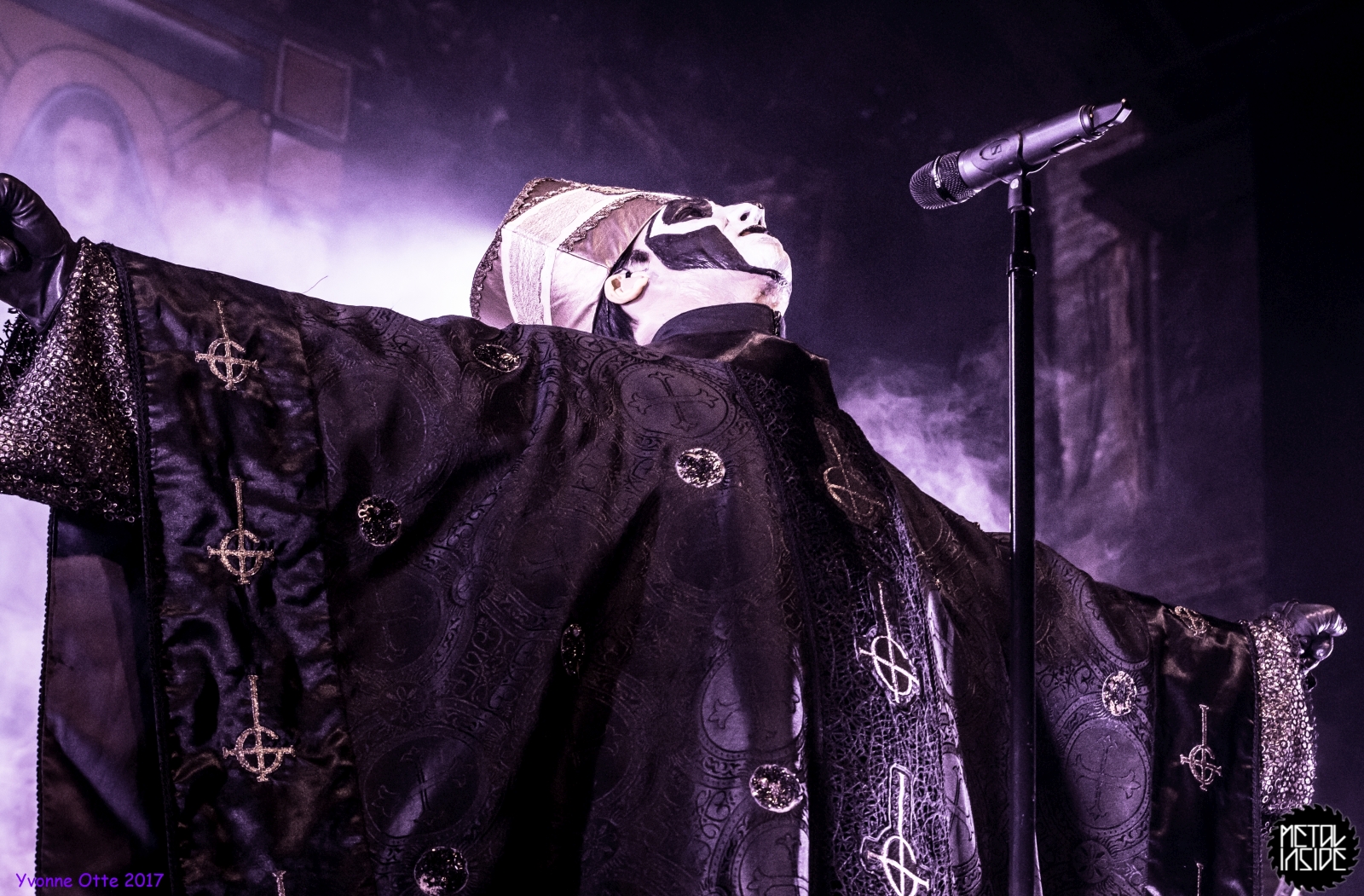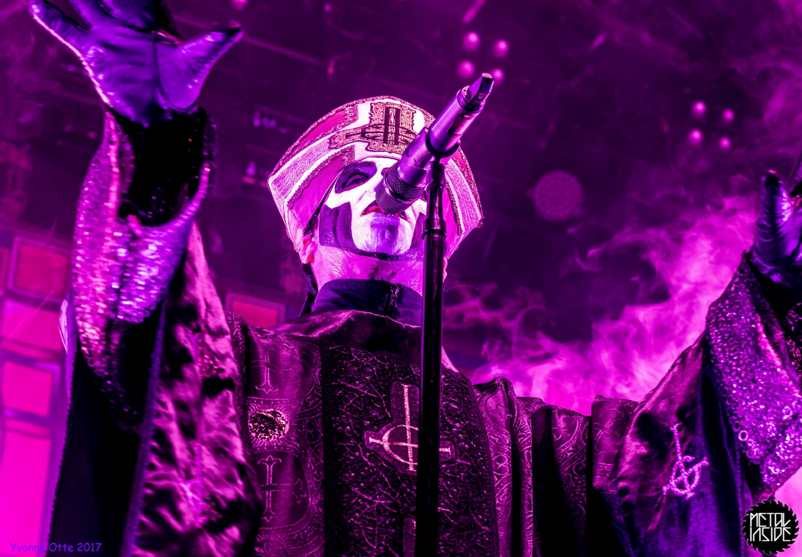 Ab kurz nach neun konnte man dann in den vorderen Reihen den Duft von Weihrauch wahrnehmen. Man sollte also schon so langsam für GHOST in Stimmung gebracht werden. Der Saal hat sich in der Zwischenzeit bis zum letzten Zentimeter gefüllt. Erstes Konzert in Deutschland der „The Popestar Tour 2017“ und dann bei vollen Haus: ein besseres Willkommensgeschenk hätte man der Band wohl nicht machen können.
