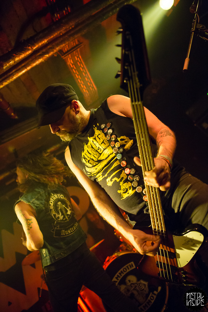 Derweil starteten Mammoth Mammoth mit einem "Here's the best location in Germany!" ihre Show. Sie waren schneller und melodischer, konnten aber gegen dieses Brett von Riff Fist nicht anstinken. Der Sänger erinnerte mich mit seiner Punk Attitüde und seinem Aussehen an The Snake aus Escape from New York und unter uns Betschwestern: Er ist eine echte Rampensau. Sei es ein Astra nicht exen, sondern ins Gesicht schütten oder Fotografen eine Bierdusche verpassen, er ließ nichts aus. Hier konnte man 30 Jahre Bühnenerfahrung (mit dieser Band 10 Jahre) bei der Arbeit sehen. Insgesamt ein feines Bandpackage und ein rundum gelungener Abend.