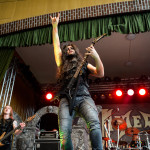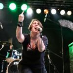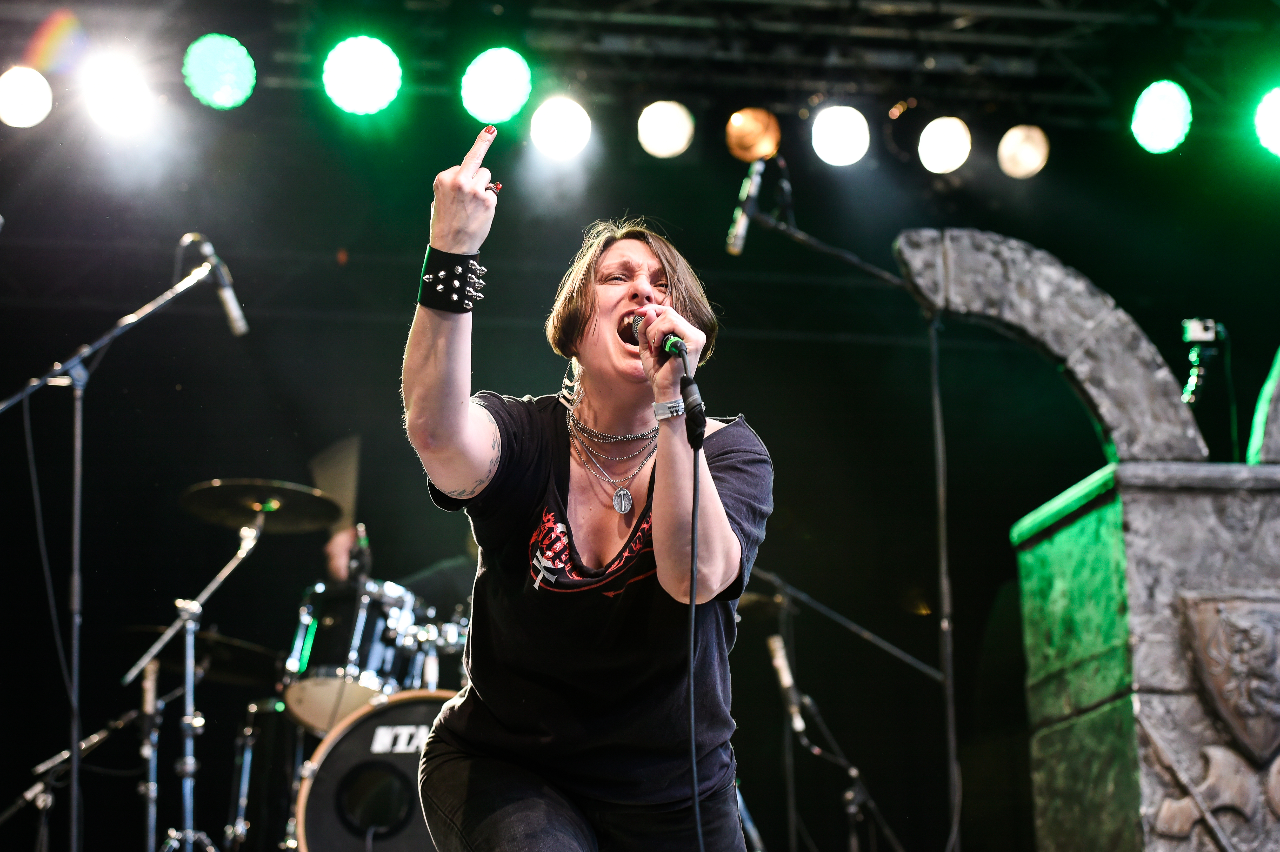 Los ging’s mit SATAN’S HALLOW. Frontfrau Mandy Martillo wirkt zwar ein wenig wie die nette Kindergärtnerin von nebenan, das tat der energiereichen Performance aber keinen Abbruch. SATAN’S HALLOW boten energischen und Up-Tempo lastigen US-Metal, welcher immer mal wieder Erinnerungen an alte HELLION oder auch rauere MALTEZE aufkommen ließ. Naturgemäß haperte es noch etwas an Charisma und Ausstrahlung, aber das liegt bei einer Band, die gerade erst ihr Debutalbum (genau am KIT Wochenende) veröffentlicht hat, in der Natur der Sache. Alles in allem eine runde Sache und ein gelungener Auftakt.