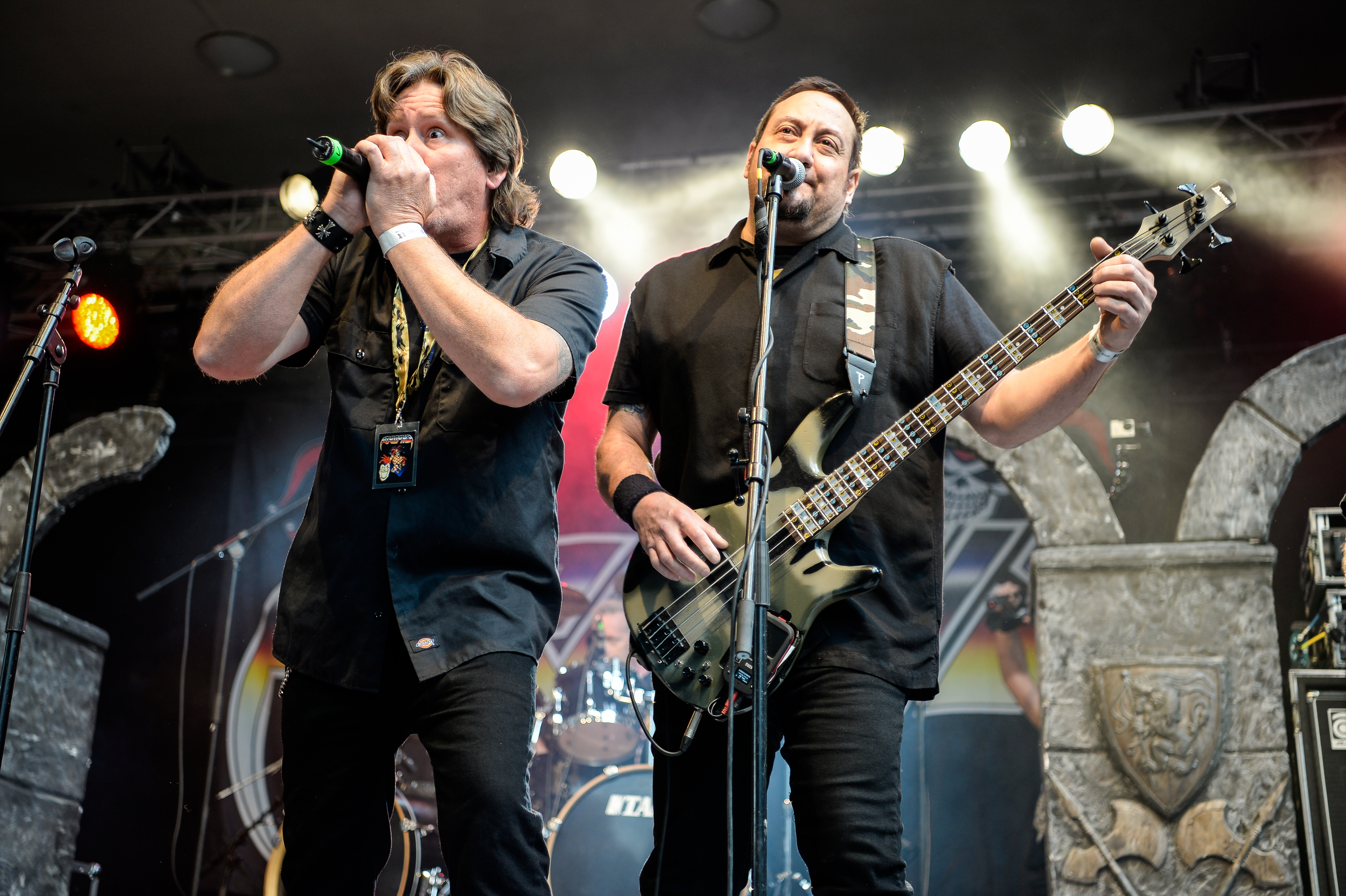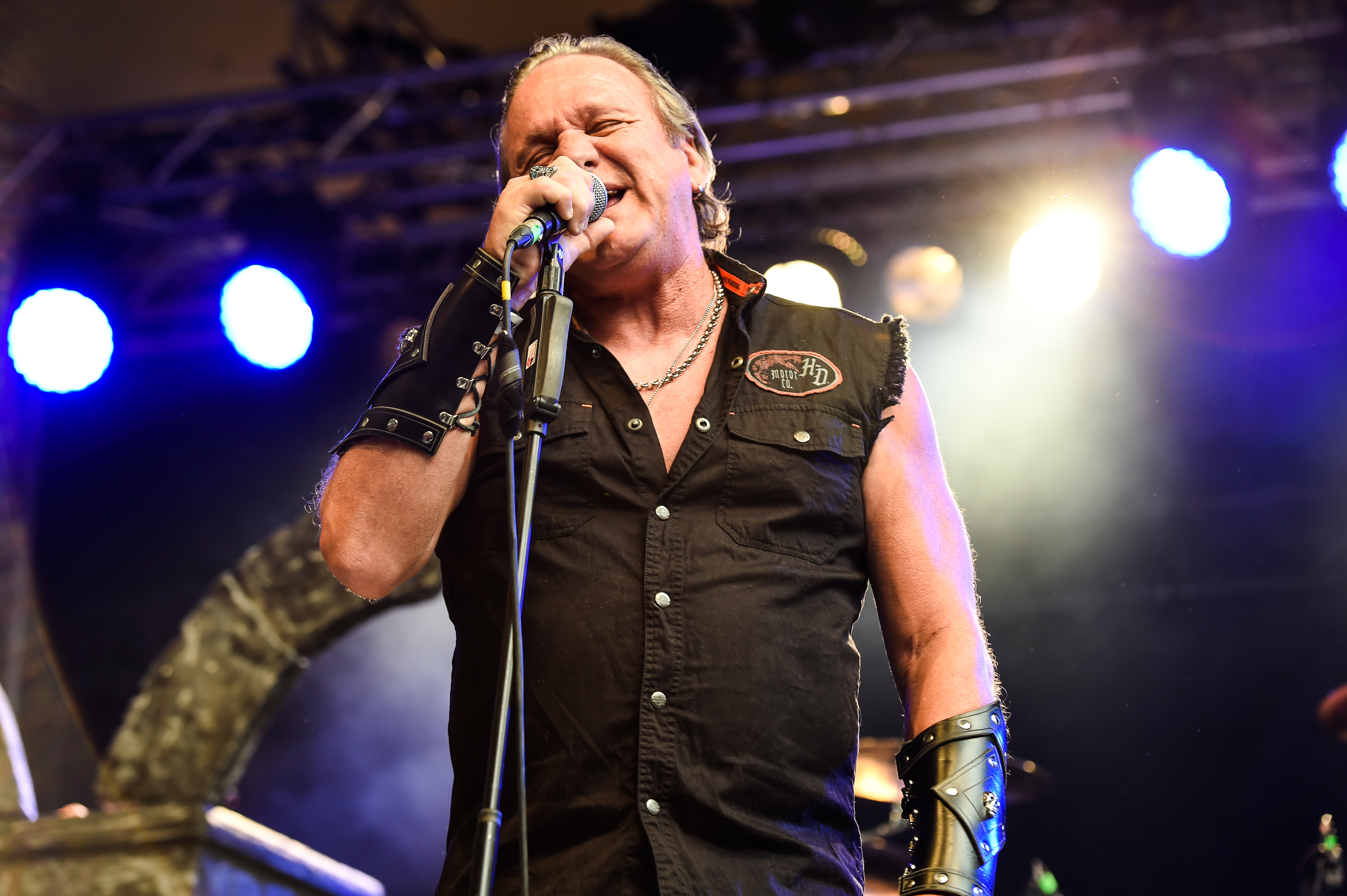 Dass MEDIEVAL STEEL gerne als „Ein-Song-Band“ wahrgenommen werden, „verdanken“ sie ihrer Megahymne gleichen Namens. Dass man ihnen damit aber nicht gerecht wird, haben sie spätestens 2014 mit dem bockstarken Comeback-Album „Dark Castle“ bewiesen. Und auch heute ließen sich MEDIEVAL STEEL nicht auf diesen einen Song reduzieren. Denn auch alte Semiclassics wie „Battle Beyond The Stars“ oder „To Kill A King“ und neuere Nummern wie „The Killing Fields“ oder „The Man Who Saw Tomorrow“ sind einfach arschcoole US-Metal Pretiosen, die zum KIT passen wie der Arsch auf den Eimer. Und als zum Schluss dann doch noch der EINE Song kam, stand die Halle sowieso Kopf. Was soll ich sagen? Nächster geiler Auftritt auf dem KIT XX.