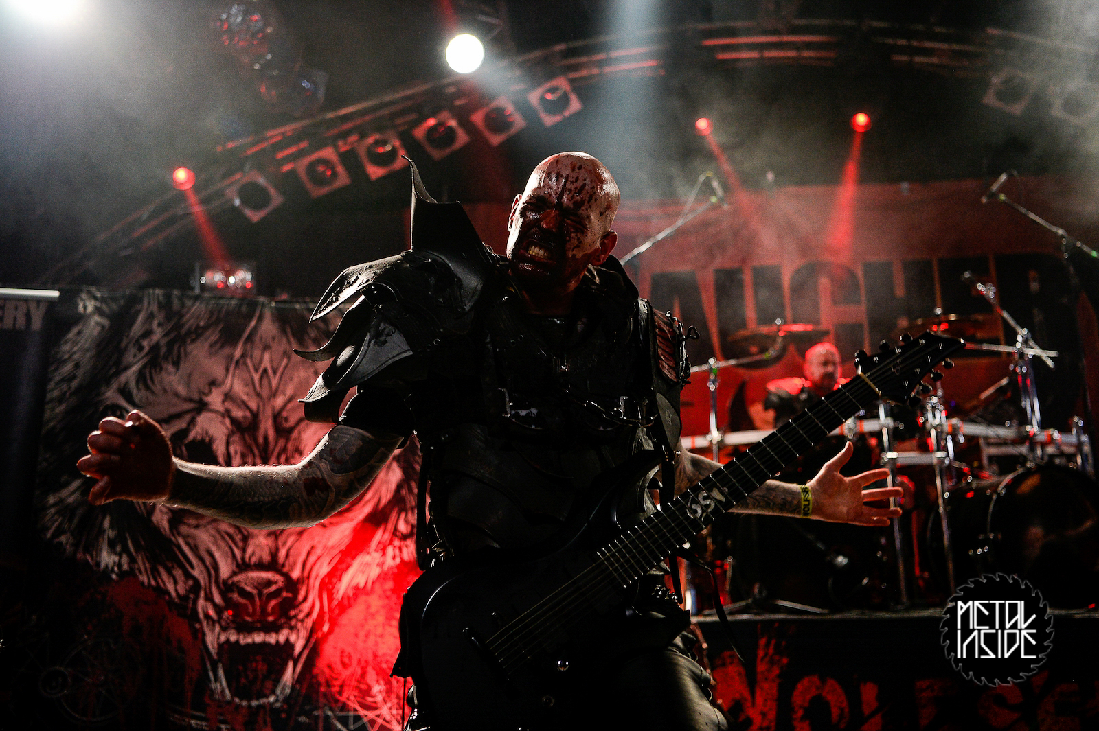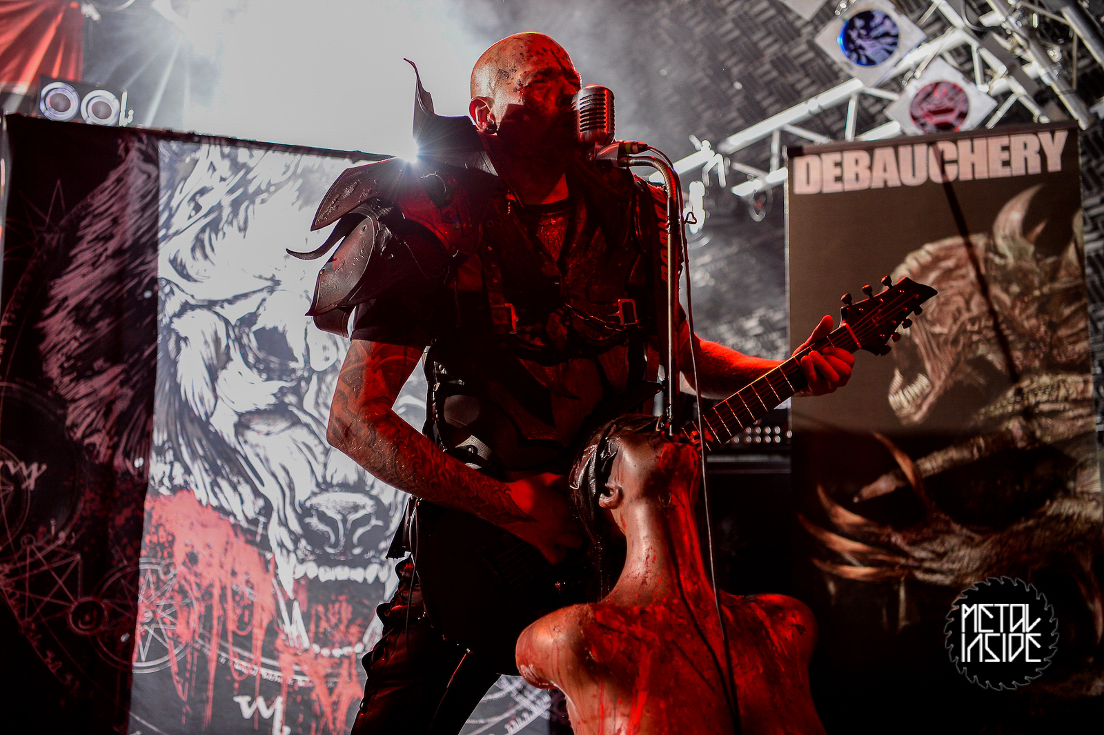 Eine wieder recht kurze Umbaupause und mit DEBAUCHERY wurde es jetzt so richtig Düster (mit einem großen D!). Der Dreier aus Stuttgart überzeugte nicht nur wegen des Bühnenbilds, sondern auch mit dem in Kunstblut getränkten Outfits. Sänger Blood God zeigte eine tolle Show und ließ seine starke Stimme auf jedem Abschnitt der Bühne präsent sein, wobei ihm drei Mikroständer halfe. Ein schönes Death Metal/ Death´n'Roll Konzert.