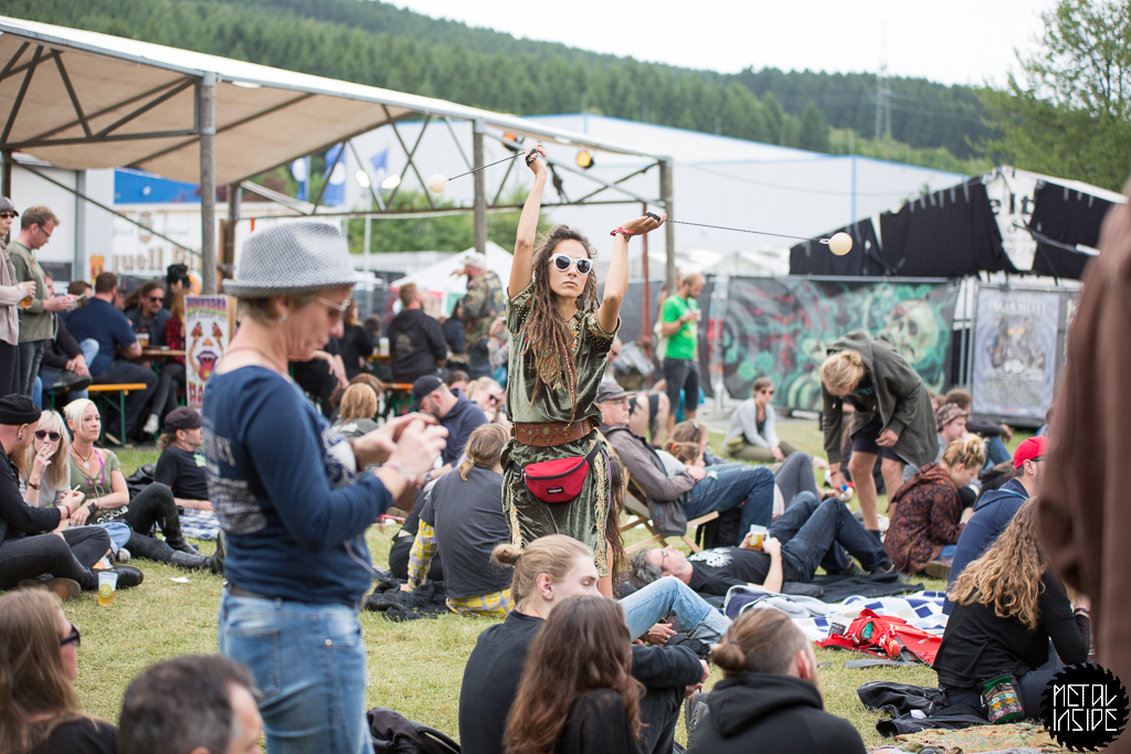 Tag 3 begann mit SATIVA ROOT [AT]. Ich persönlich liebe ja hart tiefer gestellte Saiteninstrumente. Wenn das Ganze dann noch instrumental dargereicht wird, fängt das Herz an zu hüpfen und so schmeckte der echt leckere Apfelmuscrepe (3,50€) einfach nochmal so gut.