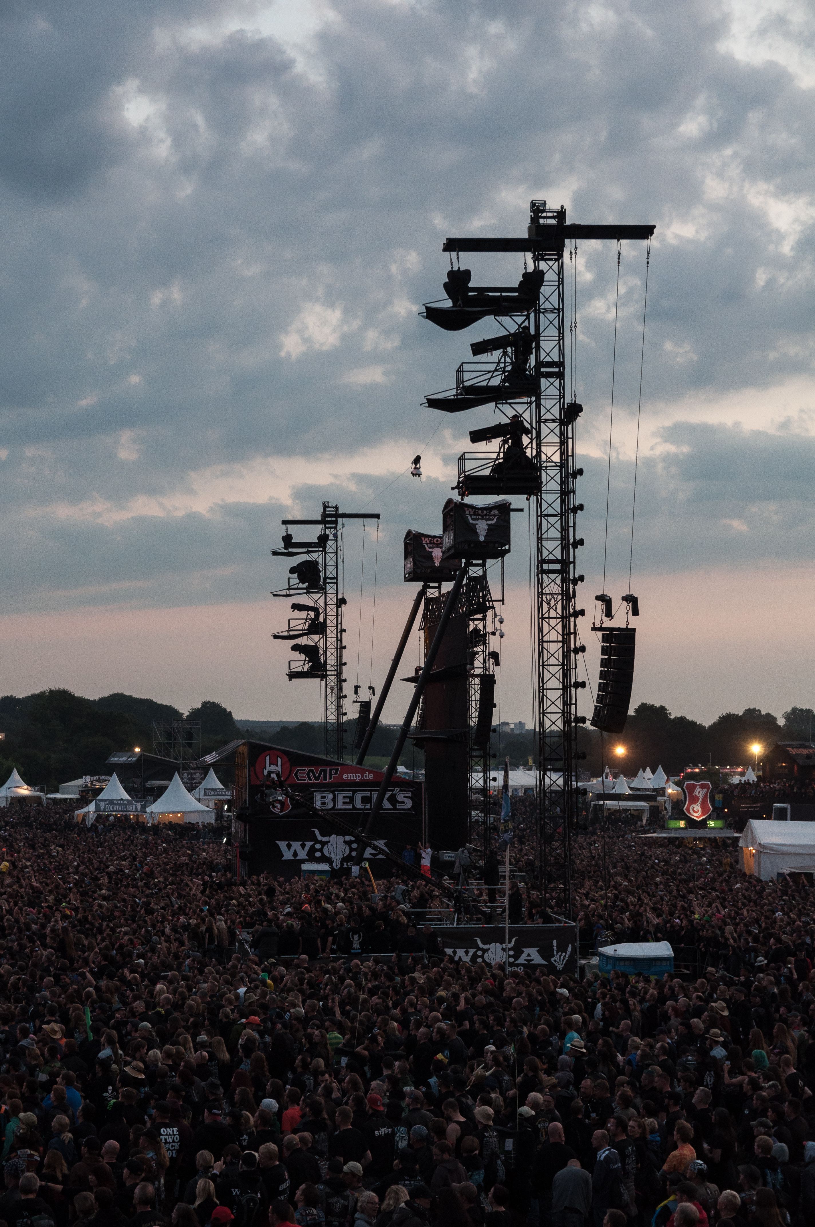Donnerstag nachmittag, 16:45, grauer Himmel, die Frisur hält. Nach dem obligatorischen SKYLINE Auftritt und AC/DC's Intro „It's A Long Way To The Top“ entert die NwoBHM Legende SAXON mit „Battering Ram“ die Black Stage. Verständlich, dass Songs des aktuellen Albums promoted werden müssen, aber ein anderer Einstieg wäre sicher stimmungsfördernder gewesen. Ok, mit „Motorcycle Man“ wird deutlich nachgelegt und Sänger Biff kann sich wagen zu fragen: „Good to be back in Wacken, how are you feeling?“ Er weiss es, denn das 1979 gegründet Metal Flagschiff rockt bereits zum neunten Mal den heiligen Acker. Und SAXON können Wacken. So ist „Sacrifice“ der einzige neue Song. Alte Diamanten wie „20.000 Feet“, „The Power And The Glory“ und „Solid Ball Of Rock“ bringen die Fans zum Springen. Vor „The Eagle Has Landed“ wird ein mit Kamera bestückter Ballon in die Stratosphäre geschickt, der eindrucksvolle Bilder des Geländes auf die Bildschirme schickt. Der nächste Song „Heavy Metal Thunder“ wird Lemmy gewidmet. MOTÖRHEAD nahmen SAXON 1980 als Vorband auf Tour und seitdem verband die Bands eine enge Freundschaft. Auch bei Lemmy's letzten Konzerten teilte er die Bühne mit Biff & Co. Mit den Alltime-Hymnen „Denim And Leather“ and „Princess Of The Night“ endet ein weiterer denkwürdiger Wacken-Auftritt der Sachsen. (J)