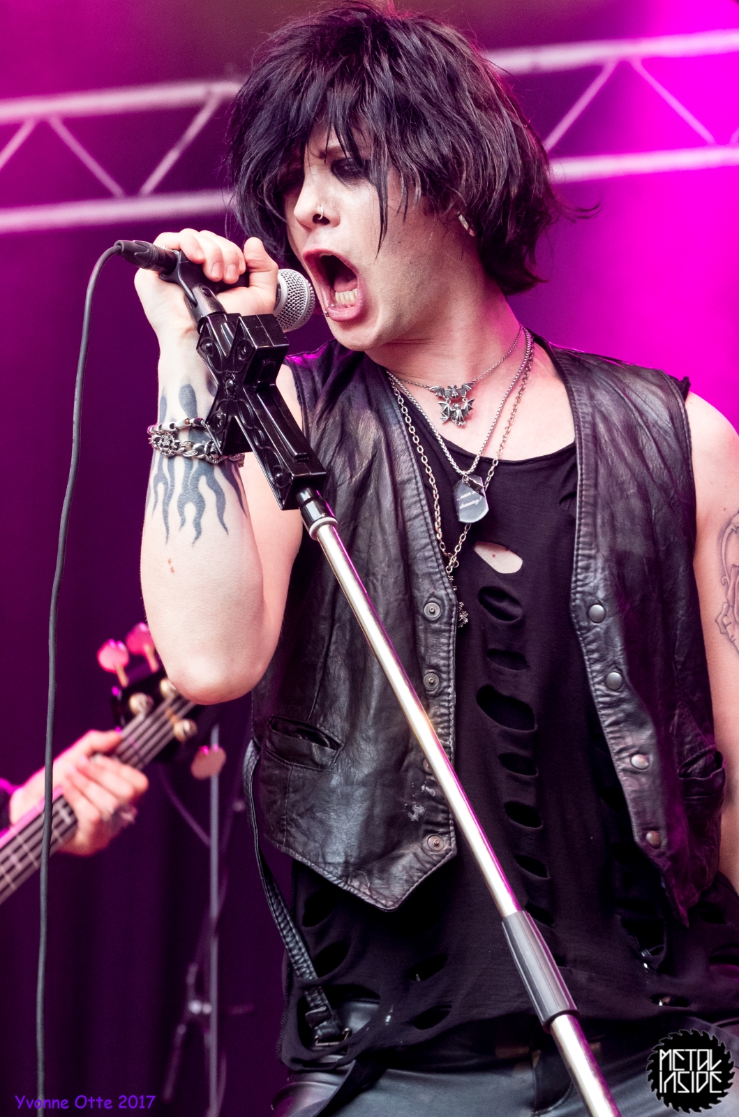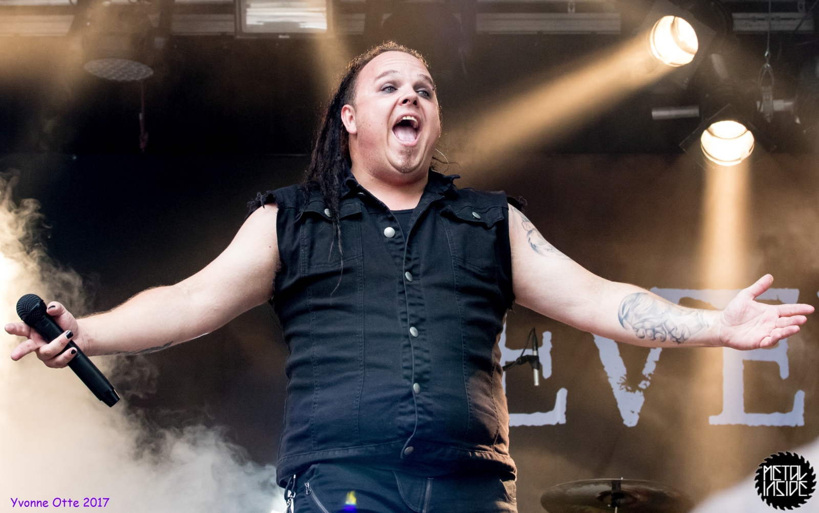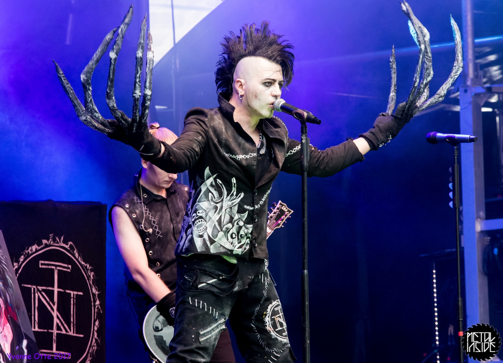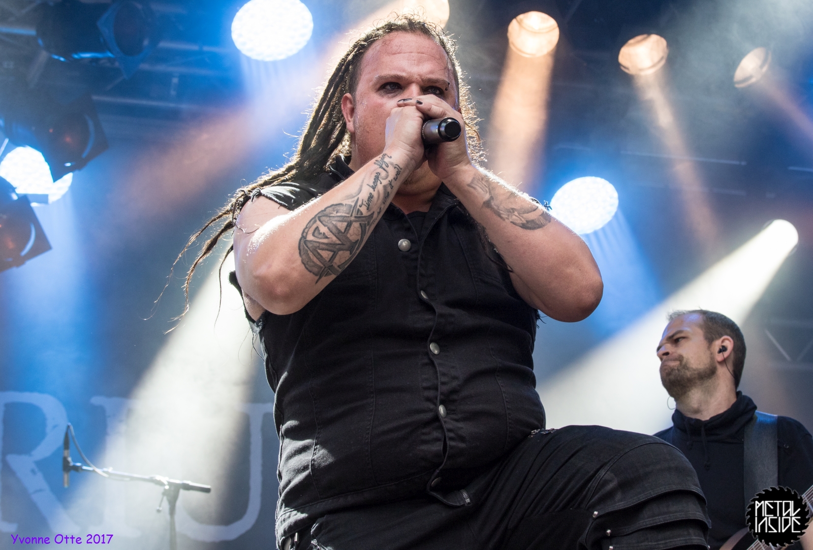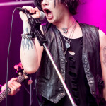 Wer bereits zu NOX INTERNA Vorort war, hat dann einiges zu sehen bekommen. NOX INTERNA bietet eine Bühnenshow, die man gesehen haben muss, denn in Worte zu fassen, was man da zu sehen bekommt, würde der Show nicht gerecht werden. Großes Kino jedenfalls und ein echter Stimmungsmacher. Hier muss man auch sagen, dass diese Band sicherlich von der Stimmung her besser nach ERDLING platziert gewesen wäre, weil bei NOX INTERNA das Publikum kein Halten mehr kannte und bei ERDLING eher leider etwas verhaltener war. Klar, andere Art von Musik und schlechteres Wetter, dennoch war ERDLING ein wenig Stimmungskiller und es fiel sichtlich schwer Stimmung aufzubauen. Neue Deutsche Härte ist nicht für jeden etwas. Aber ist ja das Schöne an Festivals: Man lernt viel neue Musik kennen, nicht jedes muss man mögen, aber allen Künstlern sollte man Respekt für deren Arbeit entgegen bringen. Manche funktionieren von der Stimmung her einfach besser auf Festivals, andere haben dann die Megastimmung bei den eigenen Konzerten. Von der Stimmung her hier hätte es einfach besser gepasst, wenn NOX INTERNA und ERDLING getauscht hätte, denn mit VLAD IN TEARS kamen wieder Stimmungskanonen auf die Bühne. Leider fing es hier stärker an zu regnen, umso sympathischer, dass Sänger Kris sich in den Regen gestellt hat: geteiltes Leid ist halbes Leid! Einen neuen Gitarristen hatten VLAD IN TEARS auch mit dabei, der aber sehr gut von den Fans aufgenommen wurde und sichtlich Spaß beim Auftritt hatte.