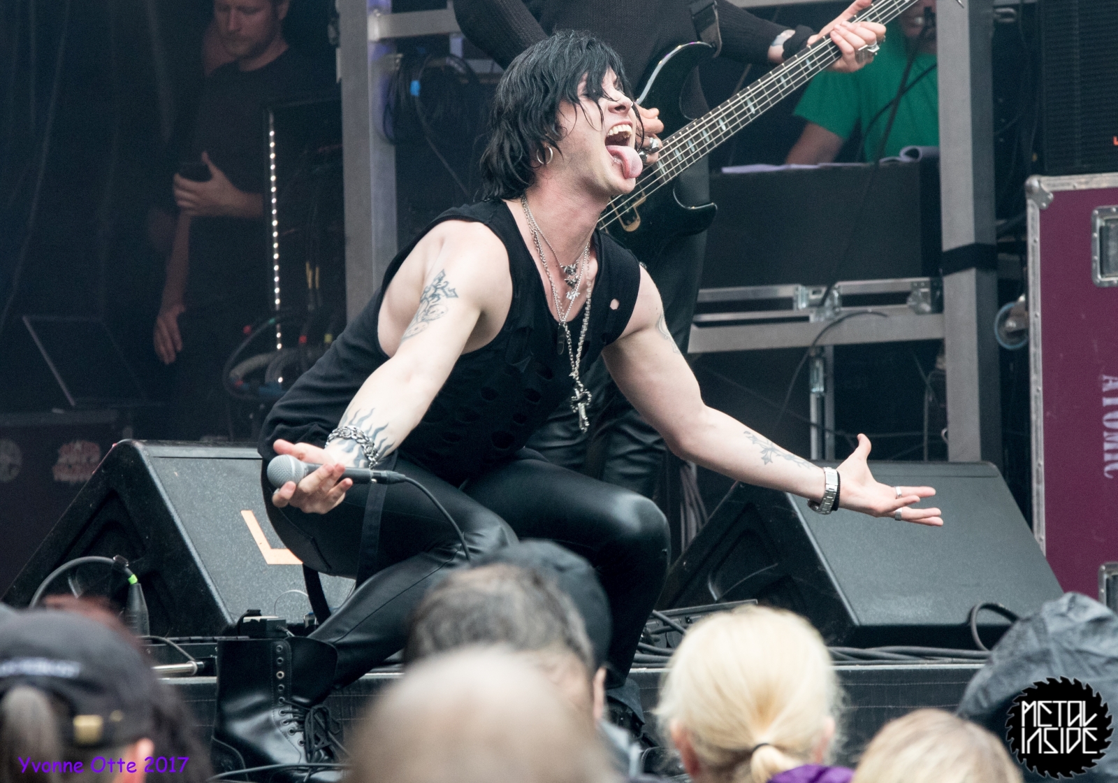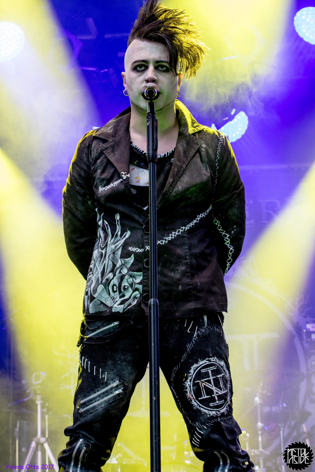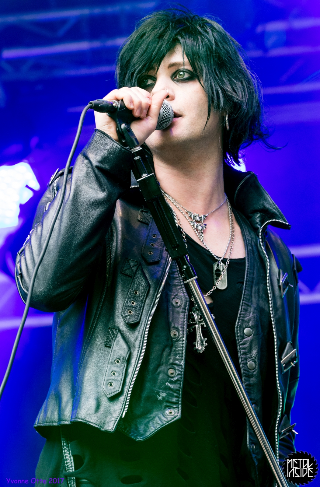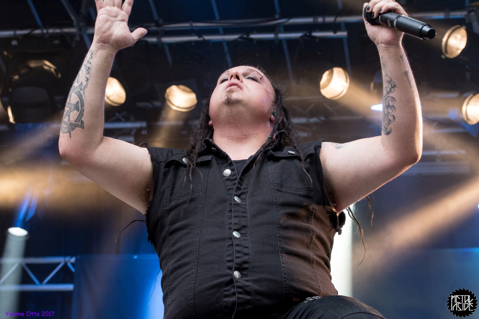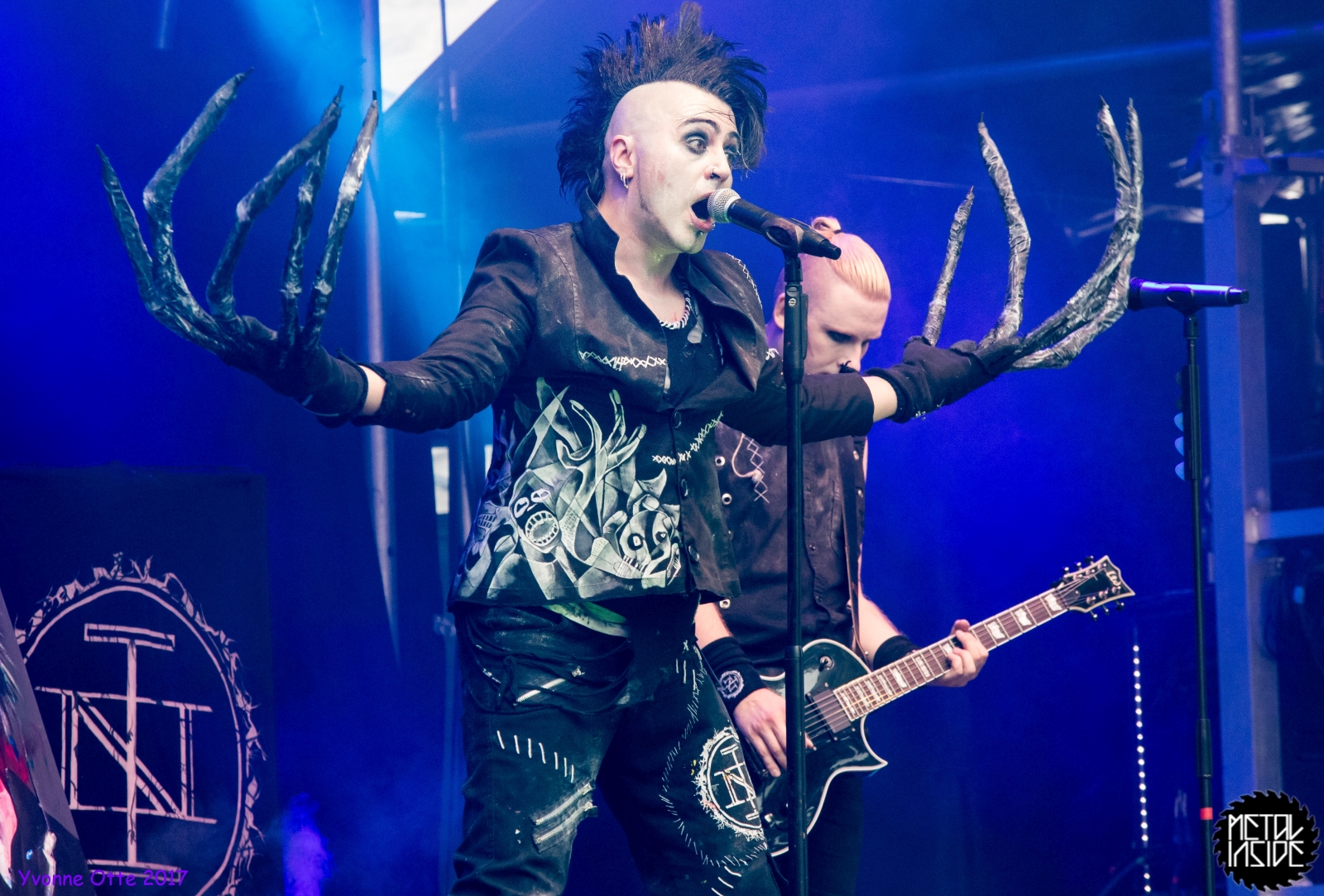 Wer bereits zu NOX INTERNA Vorort war, hat dann einiges zu sehen bekommen. NOX INTERNA bietet eine Bühnenshow, die man gesehen haben muss, denn in Worte zu fassen, was man da zu sehen bekommt, würde der Show nicht gerecht werden. Großes Kino jedenfalls und ein echter Stimmungsmacher. Hier muss man auch sagen, dass diese Band sicherlich von der Stimmung her besser nach ERDLING platziert gewesen wäre, weil bei NOX INTERNA das Publikum kein Halten mehr kannte und bei ERDLING eher leider etwas verhaltener war. Klar, andere Art von Musik und schlechteres Wetter, dennoch war ERDLING ein wenig Stimmungskiller und es fiel sichtlich schwer Stimmung aufzubauen. Neue Deutsche Härte ist nicht für jeden etwas. Aber ist ja das Schöne an Festivals: Man lernt viel neue Musik kennen, nicht jedes muss man mögen, aber allen Künstlern sollte man Respekt für deren Arbeit entgegen bringen. Manche funktionieren von der Stimmung her einfach besser auf Festivals, andere haben dann die Megastimmung bei den eigenen Konzerten. Von der Stimmung her hier hätte es einfach besser gepasst, wenn NOX INTERNA und ERDLING getauscht hätte, denn mit VLAD IN TEARS kamen wieder Stimmungskanonen auf die Bühne. Leider fing es hier stärker an zu regnen, umso sympathischer, dass Sänger Kris sich in den Regen gestellt hat: geteiltes Leid ist halbes Leid! Einen neuen Gitarristen hatten VLAD IN TEARS auch mit dabei, der aber sehr gut von den Fans aufgenommen wurde und sichtlich Spaß beim Auftritt hatte.