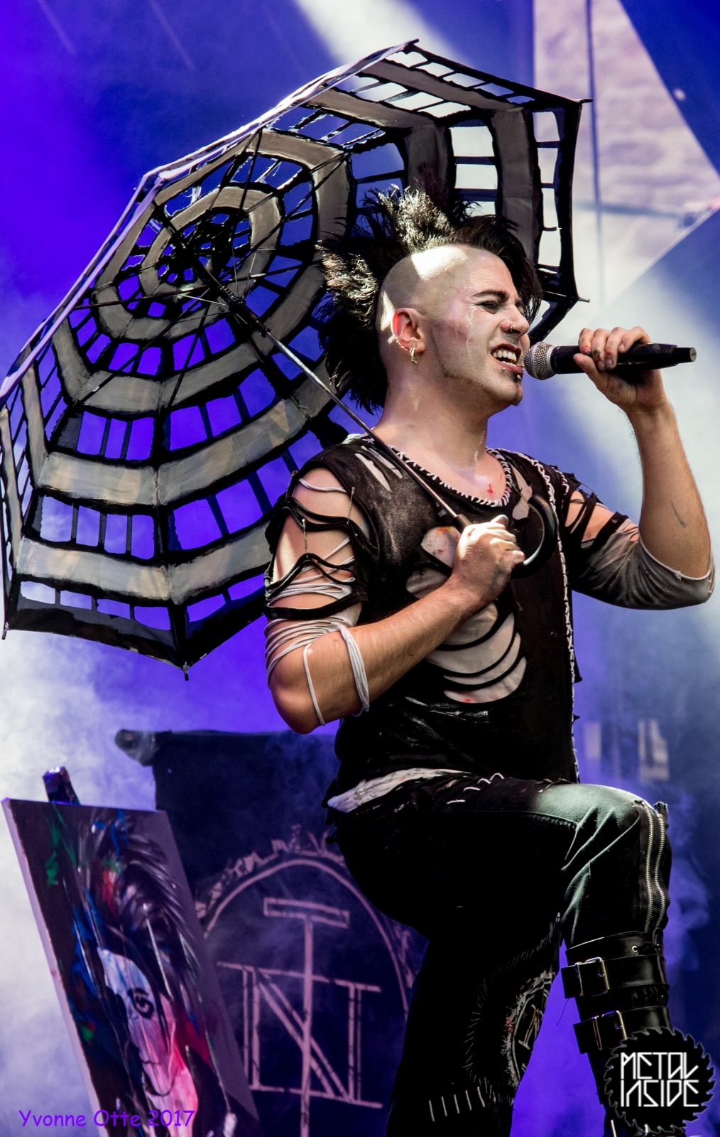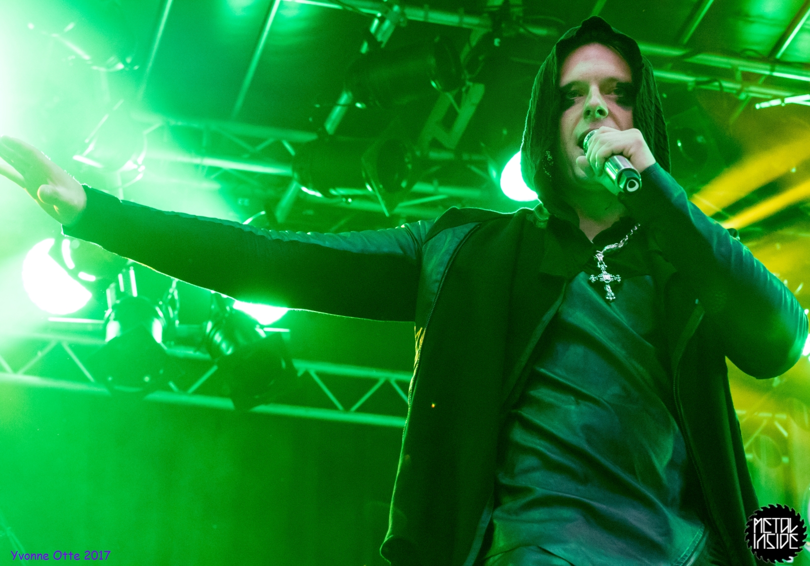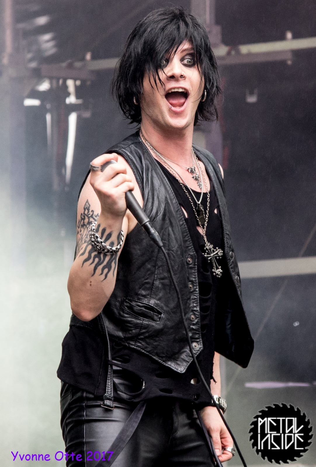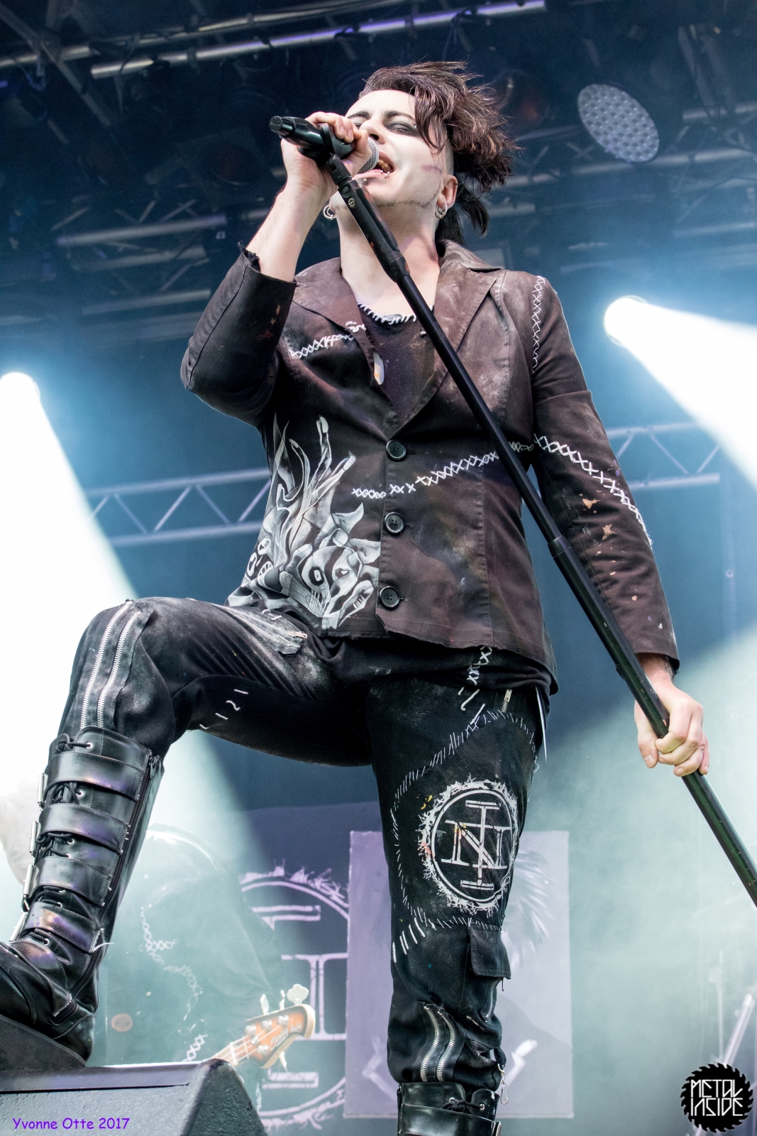 Wer bereits zu NOX INTERNA Vorort war, hat dann einiges zu sehen bekommen. NOX INTERNA bietet eine Bühnenshow, die man gesehen haben muss, denn in Worte zu fassen, was man da zu sehen bekommt, würde der Show nicht gerecht werden. Großes Kino jedenfalls und ein echter Stimmungsmacher. Hier muss man auch sagen, dass diese Band sicherlich von der Stimmung her besser nach ERDLING platziert gewesen wäre, weil bei NOX INTERNA das Publikum kein Halten mehr kannte und bei ERDLING eher leider etwas verhaltener war. Klar, andere Art von Musik und schlechteres Wetter, dennoch war ERDLING ein wenig Stimmungskiller und es fiel sichtlich schwer Stimmung aufzubauen. Neue Deutsche Härte ist nicht für jeden etwas. Aber ist ja das Schöne an Festivals: Man lernt viel neue Musik kennen, nicht jedes muss man mögen, aber allen Künstlern sollte man Respekt für deren Arbeit entgegen bringen. Manche funktionieren von der Stimmung her einfach besser auf Festivals, andere haben dann die Megastimmung bei den eigenen Konzerten. Von der Stimmung her hier hätte es einfach besser gepasst, wenn NOX INTERNA und ERDLING getauscht hätte, denn mit VLAD IN TEARS kamen wieder Stimmungskanonen auf die Bühne. Leider fing es hier stärker an zu regnen, umso sympathischer, dass Sänger Kris sich in den Regen gestellt hat: geteiltes Leid ist halbes Leid! Einen neuen Gitarristen hatten VLAD IN TEARS auch mit dabei, der aber sehr gut von den Fans aufgenommen wurde und sichtlich Spaß beim Auftritt hatte.