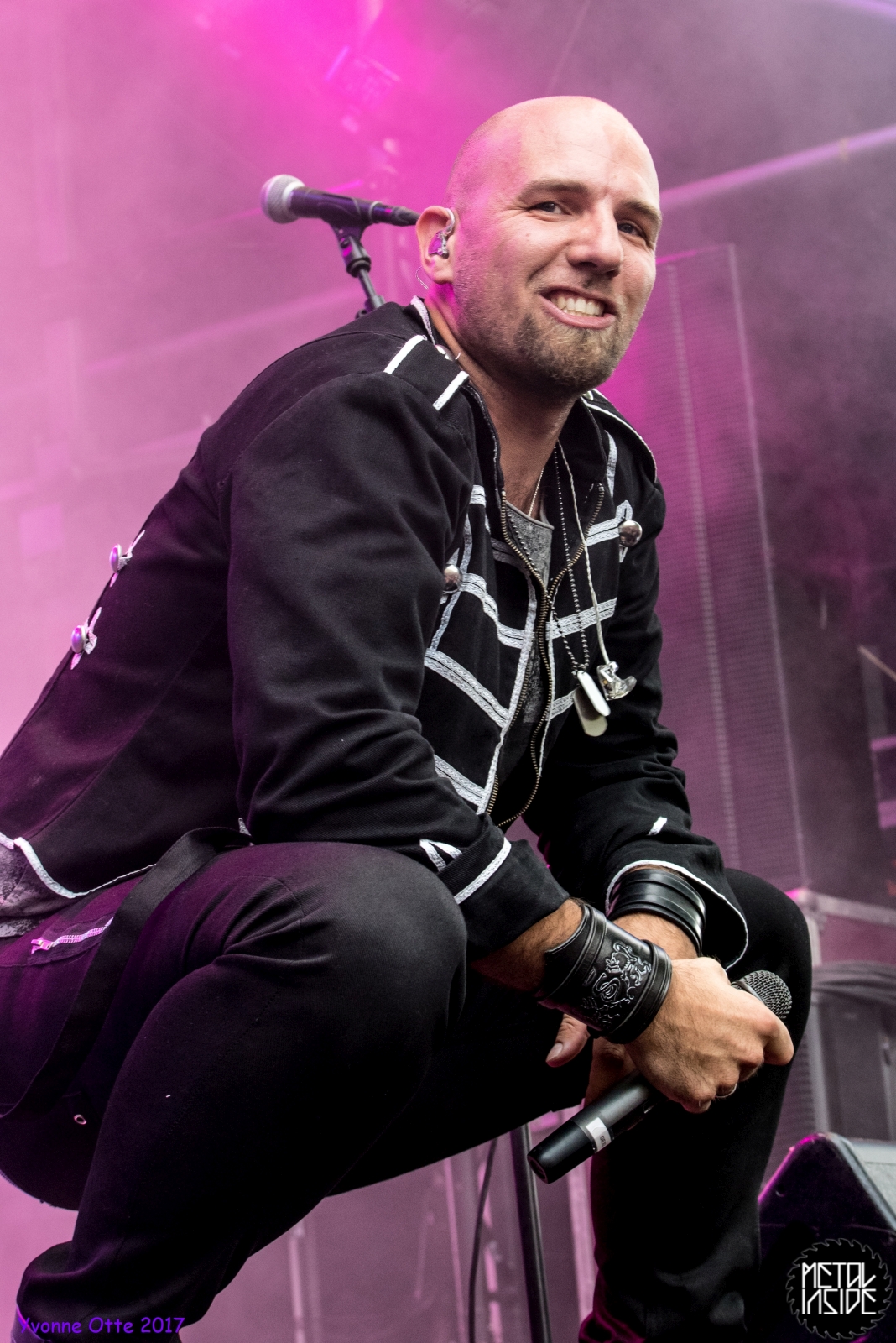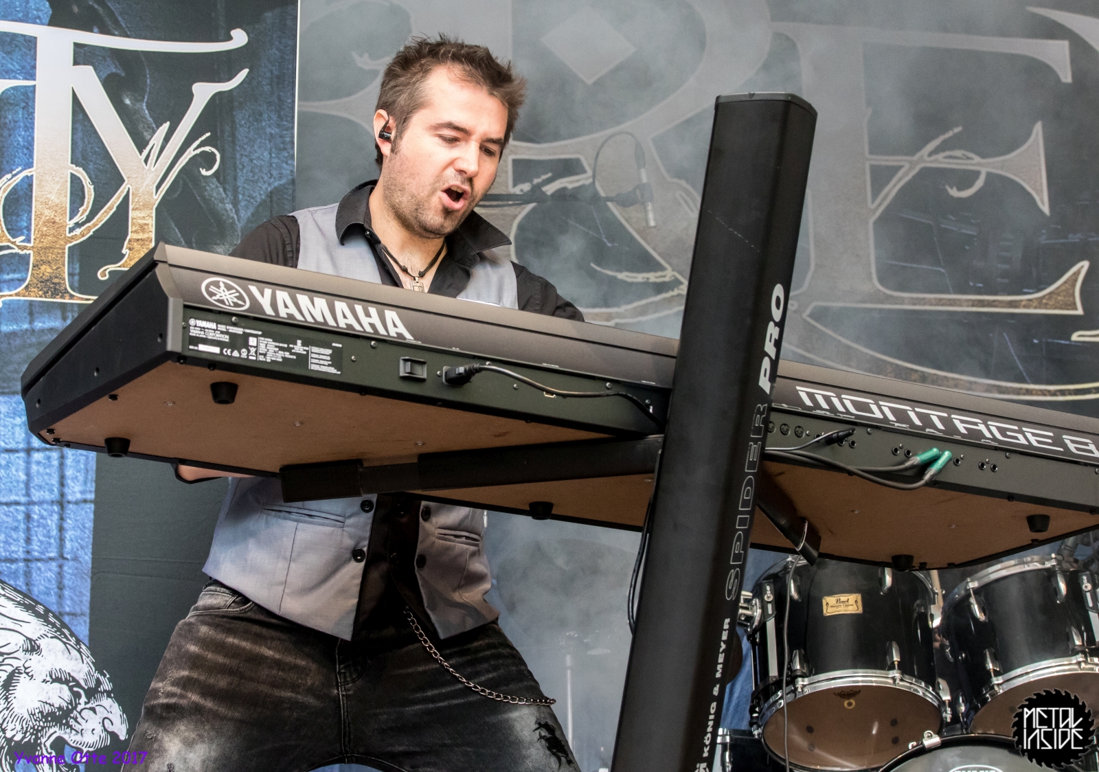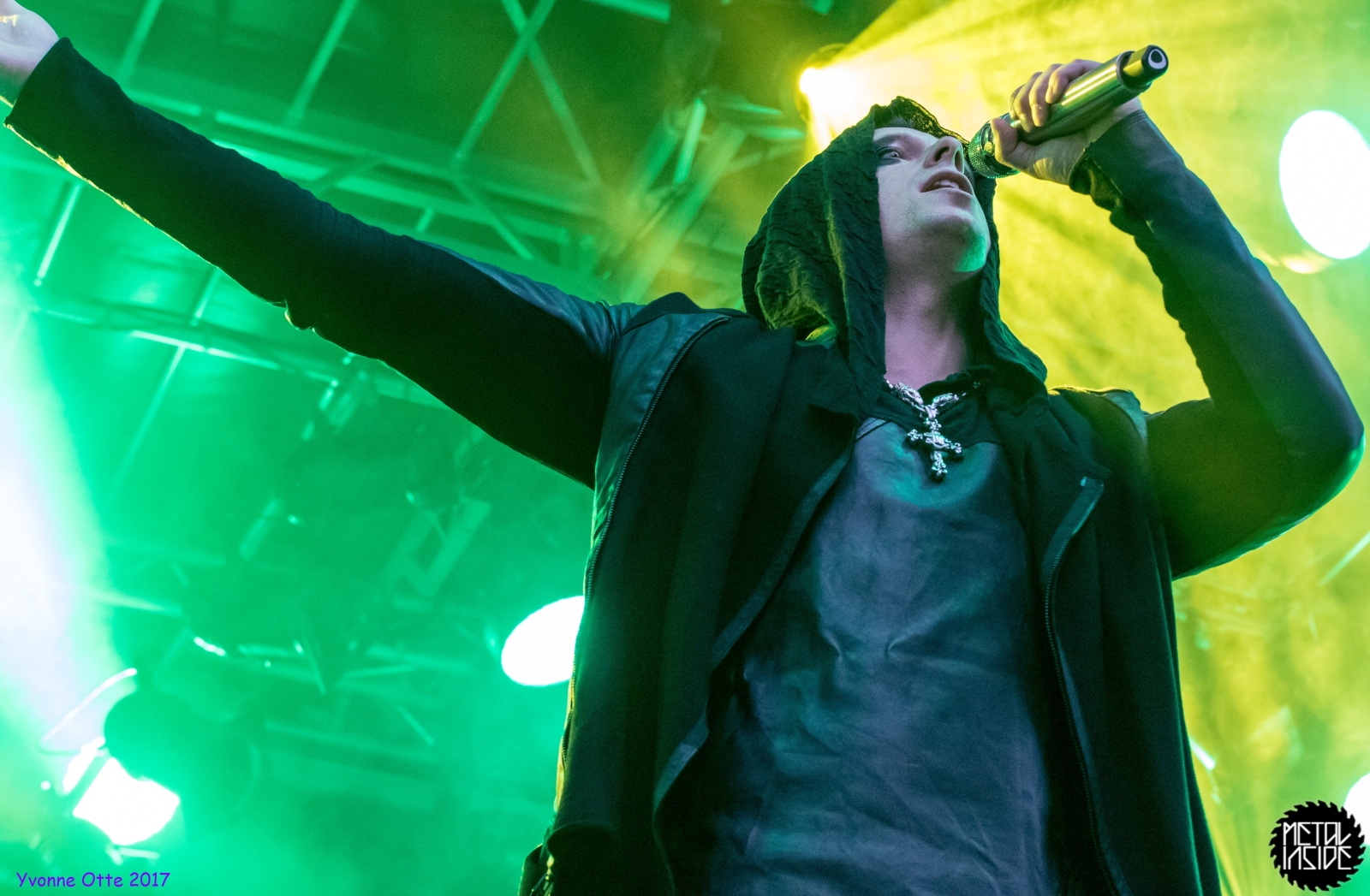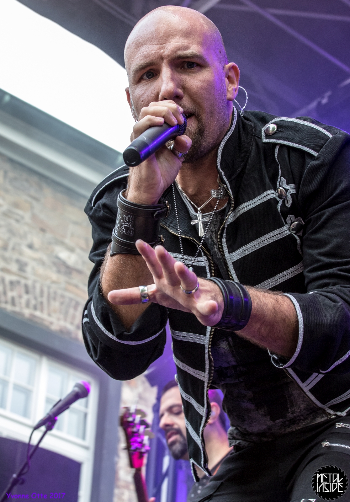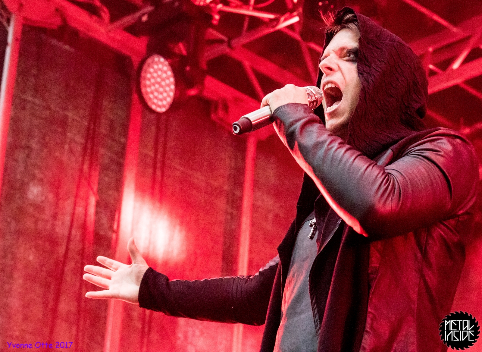 Wer bereits zu NOX INTERNA Vorort war, hat dann einiges zu sehen bekommen. NOX INTERNA bietet eine Bühnenshow, die man gesehen haben muss, denn in Worte zu fassen, was man da zu sehen bekommt, würde der Show nicht gerecht werden. Großes Kino jedenfalls und ein echter Stimmungsmacher. Hier muss man auch sagen, dass diese Band sicherlich von der Stimmung her besser nach ERDLING platziert gewesen wäre, weil bei NOX INTERNA das Publikum kein Halten mehr kannte und bei ERDLING eher leider etwas verhaltener war. Klar, andere Art von Musik und schlechteres Wetter, dennoch war ERDLING ein wenig Stimmungskiller und es fiel sichtlich schwer Stimmung aufzubauen. Neue Deutsche Härte ist nicht für jeden etwas. Aber ist ja das Schöne an Festivals: Man lernt viel neue Musik kennen, nicht jedes muss man mögen, aber allen Künstlern sollte man Respekt für deren Arbeit entgegen bringen. Manche funktionieren von der Stimmung her einfach besser auf Festivals, andere haben dann die Megastimmung bei den eigenen Konzerten. Von der Stimmung her hier hätte es einfach besser gepasst, wenn NOX INTERNA und ERDLING getauscht hätte, denn mit VLAD IN TEARS kamen wieder Stimmungskanonen auf die Bühne. Leider fing es hier stärker an zu regnen, umso sympathischer, dass Sänger Kris sich in den Regen gestellt hat: geteiltes Leid ist halbes Leid! Einen neuen Gitarristen hatten VLAD IN TEARS auch mit dabei, der aber sehr gut von den Fans aufgenommen wurde und sichtlich Spaß beim Auftritt hatte.