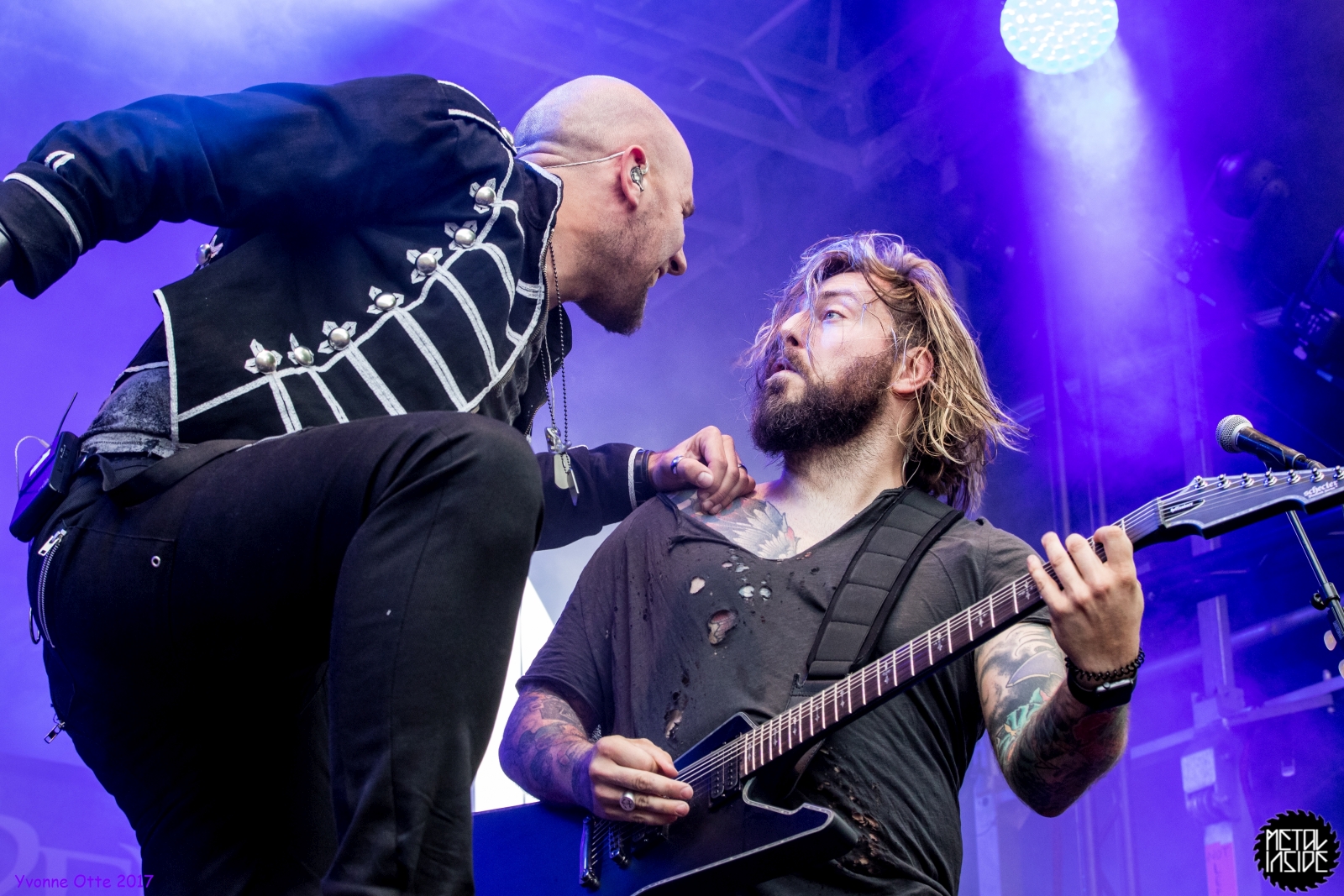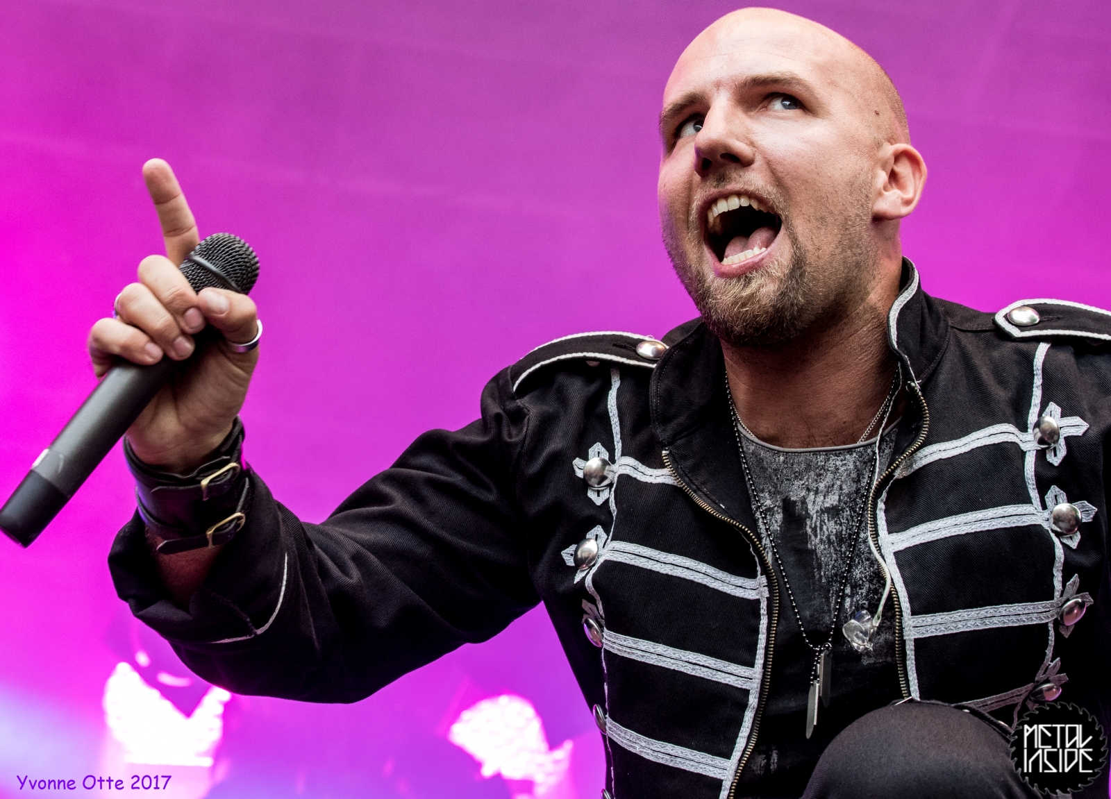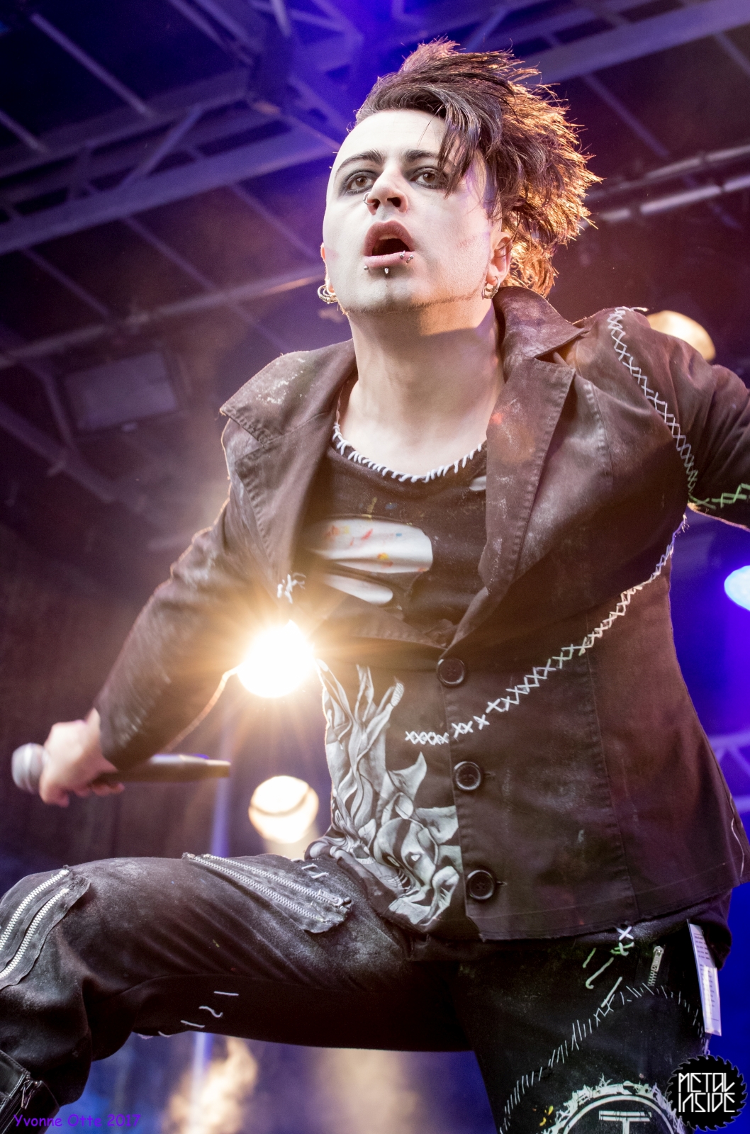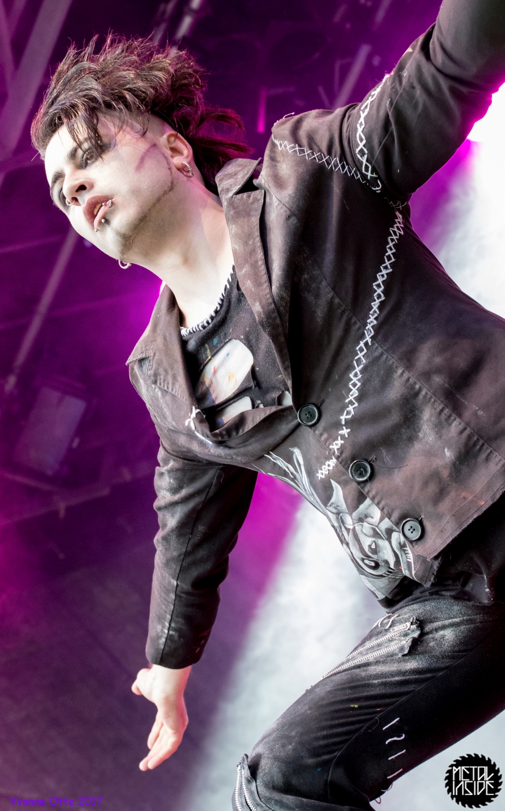 Wer bereits zu NOX INTERNA Vorort war, hat dann einiges zu sehen bekommen. NOX INTERNA bietet eine Bühnenshow, die man gesehen haben muss, denn in Worte zu fassen, was man da zu sehen bekommt, würde der Show nicht gerecht werden. Großes Kino jedenfalls und ein echter Stimmungsmacher. Hier muss man auch sagen, dass diese Band sicherlich von der Stimmung her besser nach ERDLING platziert gewesen wäre, weil bei NOX INTERNA das Publikum kein Halten mehr kannte und bei ERDLING eher leider etwas verhaltener war. Klar, andere Art von Musik und schlechteres Wetter, dennoch war ERDLING ein wenig Stimmungskiller und es fiel sichtlich schwer Stimmung aufzubauen. Neue Deutsche Härte ist nicht für jeden etwas. Aber ist ja das Schöne an Festivals: Man lernt viel neue Musik kennen, nicht jedes muss man mögen, aber allen Künstlern sollte man Respekt für deren Arbeit entgegen bringen. Manche funktionieren von der Stimmung her einfach besser auf Festivals, andere haben dann die Megastimmung bei den eigenen Konzerten. Von der Stimmung her hier hätte es einfach besser gepasst, wenn NOX INTERNA und ERDLING getauscht hätte, denn mit VLAD IN TEARS kamen wieder Stimmungskanonen auf die Bühne. Leider fing es hier stärker an zu regnen, umso sympathischer, dass Sänger Kris sich in den Regen gestellt hat: geteiltes Leid ist halbes Leid! Einen neuen Gitarristen hatten VLAD IN TEARS auch mit dabei, der aber sehr gut von den Fans aufgenommen wurde und sichtlich Spaß beim Auftritt hatte.