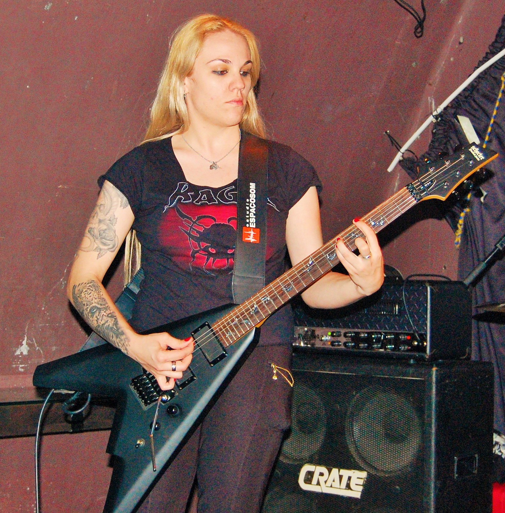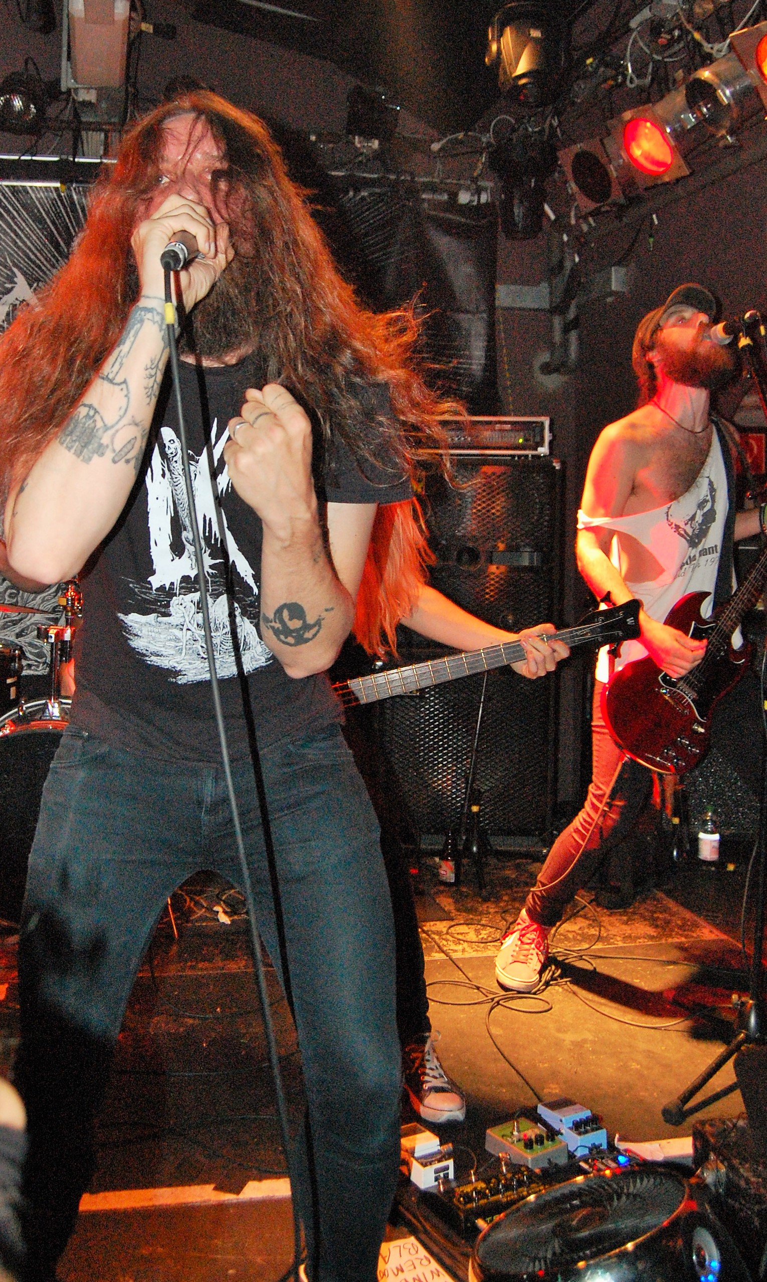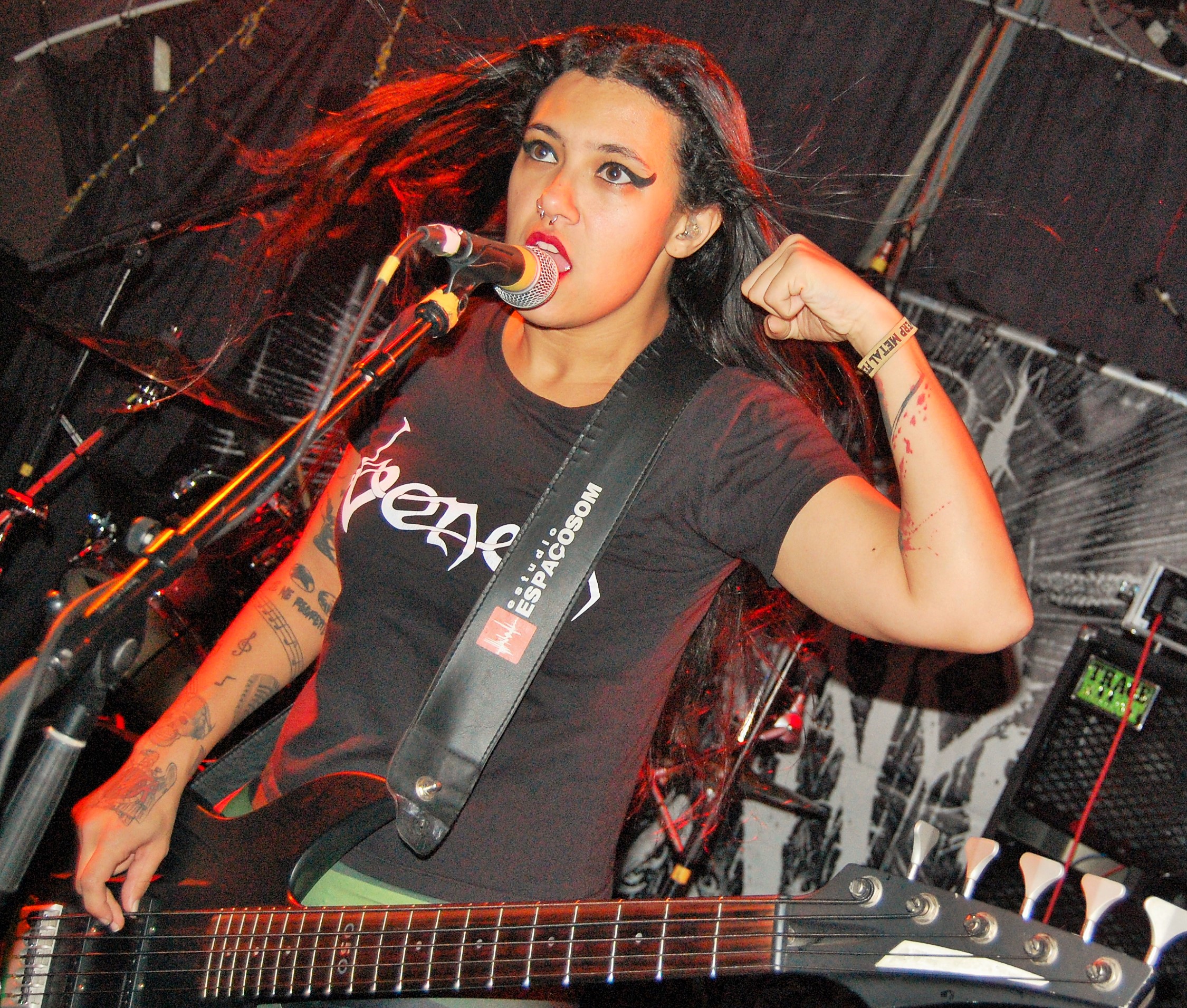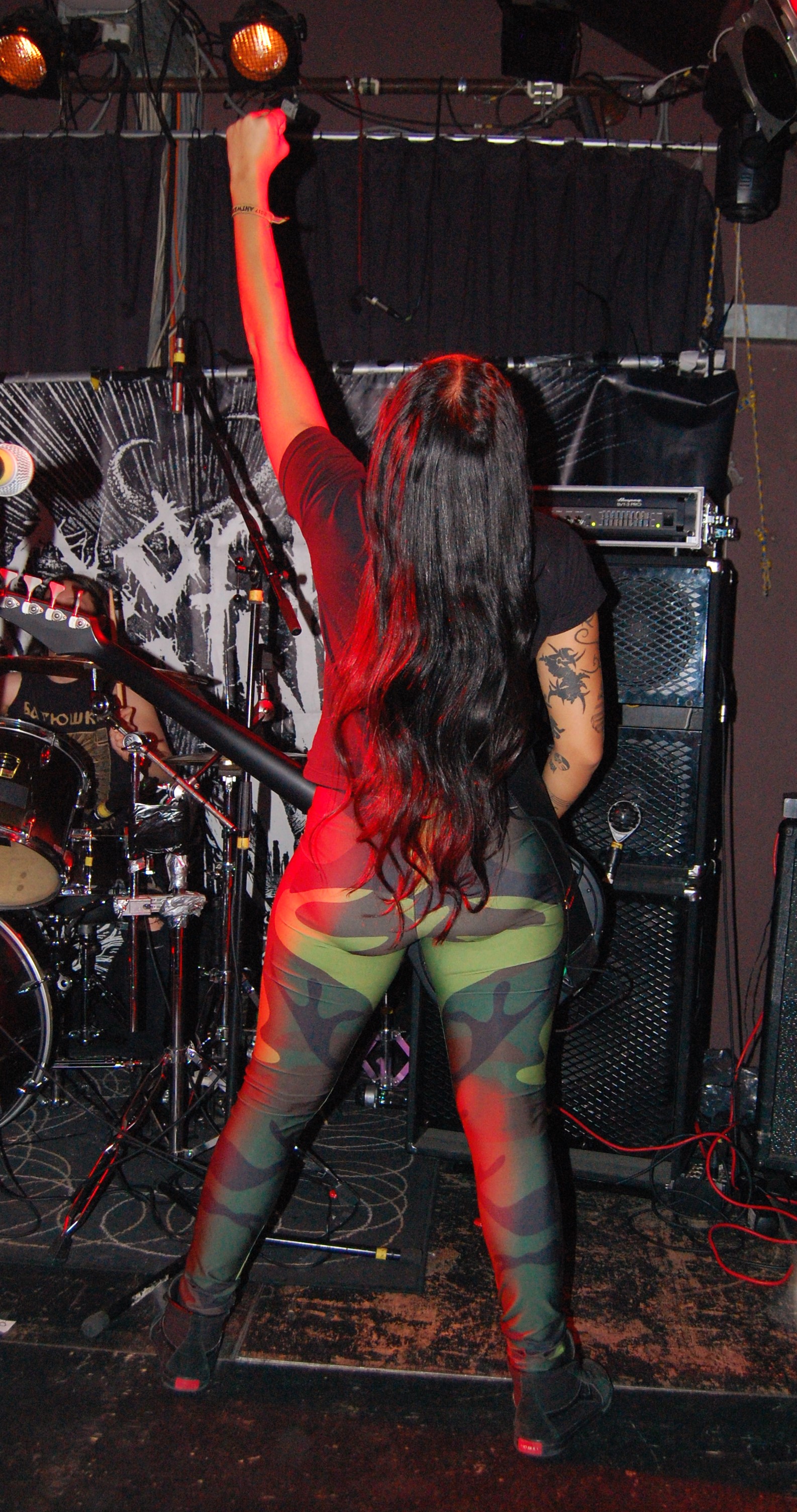 Das sind auch NERVOSA. Ohne Zweifel. Es liegt nahe, dass die große Zuneigung zu den drei brasilianischen Mädels durchaus an ihrem Geschlecht liegt. Der gemeine Banger scheint eben doch einfach zufrieden zu stellen zu sein. Da wird mit dem Handy mal nicht das Gesicht , sondern eben das Gesäß geknipst... Wie auch immer: So süß sie auch wirken, so sehr gehen sie aus sich heraus, wenn „Hypocrisy“ einsetzt. NERVOSA zitieren Slayer und sämtliche deutschen Big-Sonstwieviels und lassen ihre süßen Mädel-Masken fallen. Tight as fuck, zugegeben auch ein wenig hausbacken, thrashen sie die angenehm zugequarzte Butze zusammen und sogar für noch mehr Hitze. Die Männchen im Publikum und alle andere gehen steil und selbst Kritikaster der Gleichberechtigung wiegen zufrieden mit dem Kopf. „Intolerance Means War“ setzt einen Höhepunkt. Sie sind aber auch zu süß. Und echt ganz gut. Die Female-Thrasher von NERVOSA.