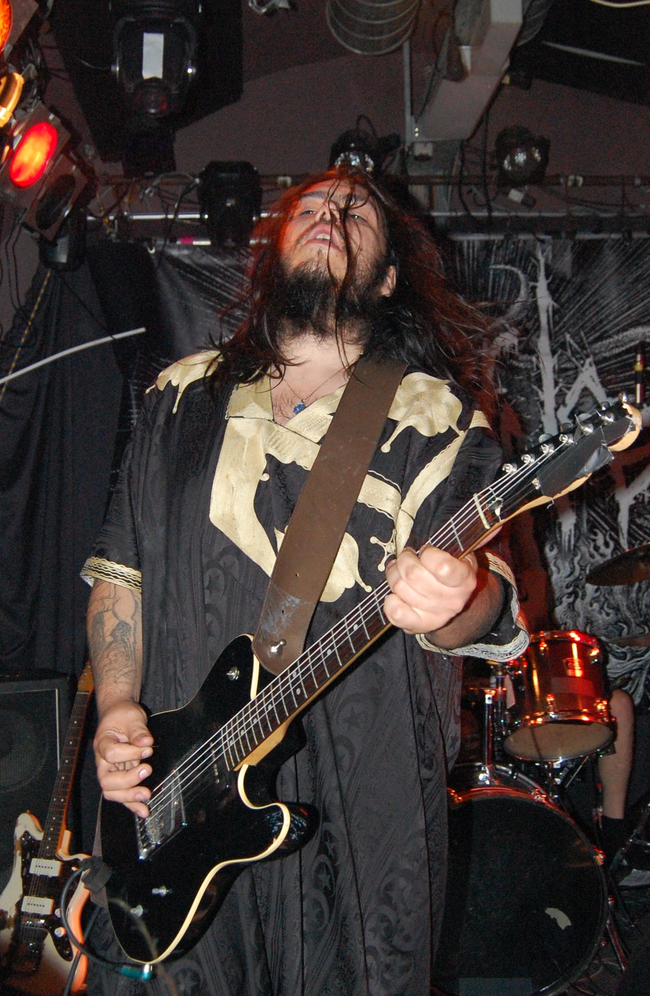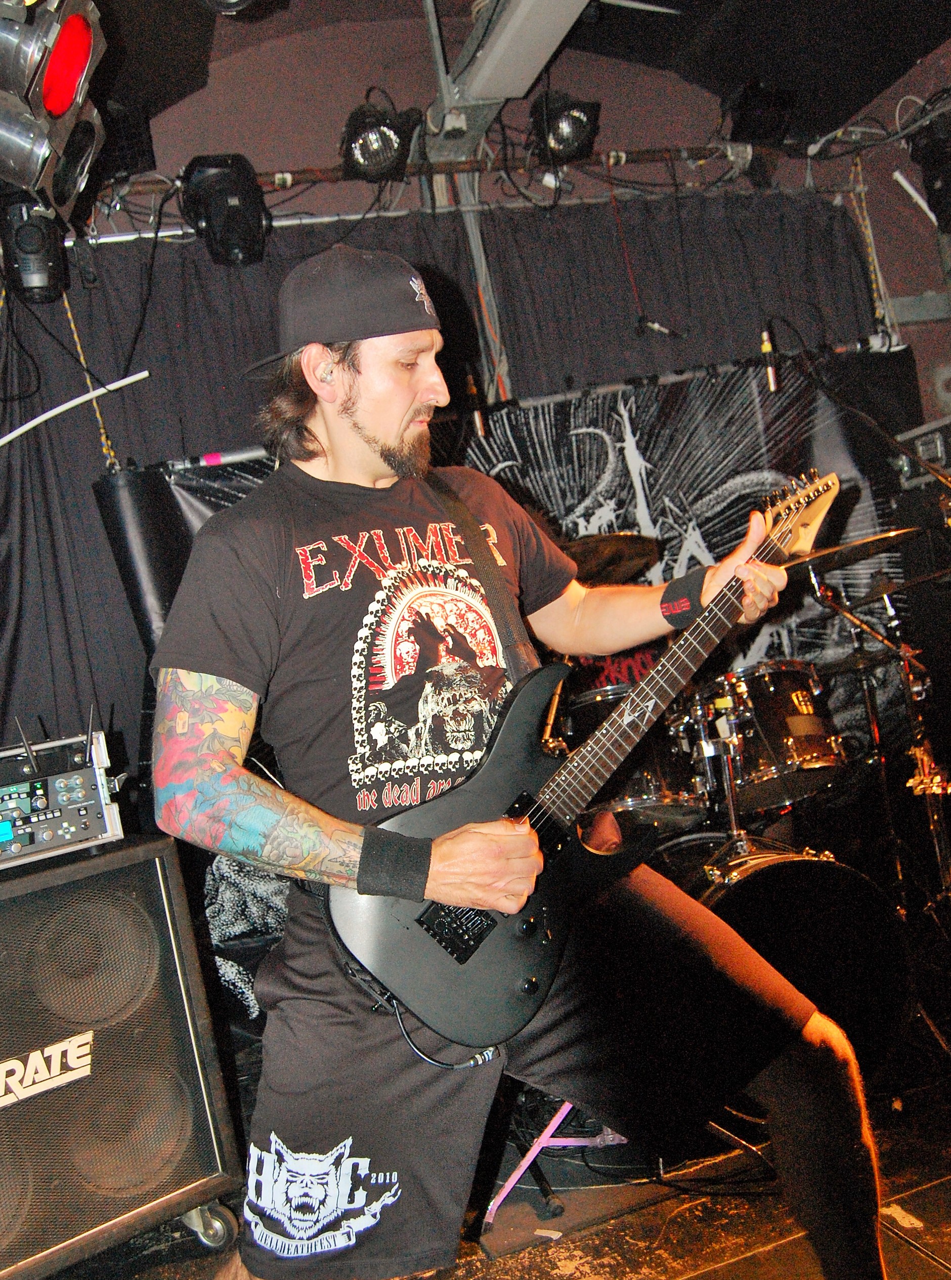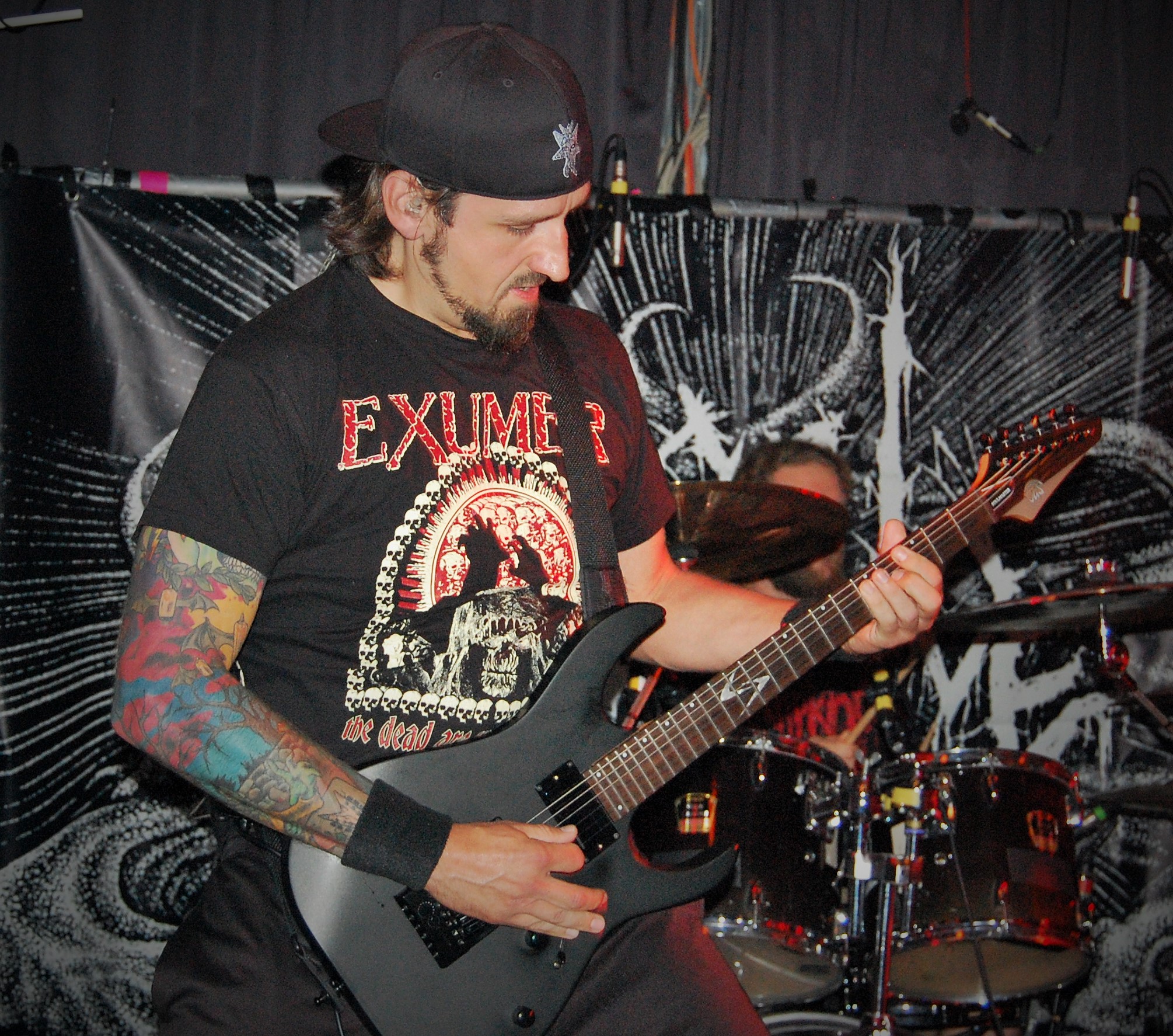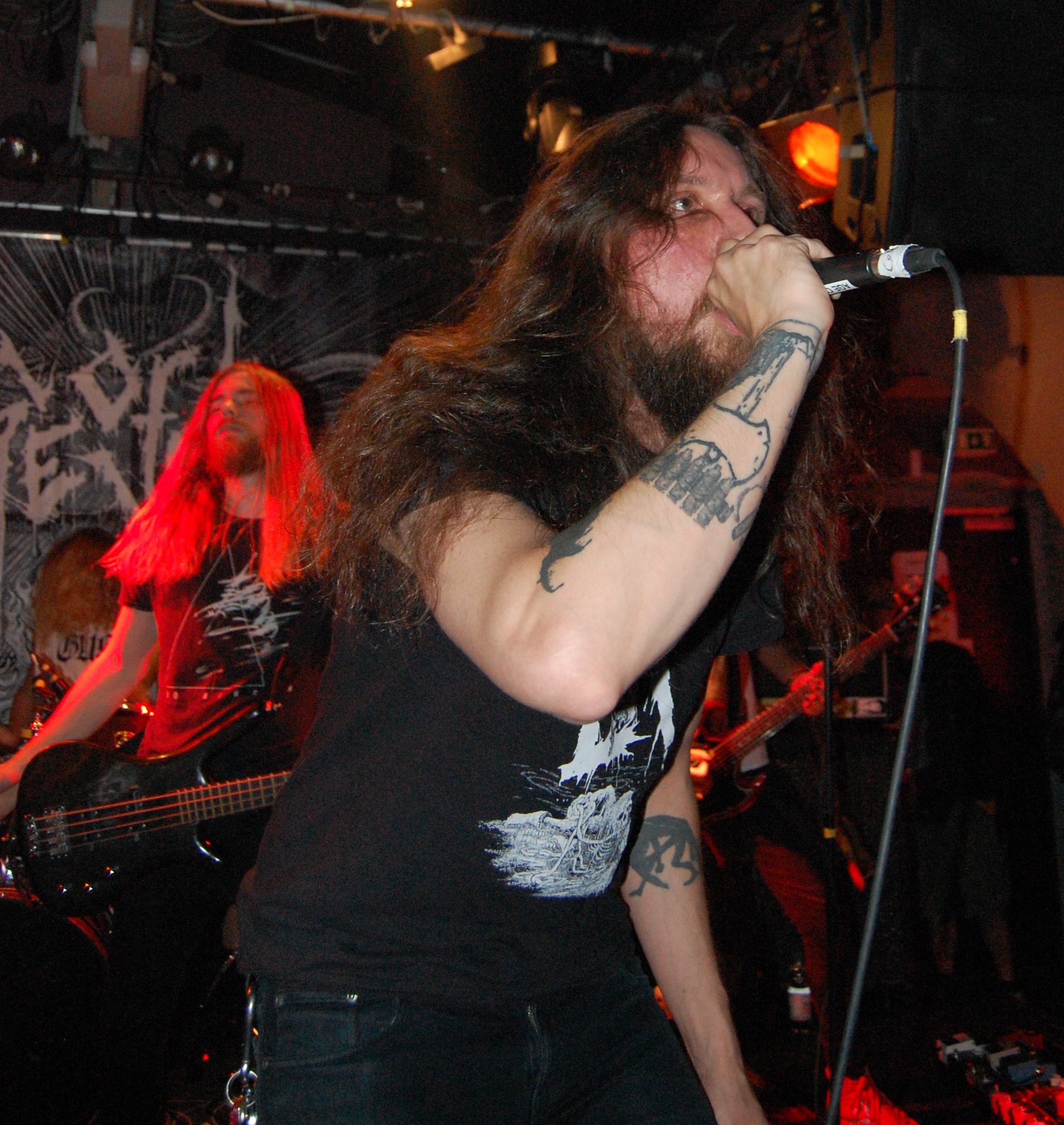 Wenn die denkst, es geht nicht mehr, kommt irgendwo ein Engel her: In Gestalt von AGE OF WOE. Die Göteborger begrüßen Hamburg herzlich und kündigen tanzbaren Death Metal an – und treffen damit den rostigen Nagel voll auffe Birne. Eine knappe Stunde entführen sie auch die schüchterne Blonde neben uns in andere Sphären. Stark, wie Sänger Sonny für Fan-Band-Bindung sorgt – ehrlicher kann ein Fronter nicht wirken. Dazu der vollkommen irre angezogene Carlos an der Gitarre – in orientalischem Mäntelchen und Hausschuhen fiedelt er mittels feinster Melodien so viel Gänsehaut auf die Ärmchen, dass sich wildfremde Menschen in die Arme fallen. Ob neue Songs von „An Ill Wind Blowing“ Opener „Voices of the Unleashed“, „Bad Blood“, Heavy Clouds“, „Ill Winds“) oder ältere von „Inhumanform“ („Like Embers“, „Red Eyes“, „Black Rain“) und ein ganz altes – „No Remorse“ von der 2011er-Premieren-EP – alles, wirklich alles stimmt an diesem Abend bei AGE OF WOE. Der Crusty-Hammer! Wie das Bambi – und wie der gesamte Abend irgendwie auch.
