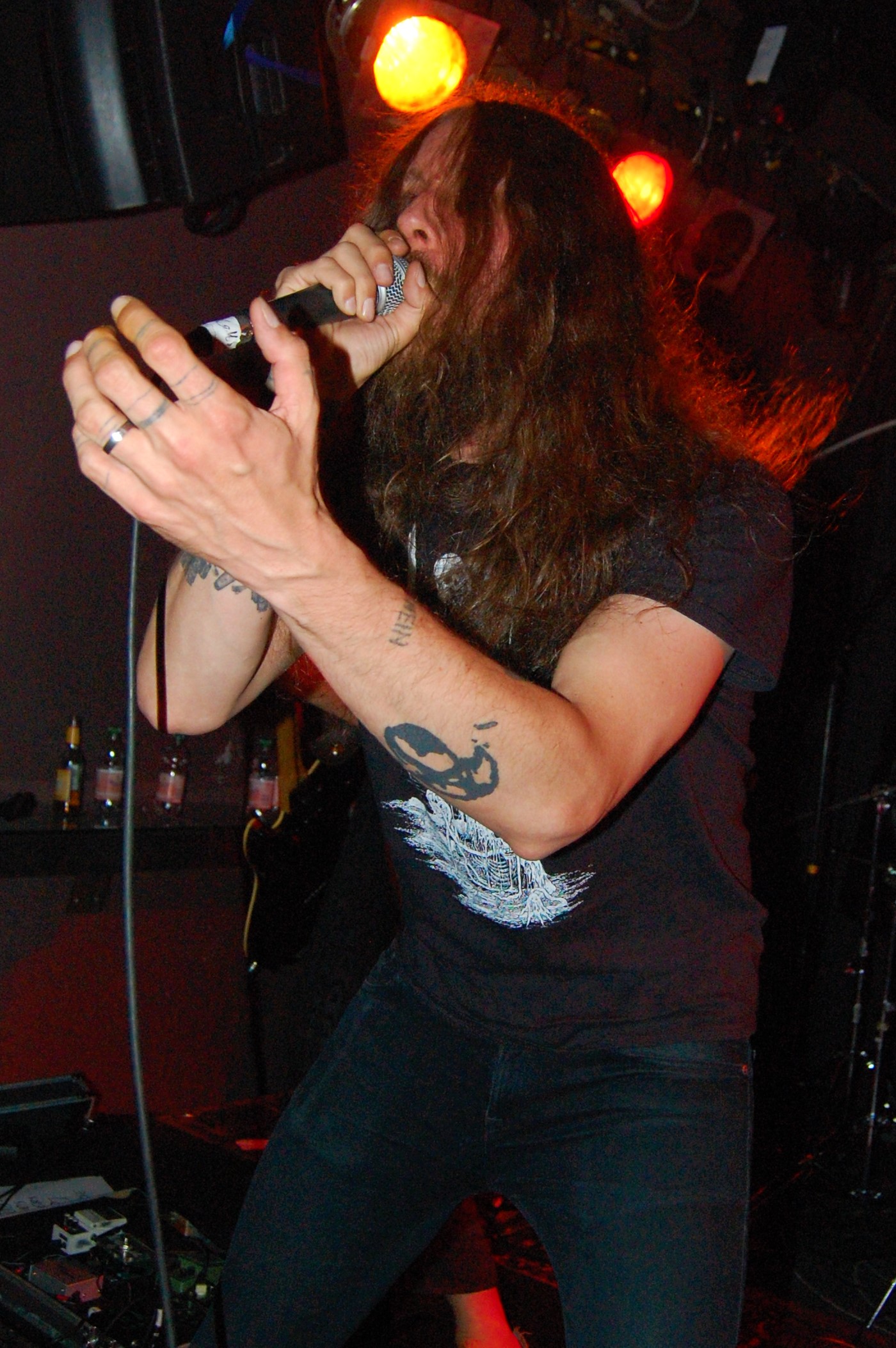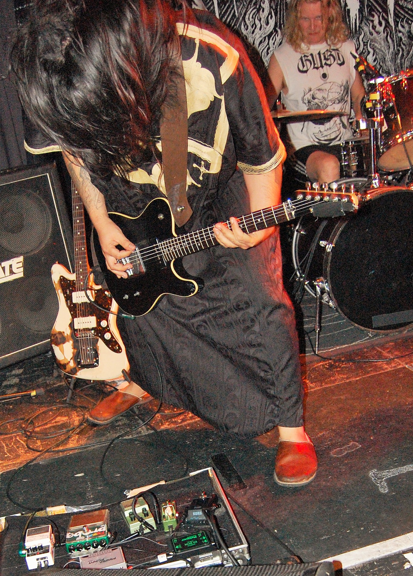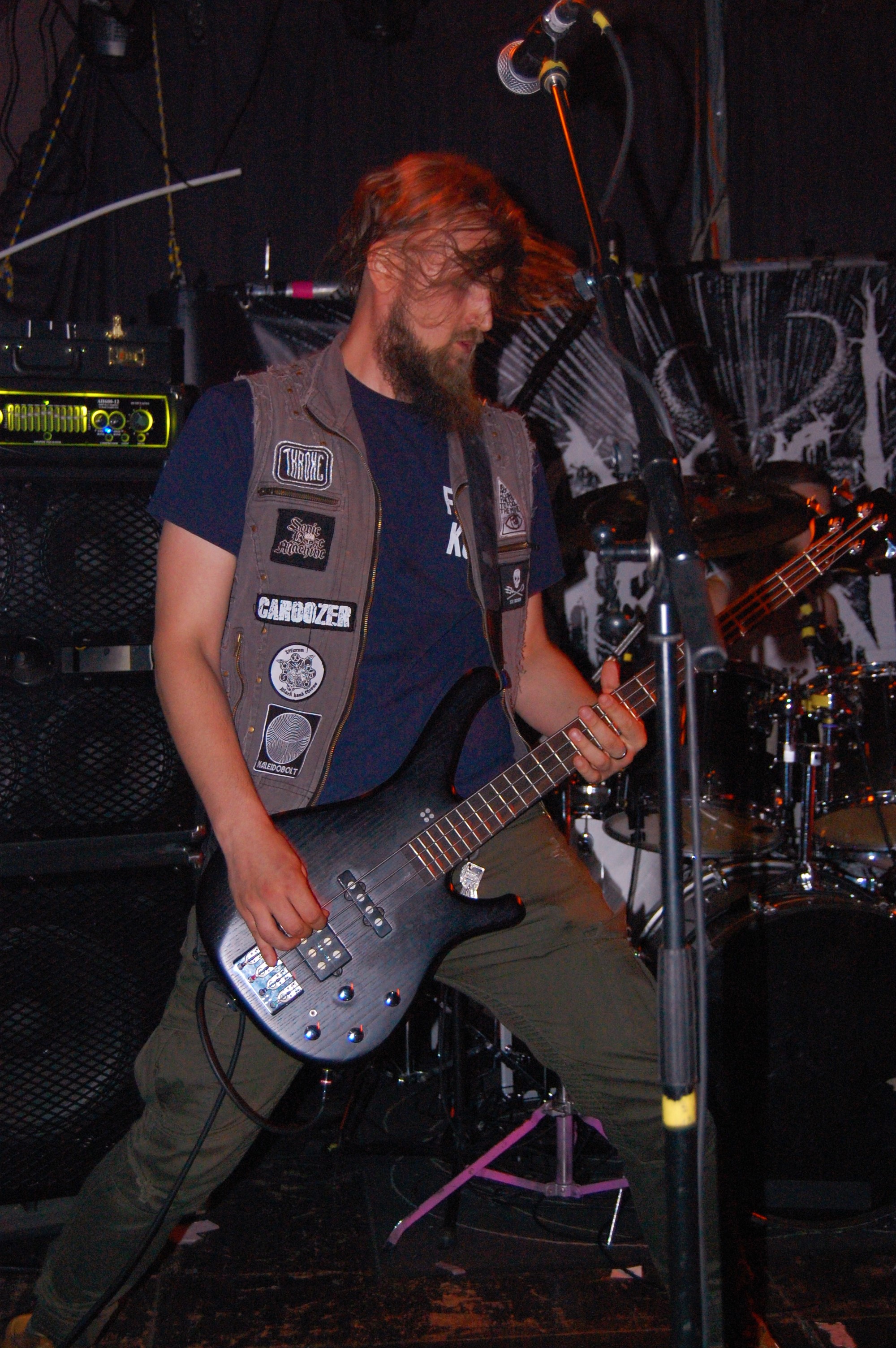 Irgendwie unpassend scheinen VAyL aus Berlin auf dem Billing zu sein – mit ihrem Stoner-Habitus. Da stehen da zwei Studenten und wissen nicht so recht, warum. Aber eben nur scheinbar. Denn als es richtig losgeht, geht die pimmelige Pickelhaube aka Hipsterzopf auf und der Kollege banged wie der Metal-Teufel. Musikalisch sind Songs wie „Follow The Goat“ „Amnesia“, zu dem es sogar ein Video gibt, oder „Tranquilized“ stonylässig as fuck und grooven ziemlich. Wenn jetzt die Ansagen entspannter wären als „Wir beeilen uns“ und die Brille besser säße, dann wäre hier der 1a-Live-Event zu nächsten Blubber-Party geritzt. Extrem cool kamen aber die Gasmaskenschaufenster-Puppe und das Glücksrad am Merch-Stand...