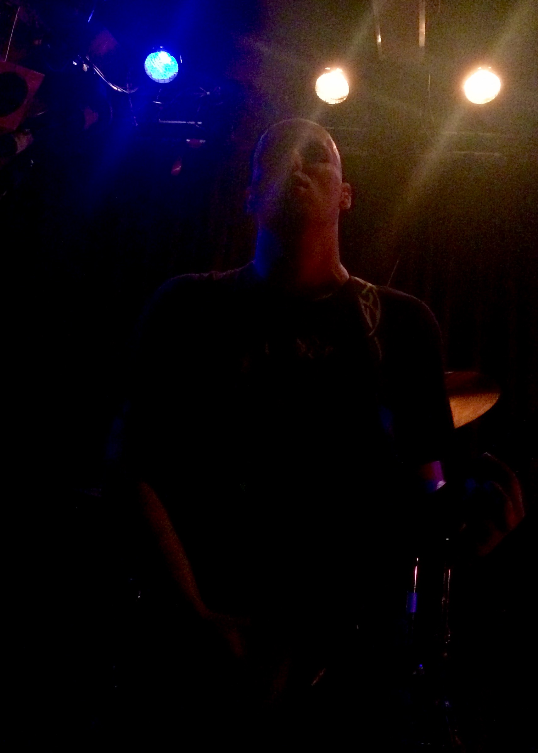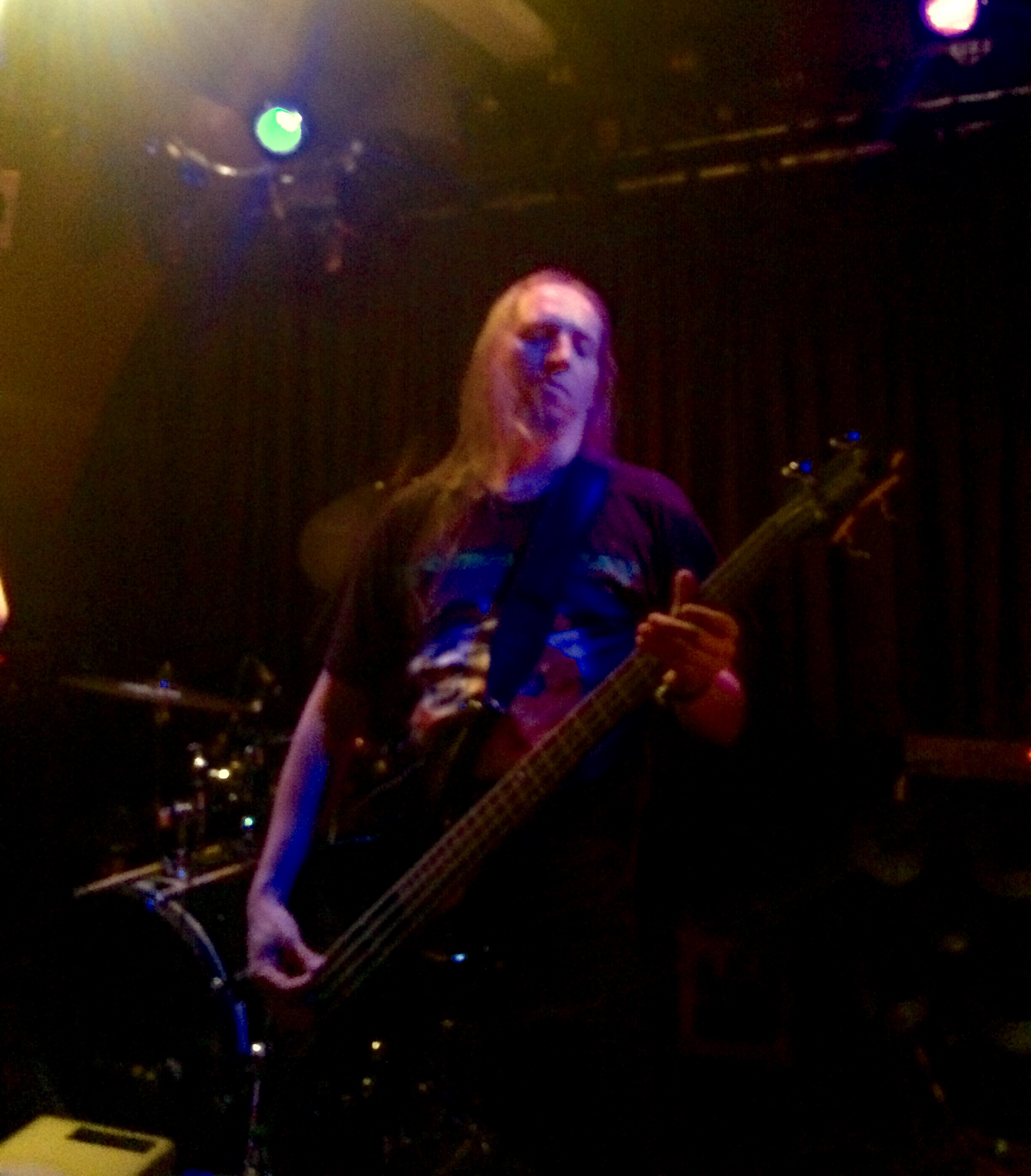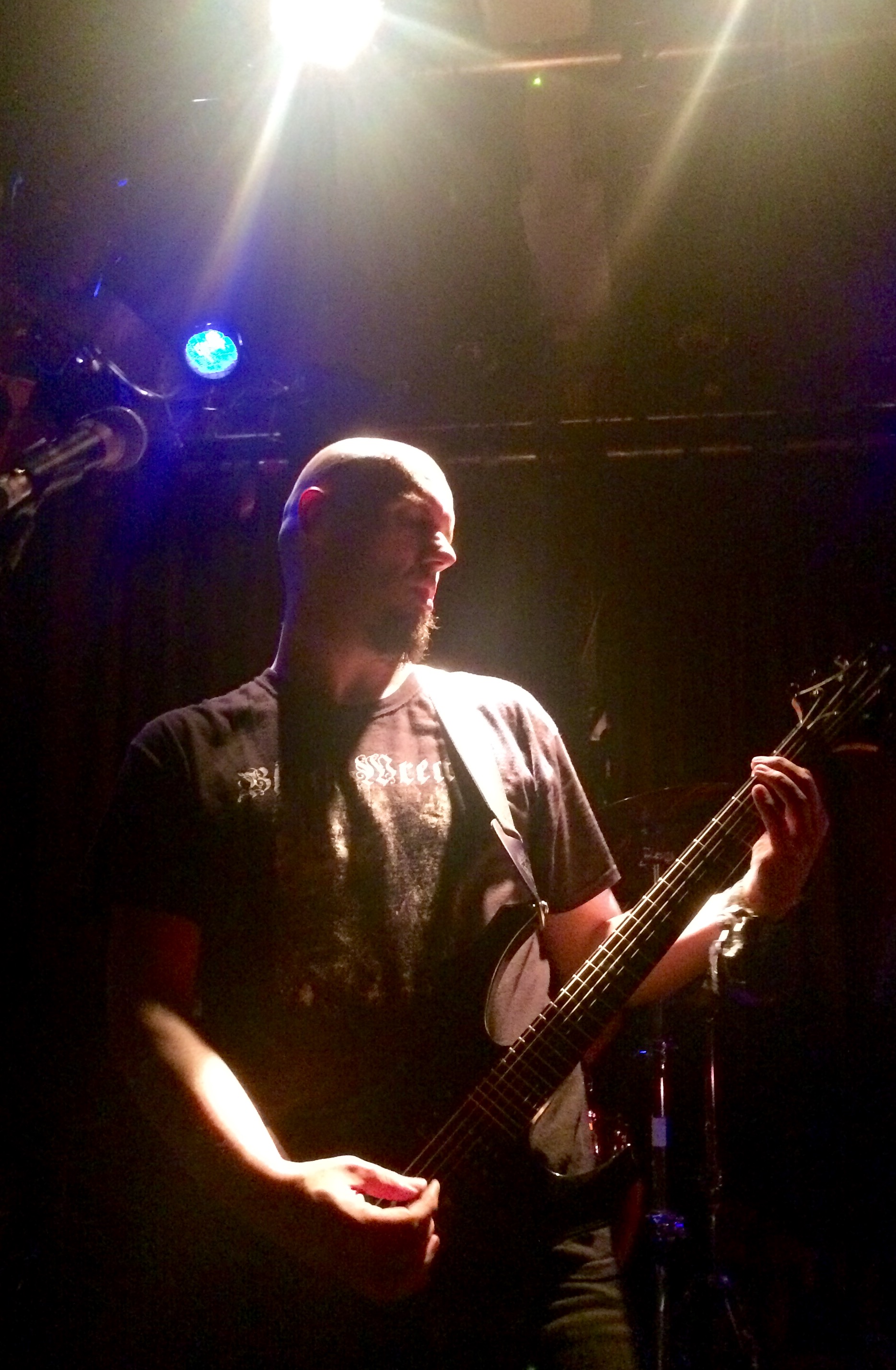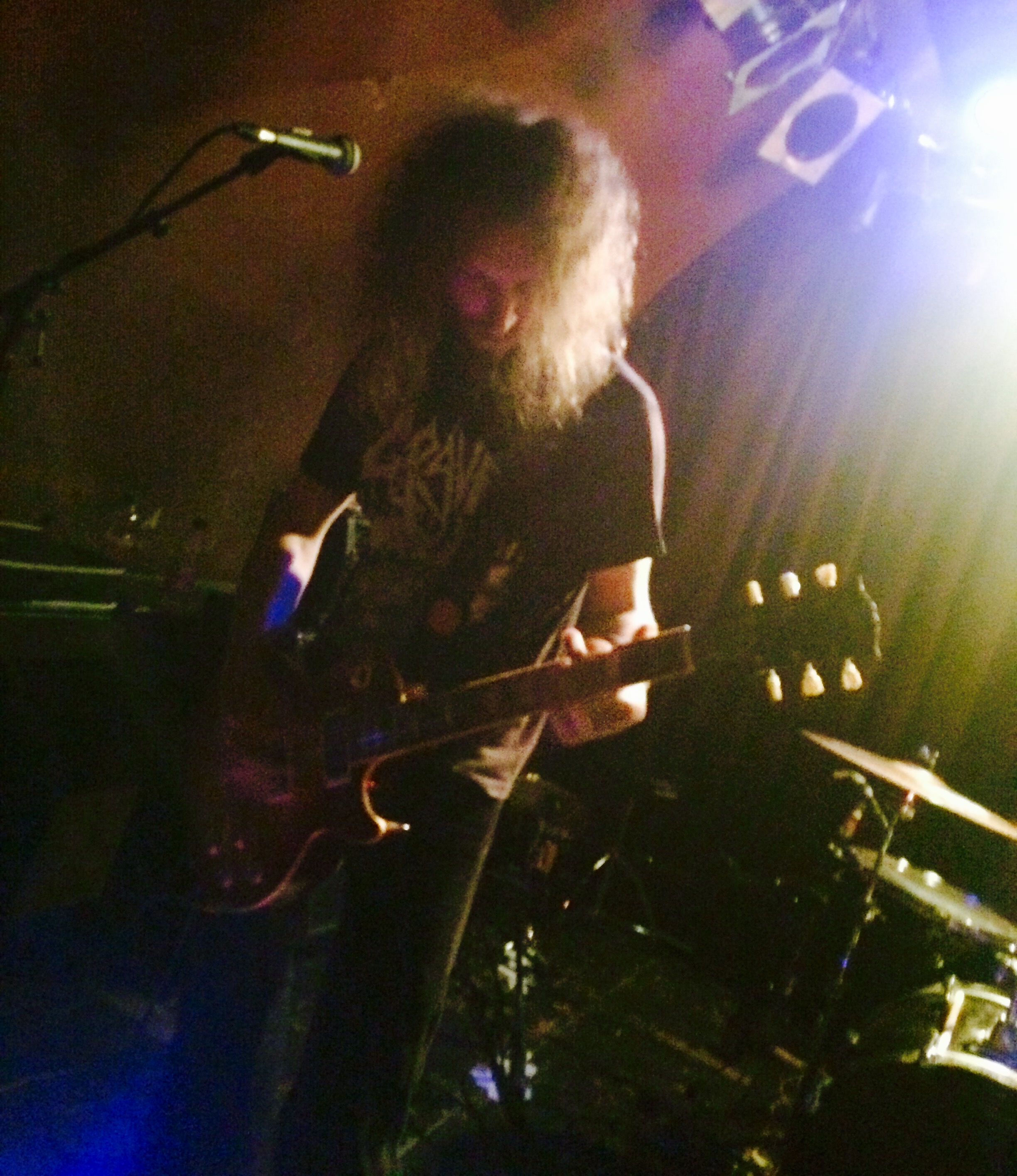 Keine Ahnung, ob es daran lag, dass COLLAPSE-INSTINCT-Fronter aussieht wie der kleine Bruder von Ofu Khan - dabei wirkt Harti doch ganz lieb – aber die Hamburger Doom-Freunde belassen es bei tüchtigem Sicherheitsabstand vor der Bühne. Vielleicht kommt es auch deswegen, weil die Göttinger ihren „Death-Doom“ offener interpretieren als die folgenden Bands und eben auch meist nicht langsam „genug“ vorgehen. Jedenfalls spielen sie unter anderem ihre komplette 2016-Demo CD „Wreck“ („Icons in Stone“, „Global Madness“, „Impact Winter“, „Wreck“), packen drei neue (?) Songs dazu („Fugacity Remains“, „Peratis“ und „Proliterary Chaos“) dazu. Gut, die Welt collapst nicht, der Gig bringt die Zuschauer auch nicht ins Wanken. Aber: Schön, wenn bei einem Billing alle Bands genügend (Zeit)-Raum haben, um ein echten Auftritt zu absolvieren. Da die CD ziemlich rockt, sollte auch live noch einiges bevor stehen bei den Südniedersachsen.