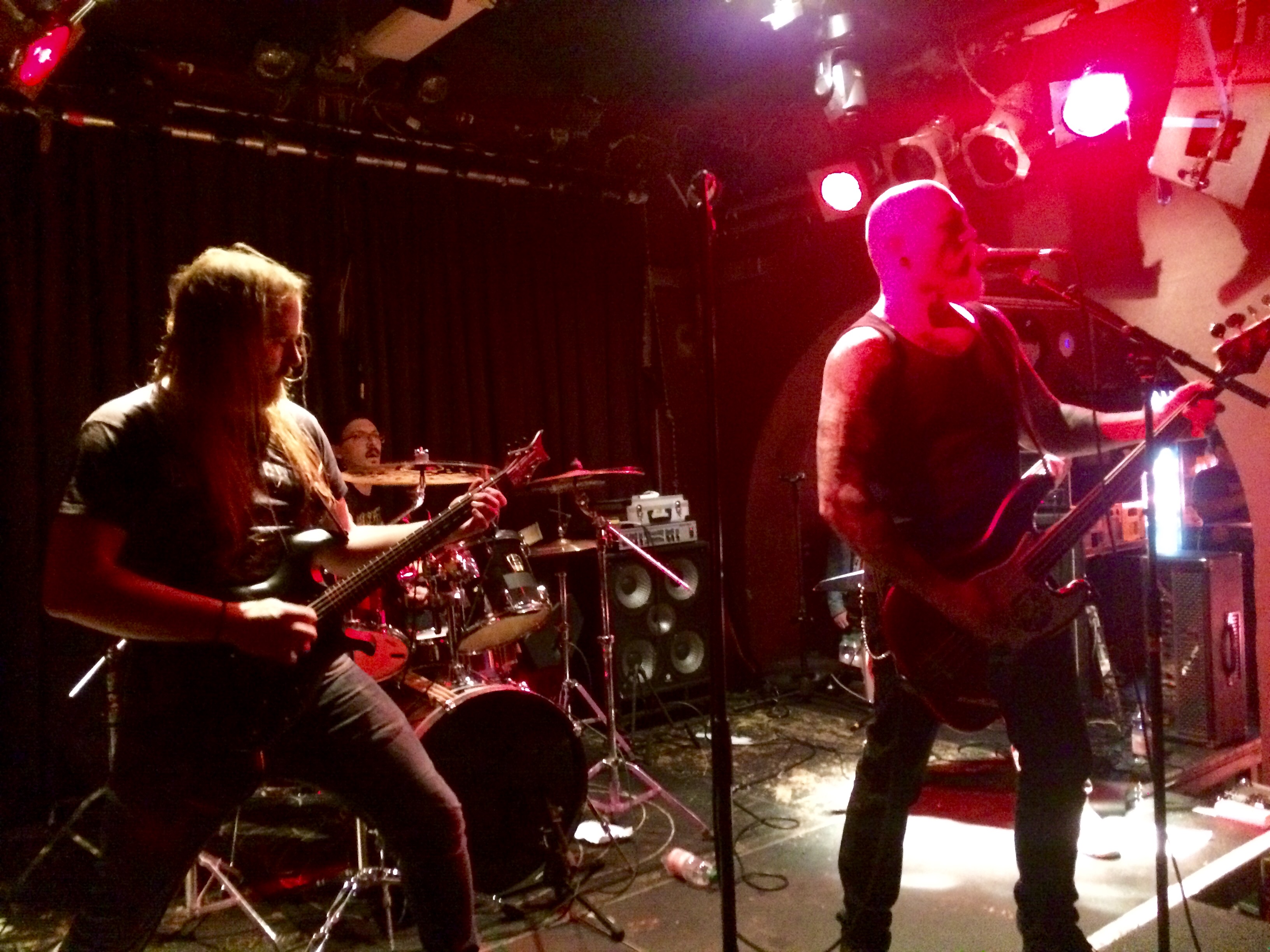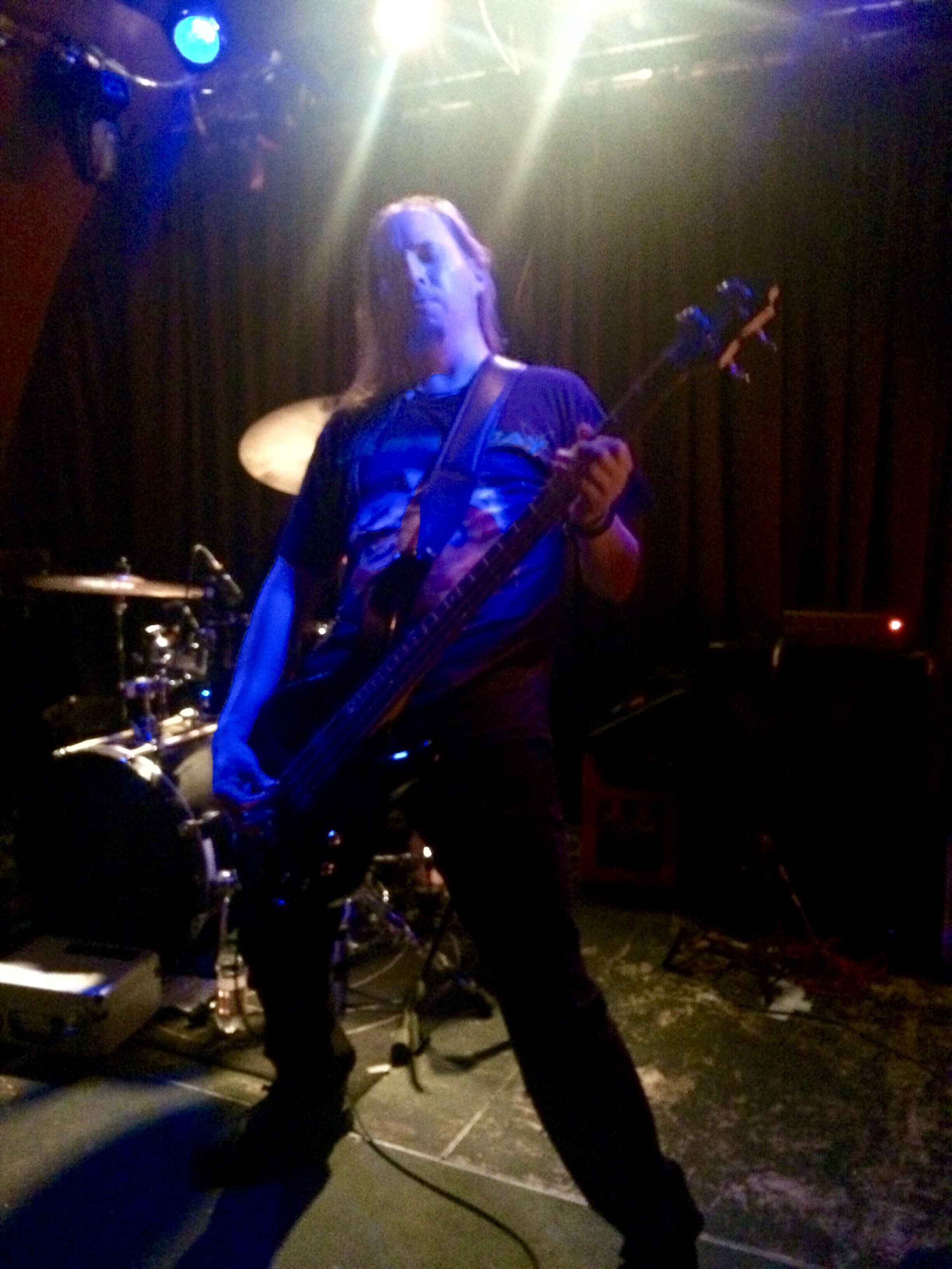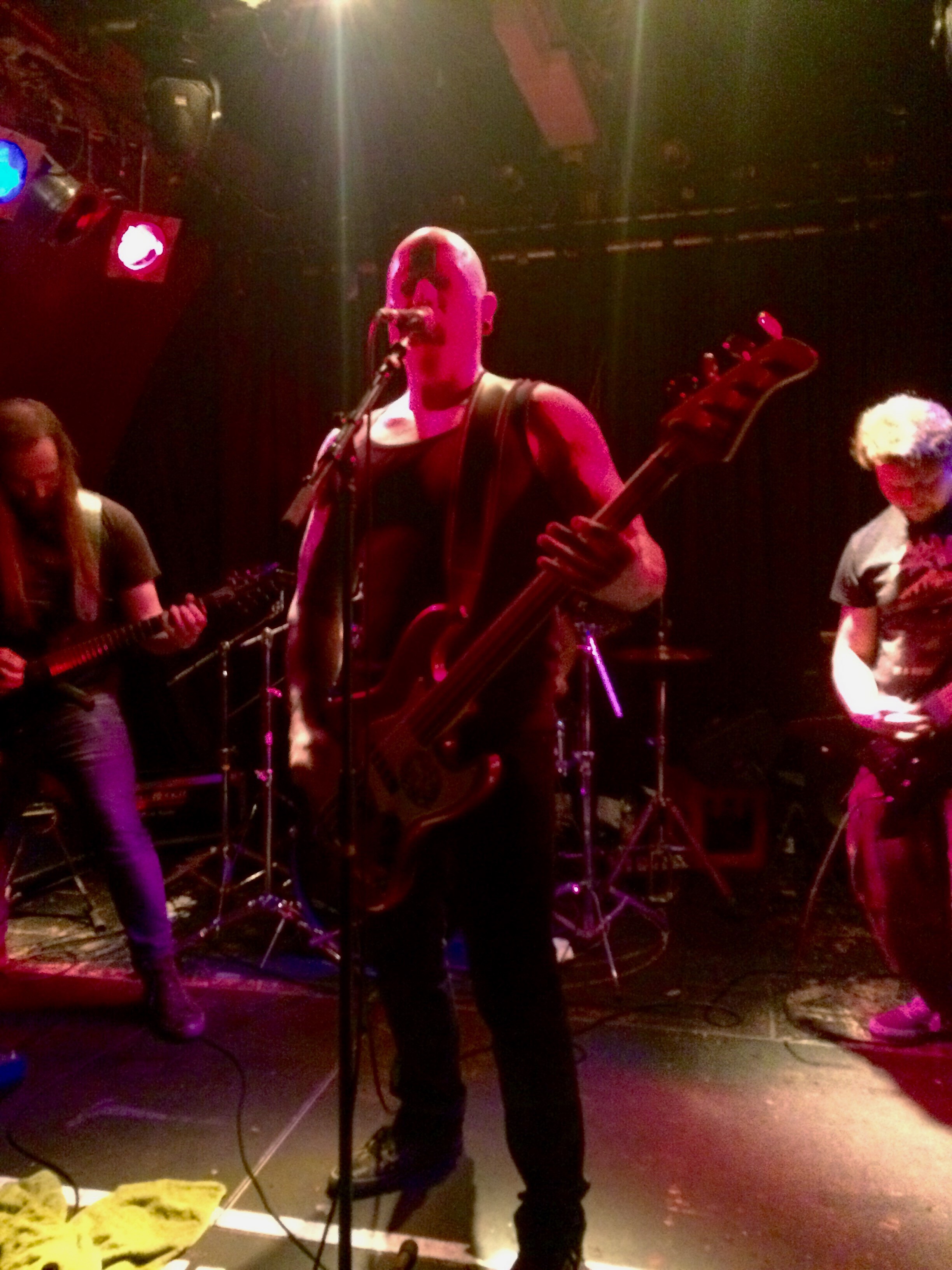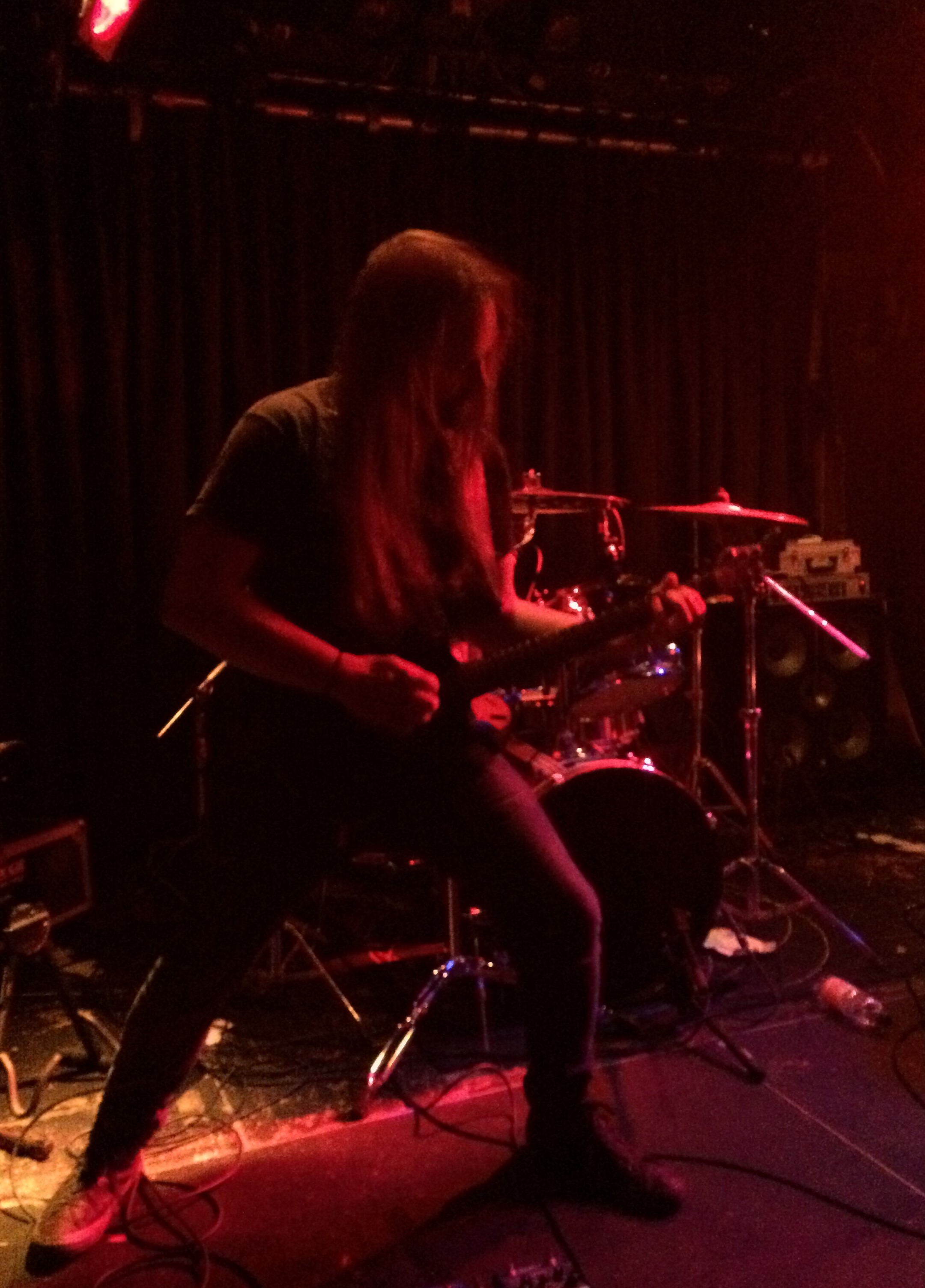 Keine Ahnung, ob es daran lag, dass COLLAPSE-INSTINCT-Fronter aussieht wie der kleine Bruder von Ofu Khan - dabei wirkt Harti doch ganz lieb – aber die Hamburger Doom-Freunde belassen es bei tüchtigem Sicherheitsabstand vor der Bühne. Vielleicht kommt es auch deswegen, weil die Göttinger ihren „Death-Doom“ offener interpretieren als die folgenden Bands und eben auch meist nicht langsam „genug“ vorgehen. Jedenfalls spielen sie unter anderem ihre komplette 2016-Demo CD „Wreck“ („Icons in Stone“, „Global Madness“, „Impact Winter“, „Wreck“), packen drei neue (?) Songs dazu („Fugacity Remains“, „Peratis“ und „Proliterary Chaos“) dazu. Gut, die Welt collapst nicht, der Gig bringt die Zuschauer auch nicht ins Wanken. Aber: Schön, wenn bei einem Billing alle Bands genügend (Zeit)-Raum haben, um ein echten Auftritt zu absolvieren. Da die CD ziemlich rockt, sollte auch live noch einiges bevor stehen bei den Südniedersachsen.
