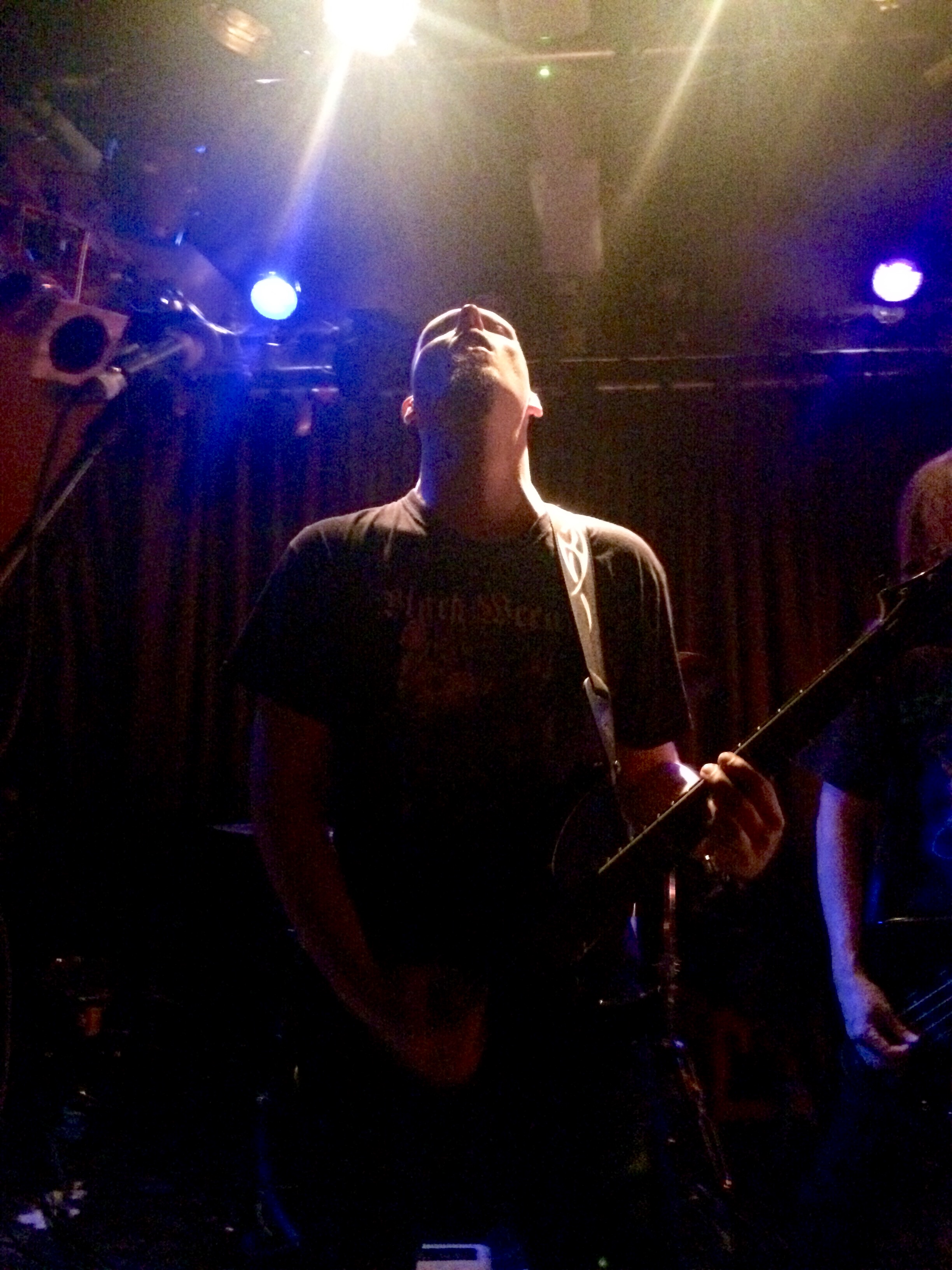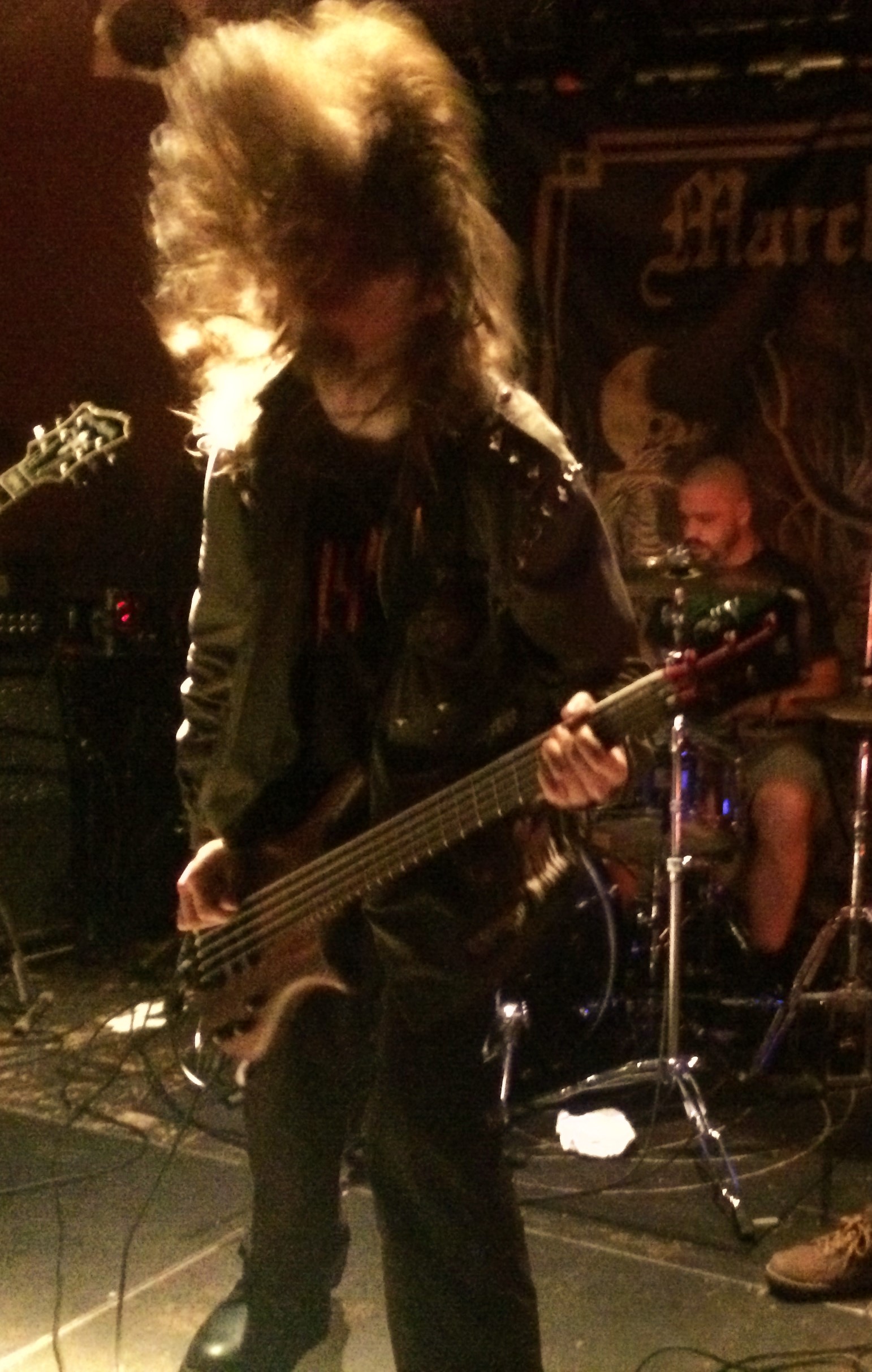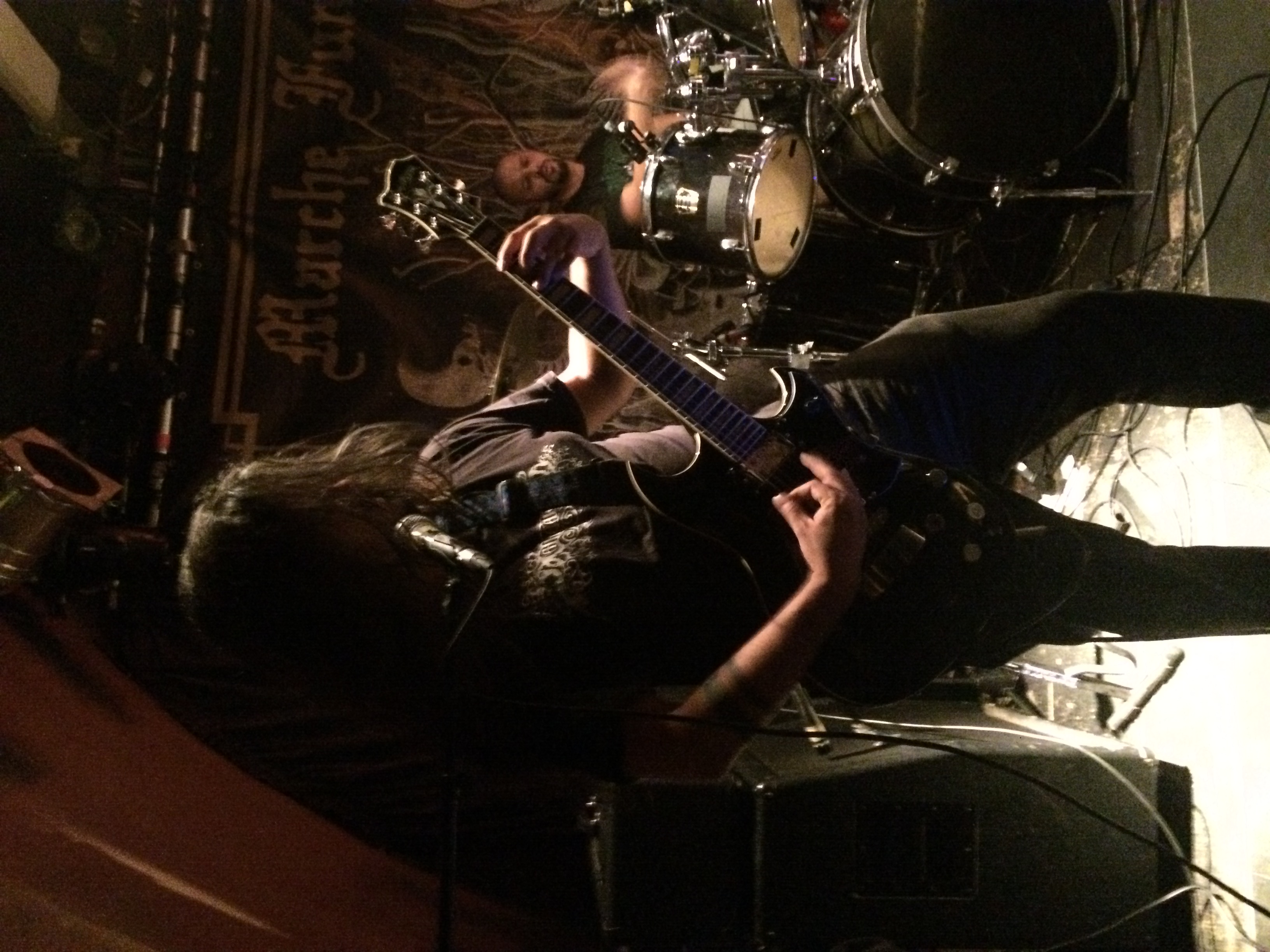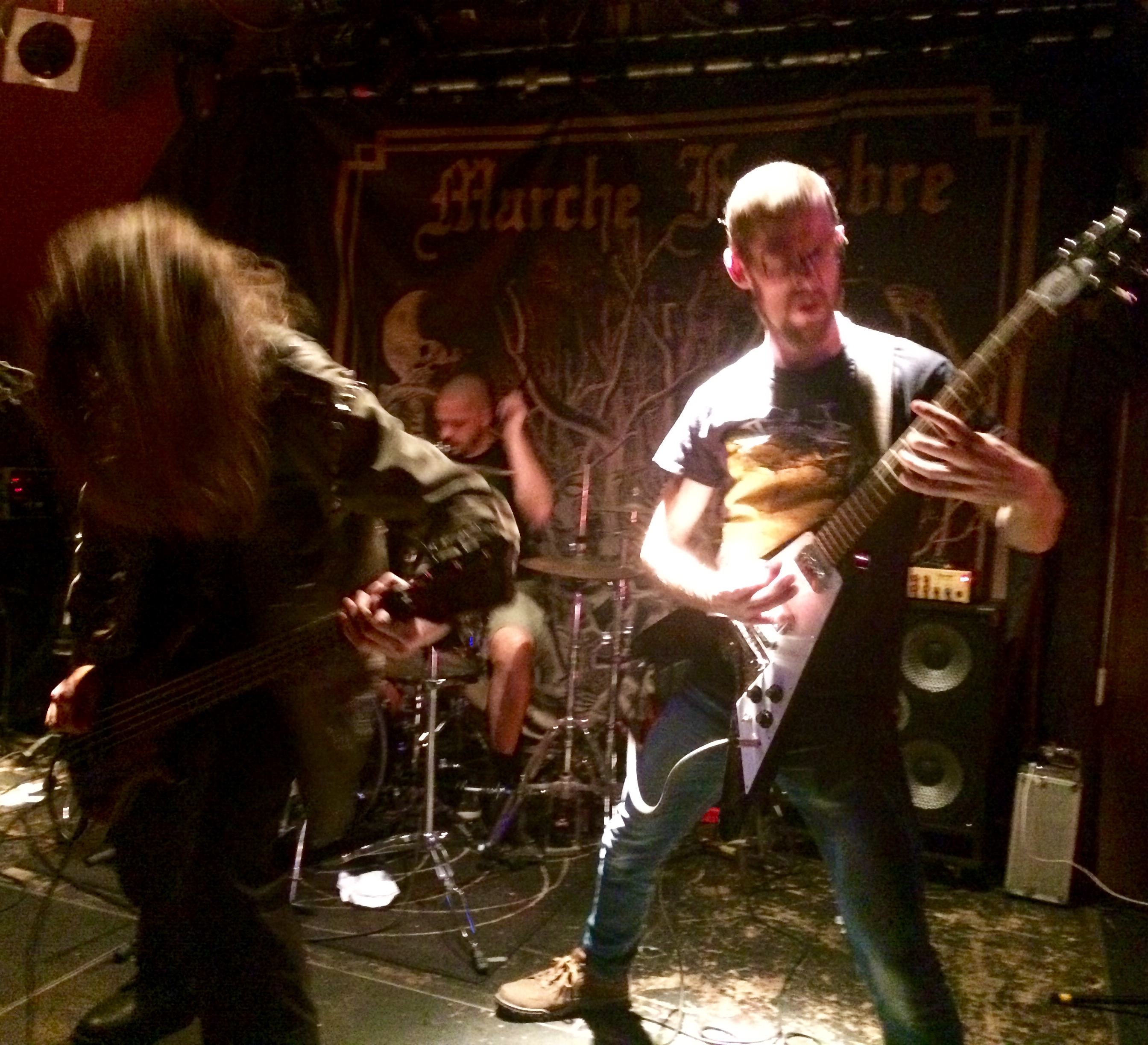 Ein paar Kategorien weiter oben doominieren MARCHE FUNÈBRE aus dem kleinen Belgien. Die OPHIS-Kumpels starten in Hamburg eine längere Europatour, haben auch schon öfter mit den Hamburgern gespielt und sind voller Liebe (unter anderem zu OPHIS-Sänger Phil, bei dem sich Kollege Arne Vandenhoeck sehr nett via Ansage für die Einladung bedankt). Und voller Qualität natürlich auch. Die Sympathen aus dem Land von Pommes und beleuchteten Autobahnen begeistern mit einem tighten Set, das mehr als einmal wohlige Erinnerungen an PRIMORDIAL weckt, aber letztlich genügend Eigenständigkeit beweist. Tolle Auftritt – mit einem einmaligen „The Dark Corner“ vom 2011-Scheibchen „To Drown“.