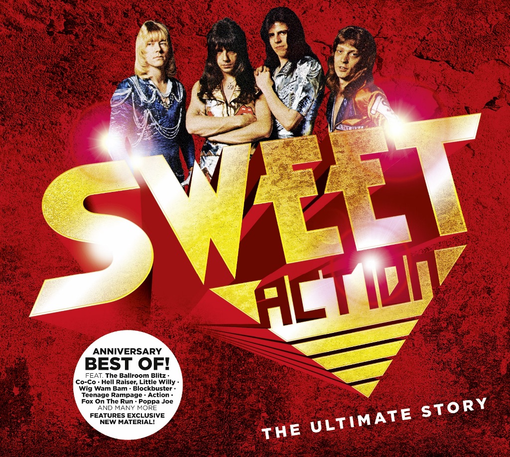 SWEET laufen heutzutage ja vor allem im „back to the seventies radio“ und sind tatsächlich immer noch auf Tour (est. 1968). Das die Jungs aus dem englischen Middlesex Anfang der 70er eine der führenden Glam-Rock-Bands des Universums waren und als Inspiration für Bands wie MÖTELY CRÜE, DEF LEPPARD & Co. benannt werden wissen eher nur Eingeweihte – aber nicht umsonst benennt selbst KISS-Vorturner Paul Stanley SWEET als eine der Bands die zum Werdegang der Hard Rock Institution beigetragen haben. Das Sweet dazu noch eine großem Anzahl von No. 1 - Hits im Petto hatten und damals in den einschlägigen Zeitschriften ständig präsent waren dürfte den Altvorderen noch geläufig sein. So wundert es sicher auch nicht, dass es über die Jahre hinweg unzählige Platten, Re-Releases und Best-of-SWEET Veröffentlichungen gab und hier noch kaum einer den Überblick hat. Mit „Action! The Ultimate Sweet Story“ steht uns also nun die neueste Compilation ins Haus. Mit 40 Songs als Doppel-CD oder wahlweise als 3er-DVD (7 Stunden Sweet, alle Videos, diverse TV-Auftritte in D und UK, mehrere Livemitschnitte, usw.) gibt es hier reichlich Stoff. Um sich hier schnell einen Überblick zu verschaffen gibt es unten mal die entsprechende Auflistung der enthaltenen Tracks, eröffnent mit dem Signatur-Rockknaller „Action“. Danach kommt vom typischen 60er/70er-Pop-Stil („Funny Funny“, „Co Co“, Little Willy“) bis zu Rock-Granaten („Wig Wam Bam“, „Hell Raiser“, Fox On The Run“, „The Ballroom Blitz“) und der Anfang-80er-Hymne „Love Is Like Oxygen“ ein toller Überblick über alle Schaffensperioden von SWEET. Des Weiteren noch zwei neue Songs - das eher mäßige „Still Got The Rock“ und die gelungene Ballade „Defender“ die voll in den Kontext paßt. Dazu gibt es noch auf der ersten CD als Hidden-Track sozusagen ein Disco-Dance-Mix von „Fox On The Run“ (den man aber nicht unbedingt braucht). Egal! Auf jeden Fall eine gelungene und auch von der Aufmachung und vom Sound her wertige Veröffentlichung.
