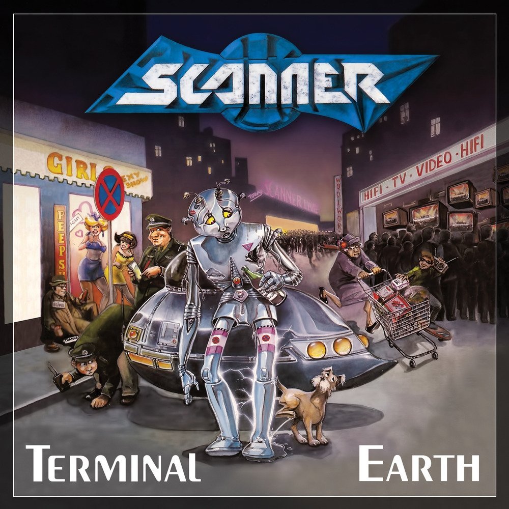 Ein Jahr nach dem sensationellen Debüt „Hypertrace“ legten SCANNER 1989 mit „Terminal Earth“ nach. Und auch wenn die Vorlage des Erstlingswerks nicht ganz erreicht wurde, hauen SCANNER auch mit ihrem zweiten Album einen amtlichen Kracher raus. Sänger Michael Knoblich war seinerzeit leider fahnenflüchtig geworden und von Ex-ANGEL DUST Sänger S.L. Coe ersetzt worden. Dass selbigem der Ruf vorauseilte nicht die einfachste Person zu sein, sollten auch SCANNER recht schnell merken und standen Anfang der 90er schnell wieder ohne Sänger da, während Coe zu REACTOR und seiner eigenen Formation C.O.E. weiter wanderte. Aber ob schwierig oder nicht: auf „Terminal Earth“ macht er einen super Job. Imitiert seinen Vorgänger nicht, sondern drückt den neuen Songs seinen unverkennbaren Stempel auf. Textlich entfernen sich SCANNER erstmals vom reinen Science-Fiction Konzept und prangern einerseits unsere Konsumgesellschaft („Buy Or Die“) und auch die damalige TV-Landschaft (wenn die gewusst hätten, wie es heute da aussieht) („Telemania“) an. Aber natürlich bleiben SCANNER ihrem Lieblingsthema treu und so gibt es mit „Terminal Earth“ oder auch „We’re Not Alone“ genug Sci-Fi Stoff.