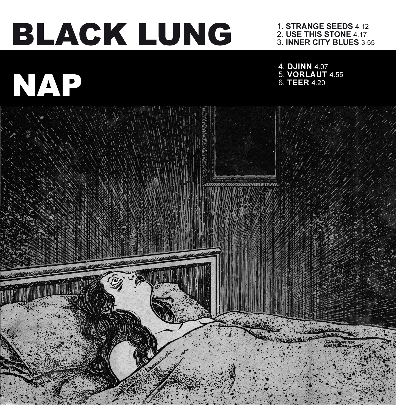 BLACK LUNG punkten hier wieder einmal mit ihrem düsteren Stoner-Doom-Sound mit Psychedelic- und Blues-Anleihen. Dabei sticht vor allem das Marvin Gaye-Cover „Inner City Blues“ heraus, das zwar ähnlich groovend wie das Original, gleichzeitig aber schwer rockend daherkommt, und für das offensichtlich sogar ein Gast-Rapper ins Studio eingeladen wurde. Über letzteres kann man sicher unterschiedlicher Meinung sein, insgesamt ist das aber sehr gelungen! Bei NAP hingegen ist im Vergleich zu ihrem gerade erst Anfang des Jahres erschienenen Debüt eine echte Entwicklung spürbar. Die drei Stücke sind zwar wie gewohnt durchaus komplex aufgebaut und klingen immer auch etwas verspielt, sind dabei aber weniger ausufernd, kompakter und ein ganzes Stück heavier. Auch spielt der Gesang eine etwas größere Rolle als bislang und wird öfter in den Vordergrund gerückt. Man kann daher gespannt sein, in welche Richtung sich diese Band zukünftig bewegen wird.